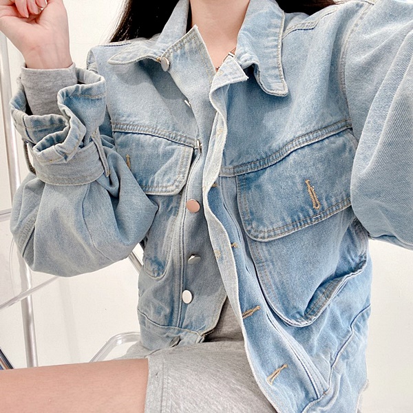 宽松灯笼袖oto纽扣短款牛仔夹克2色