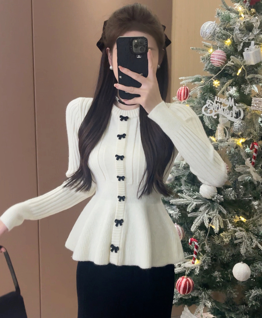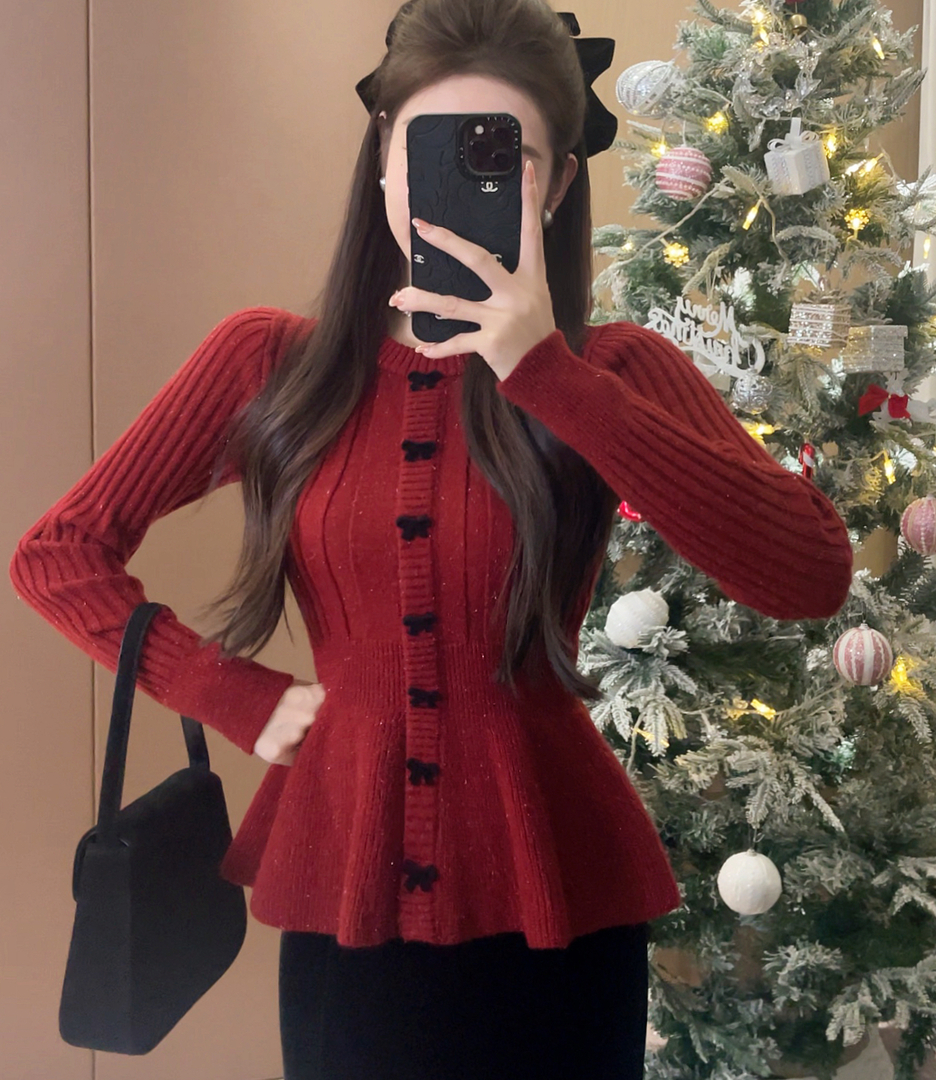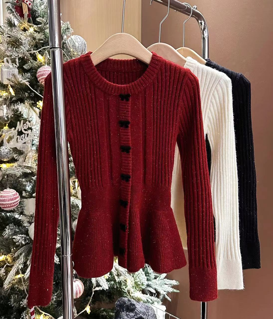 2024纯色毛针织衫荷叶摆针织秋冬长袖针织显瘦气质亮闪修身针织衫