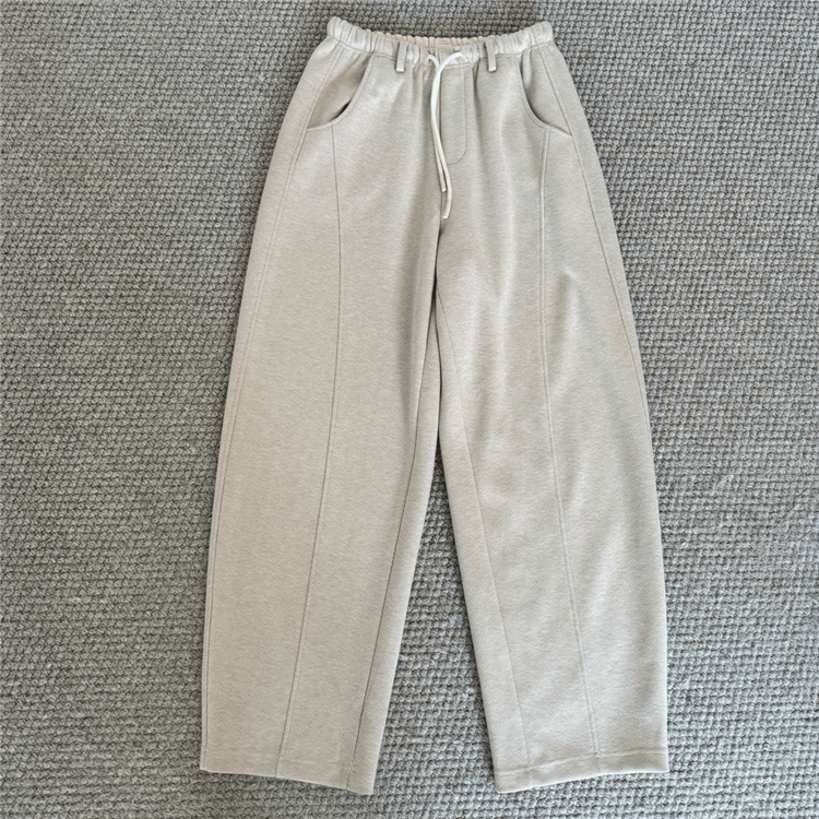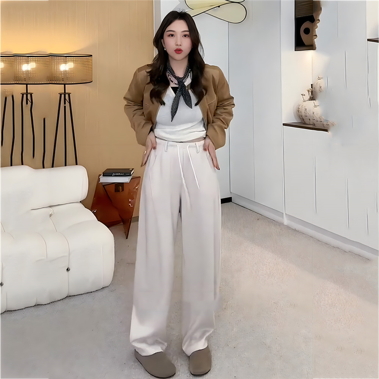 플러스 사이즈 여성용, 유려한 곡선 라인의 루즈핏 낫 모양 팬츠로 가을에 제격입니다. 하이웨이스트 디자인에 슬림핏을 연출하는 와이드 레그 캐주얼 롱 팬츠입니다.