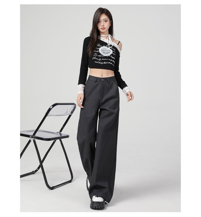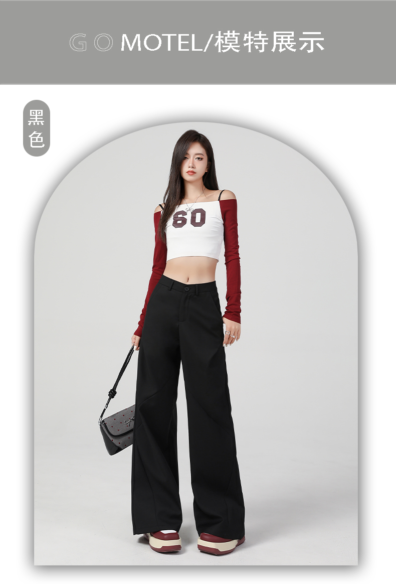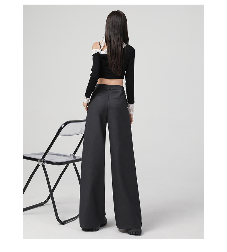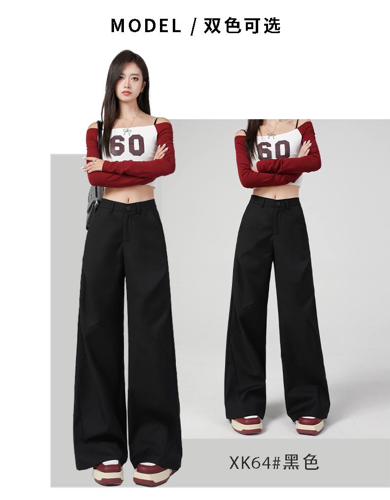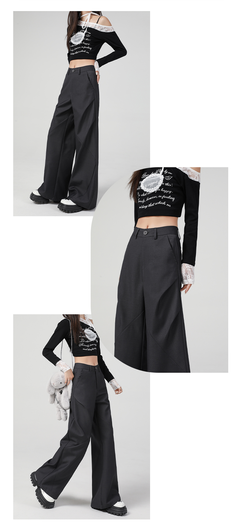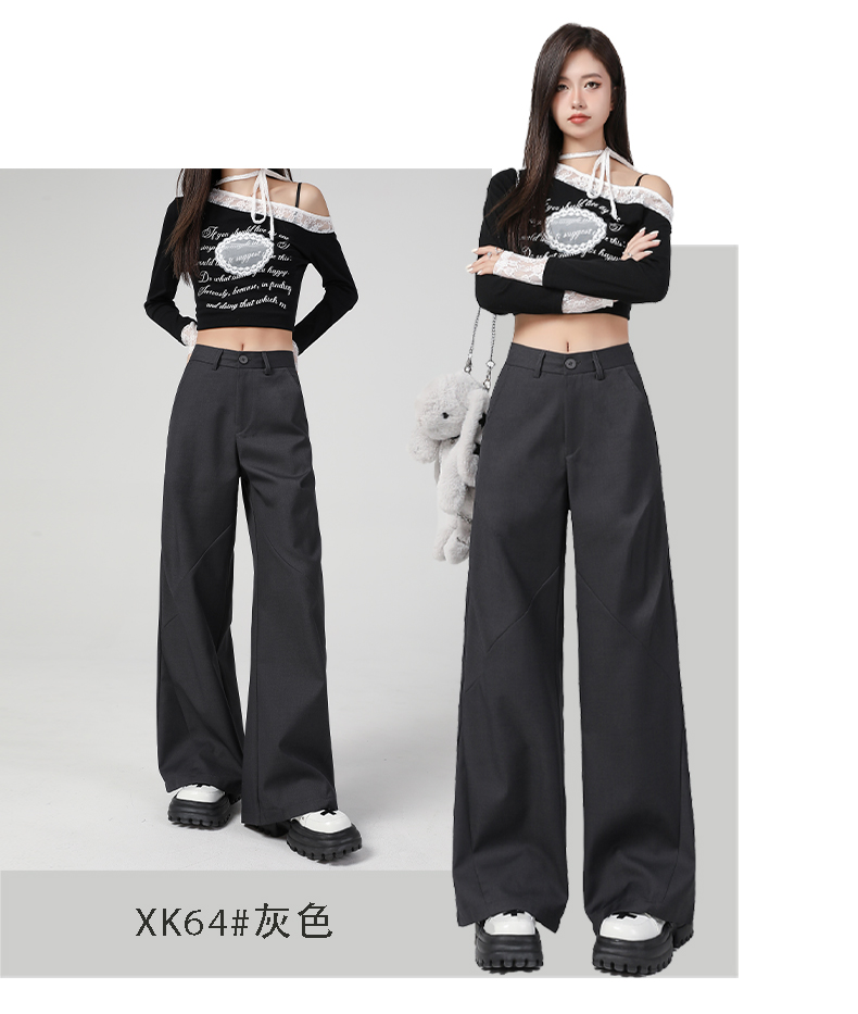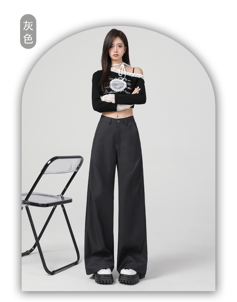 实拍灰色褶皱设计西装裤男女同款小众高街阔腿休闲裤潮
