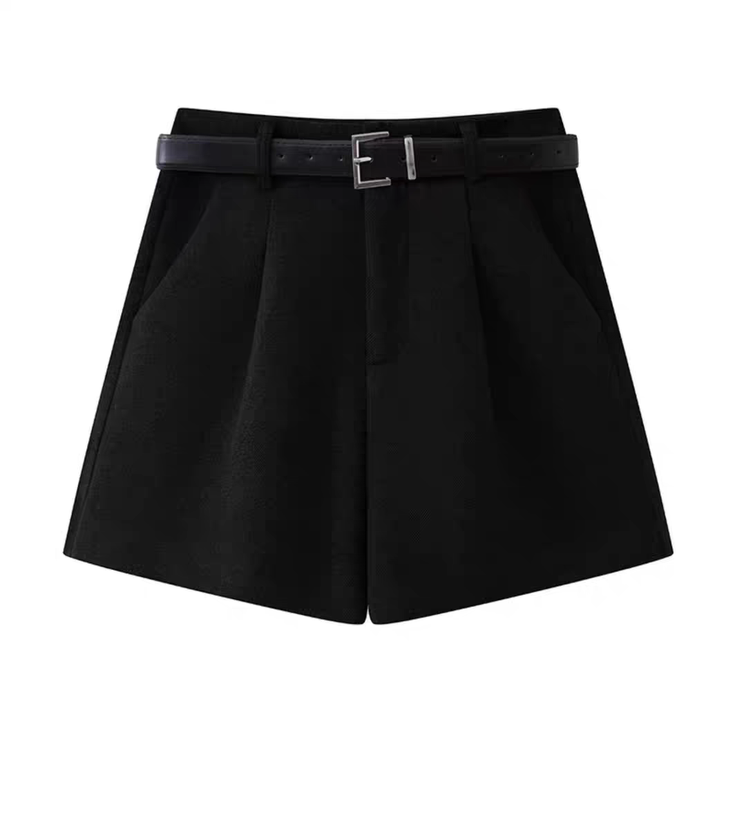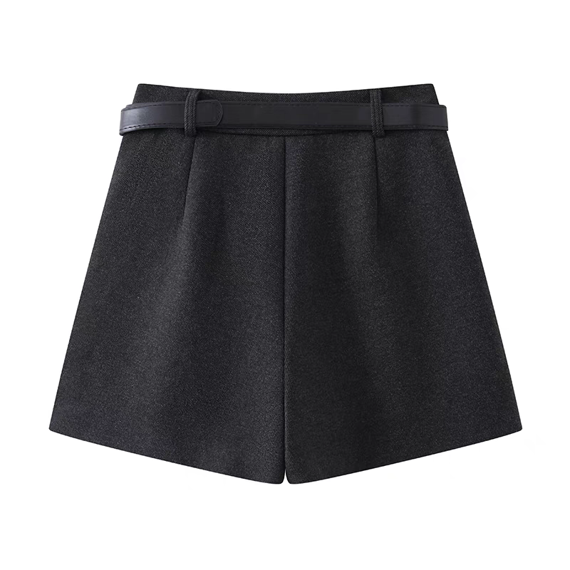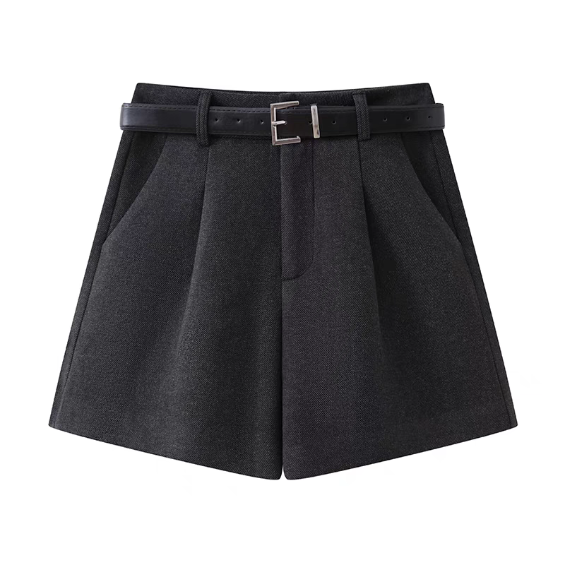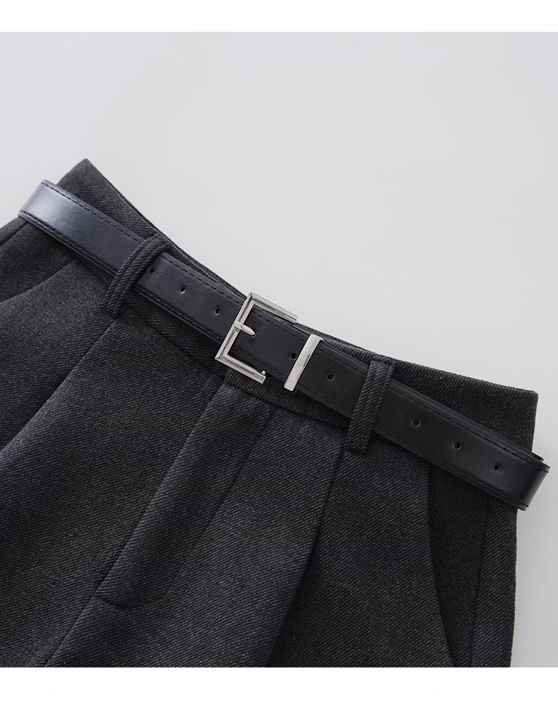 灰色毛呢西装短裤女秋冬2024新款显瘦宽松高腰a字阔腿裤外穿靴裤