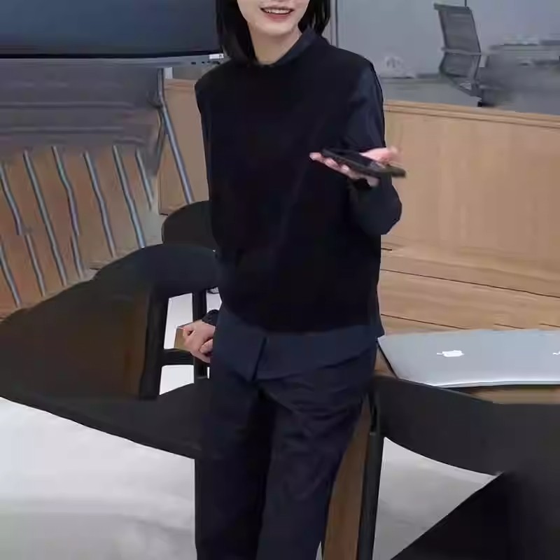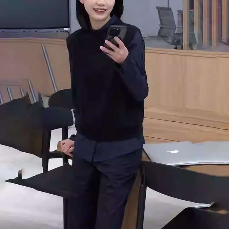 초가을 코디 여성 한국 스타일 시크 고급 민소매 조끼 심플 스타일 긴팔 셔츠 투피스 세트