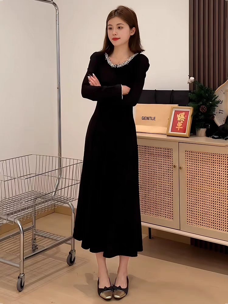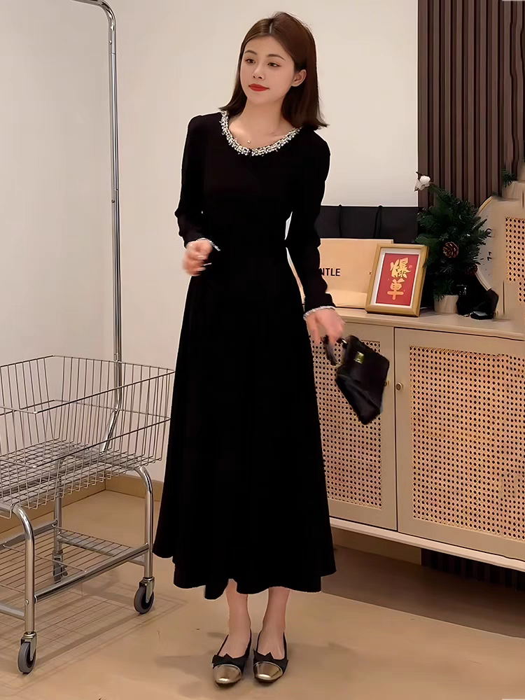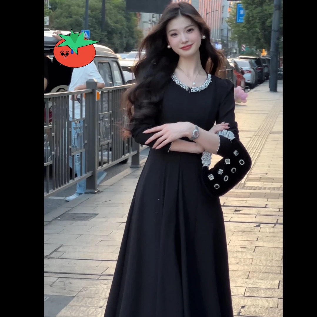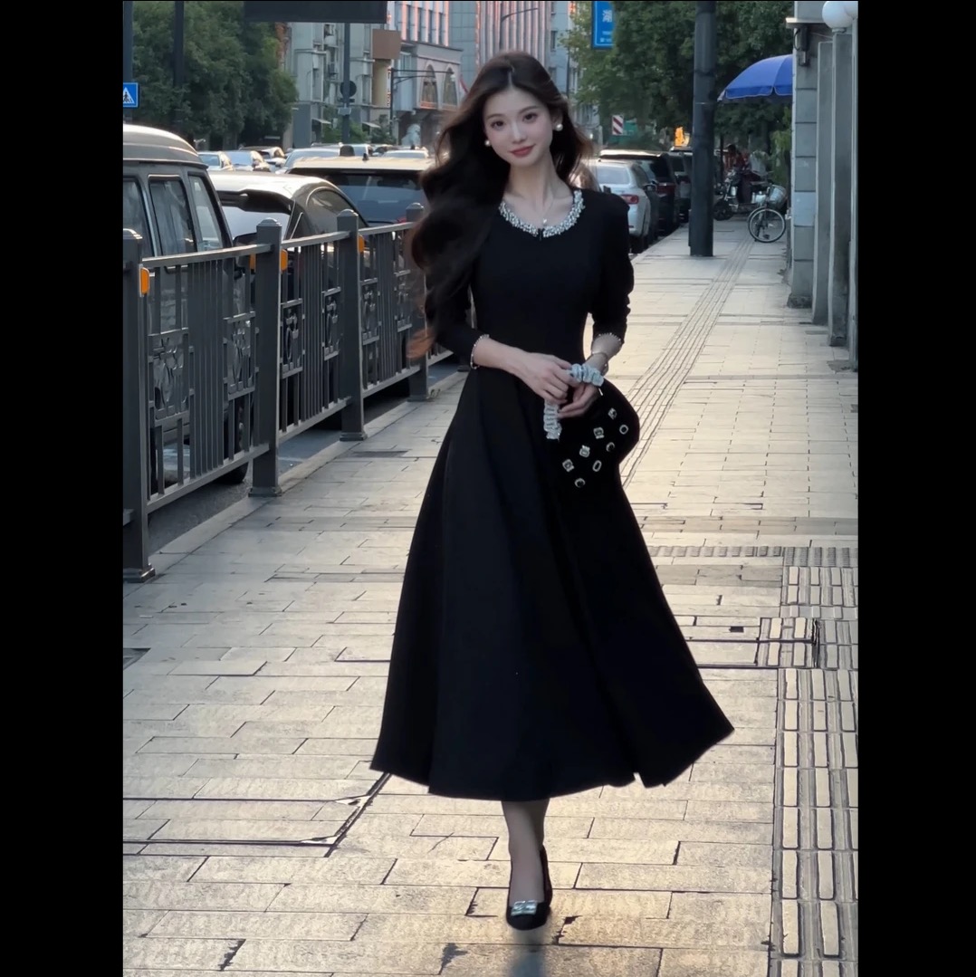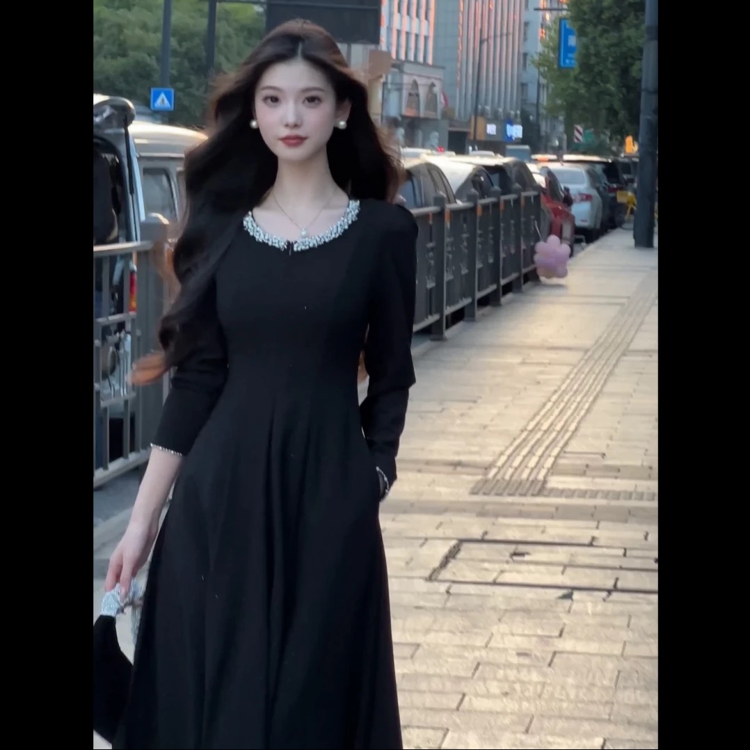 法式赫本风黑色连衣裙女2024新款秋冬高级感气质收腰显瘦小黑裙子