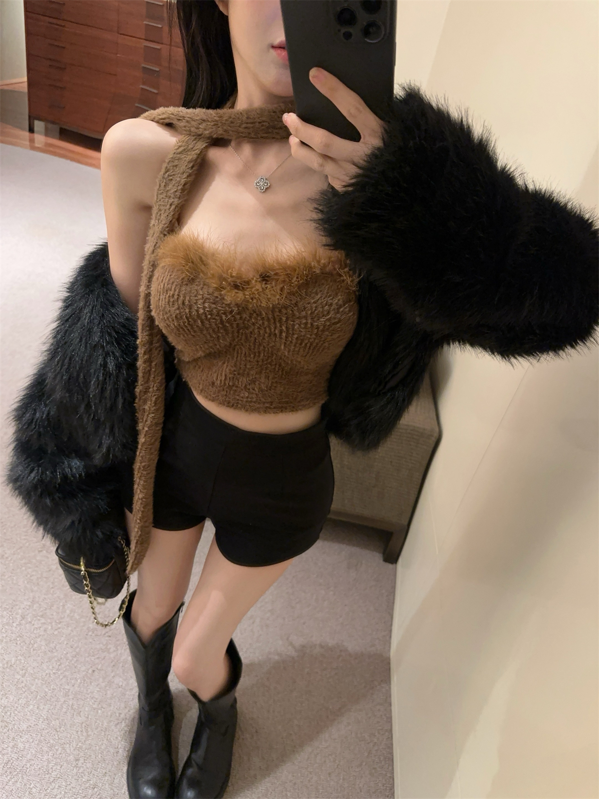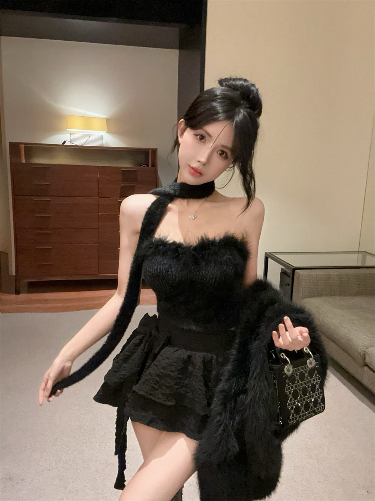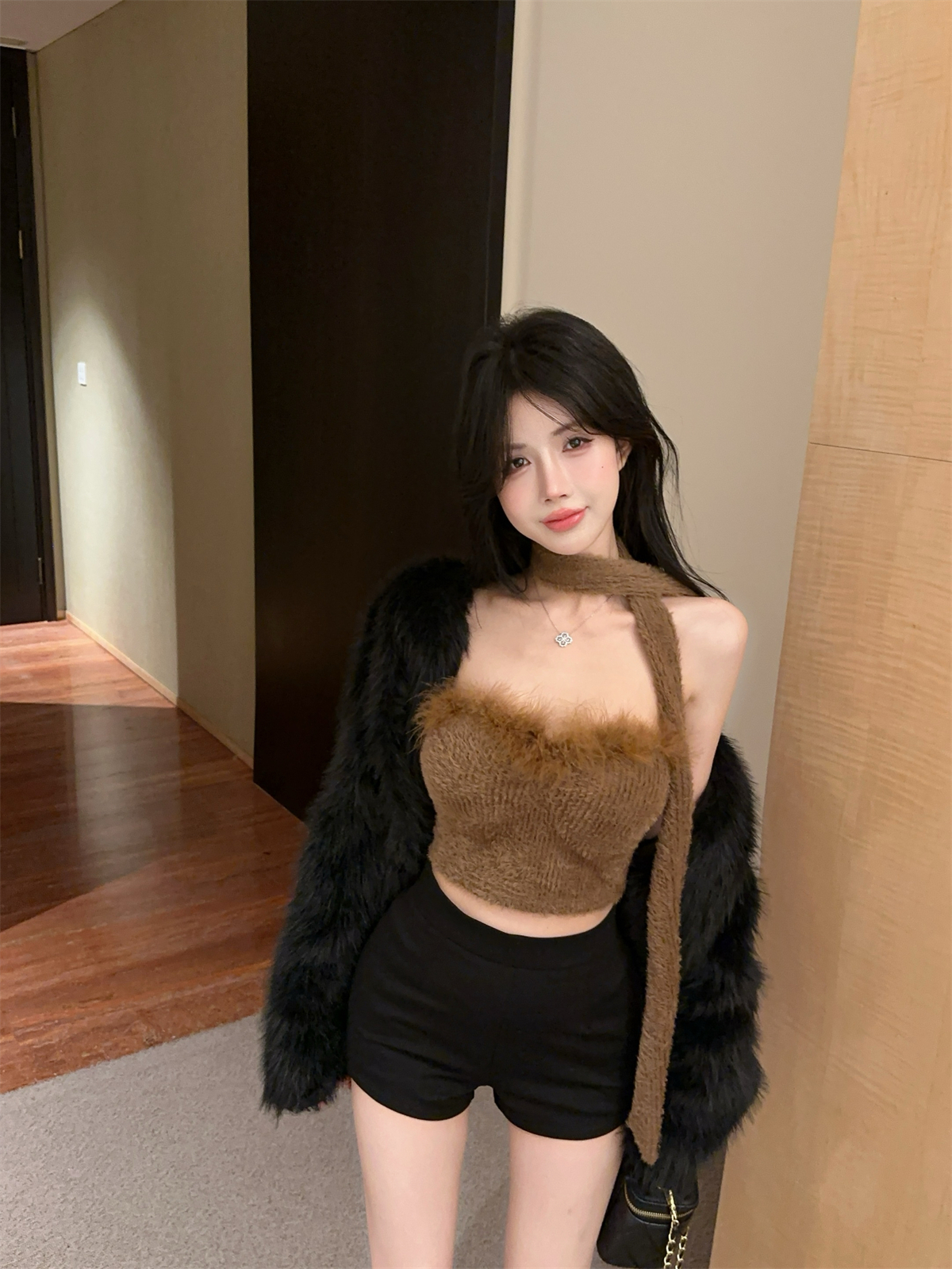 실제 촬영 및 실제 가격 달콤하고 매운 스타일 스카프 디자인 모피 튜브 탑 짧은 스타일 여성 겨울 두꺼운 가슴 랩