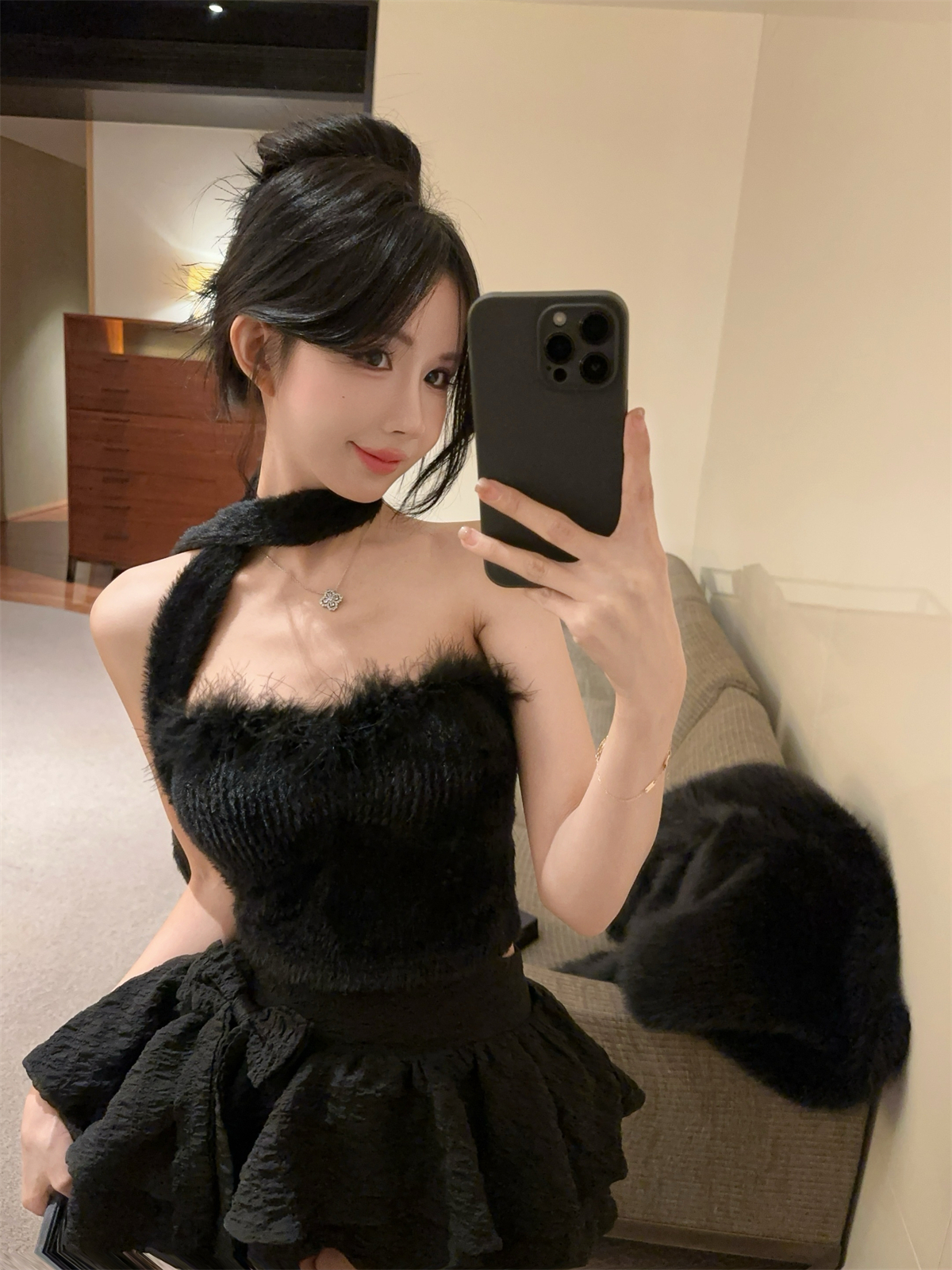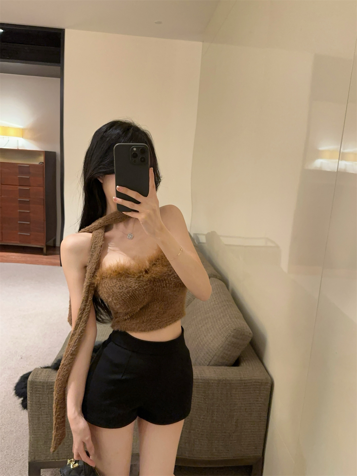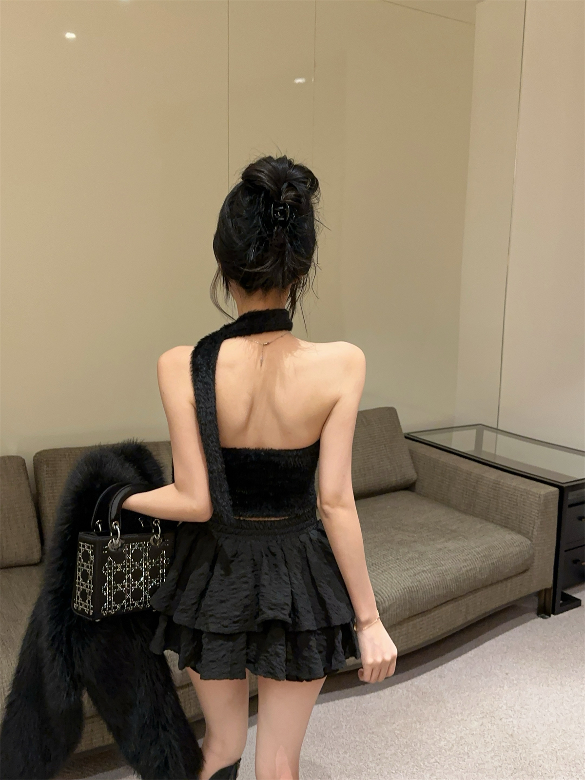 실제 촬영 및 실제 가격 달콤하고 매운 스타일 스카프 디자인 모피 튜브 탑 짧은 스타일 여성 겨울 두꺼운 가슴 랩