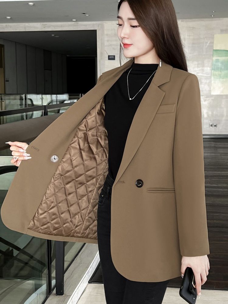 西服上衣2025春装韩版高级炸街休闲职业流行百搭咖色西装外套女潮