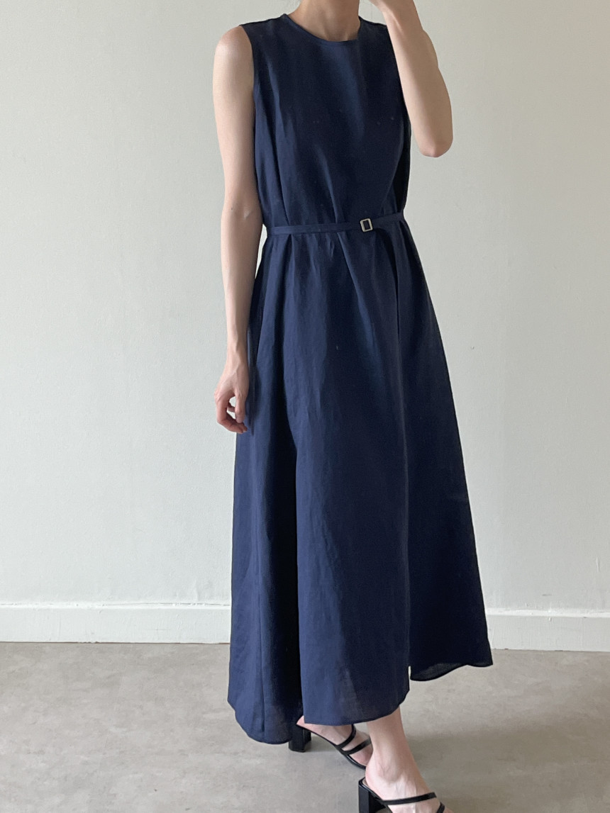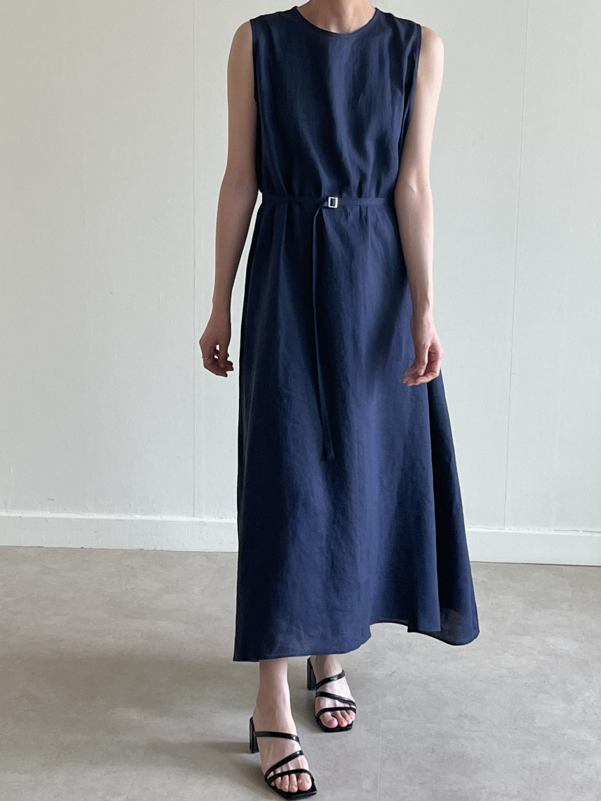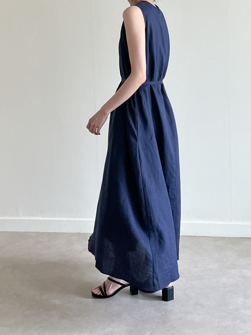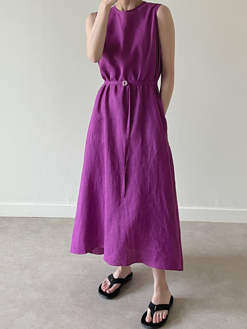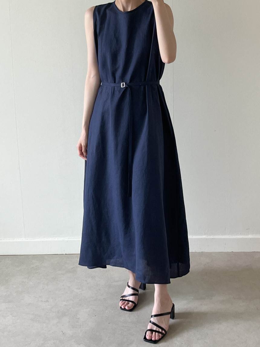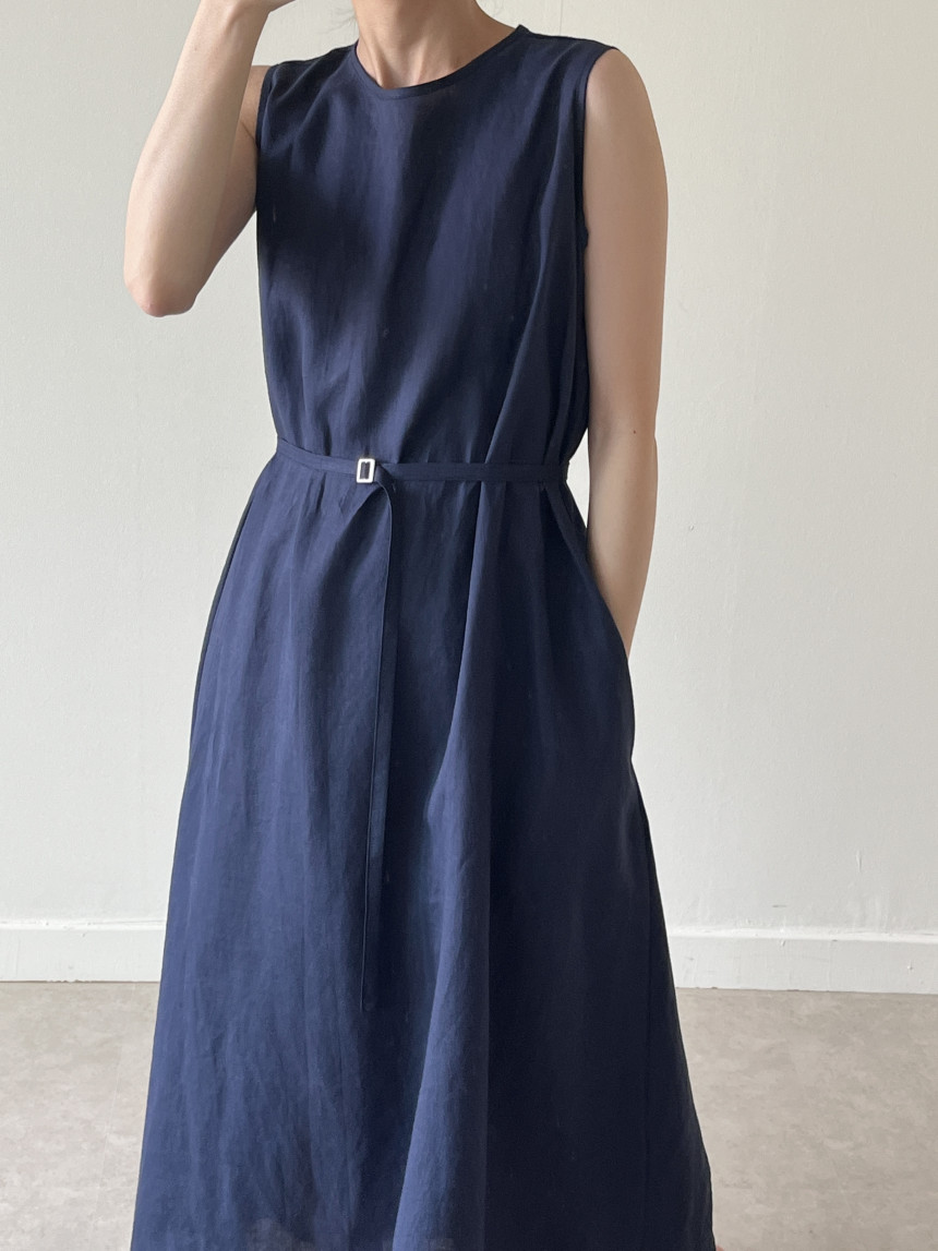 韩国chic夏季新款设计感小众薄款无袖长款系带棉麻连衣裙