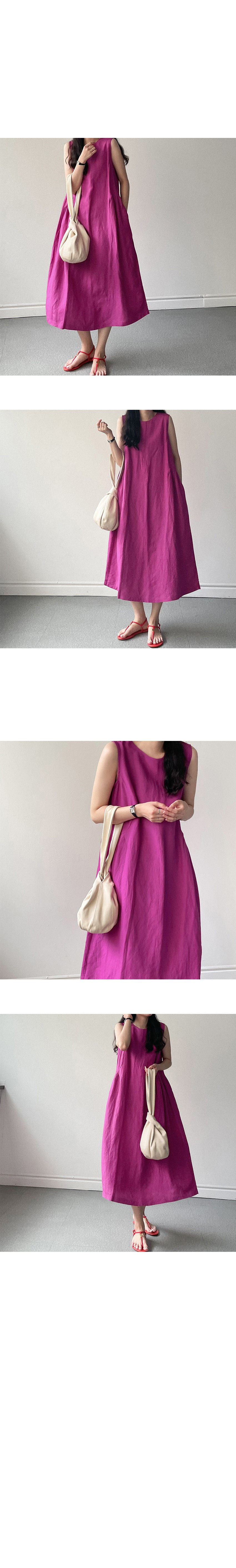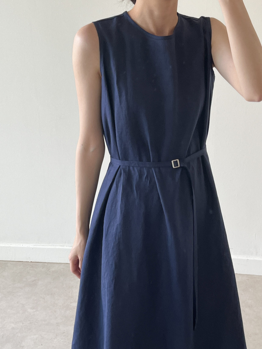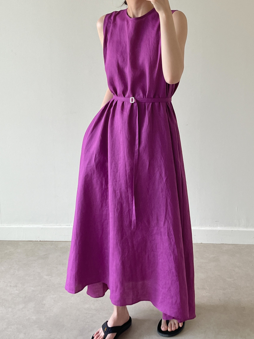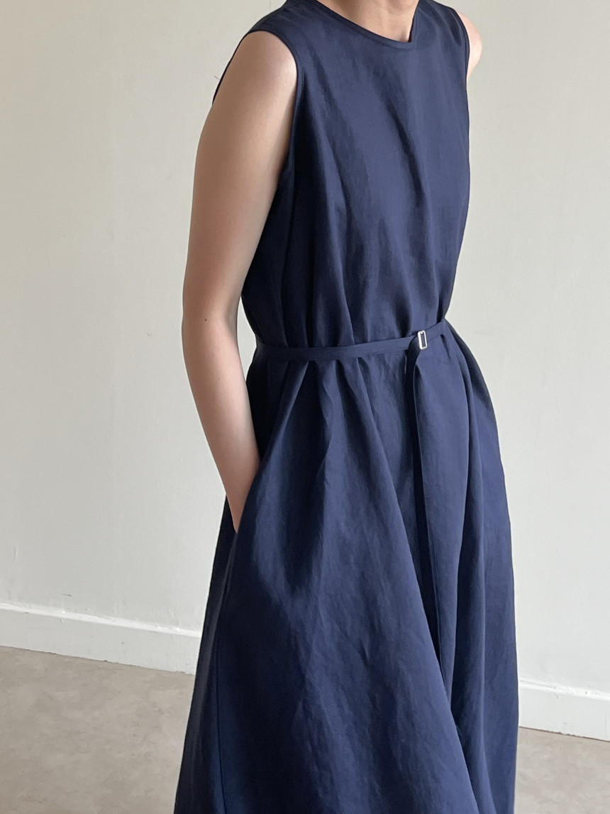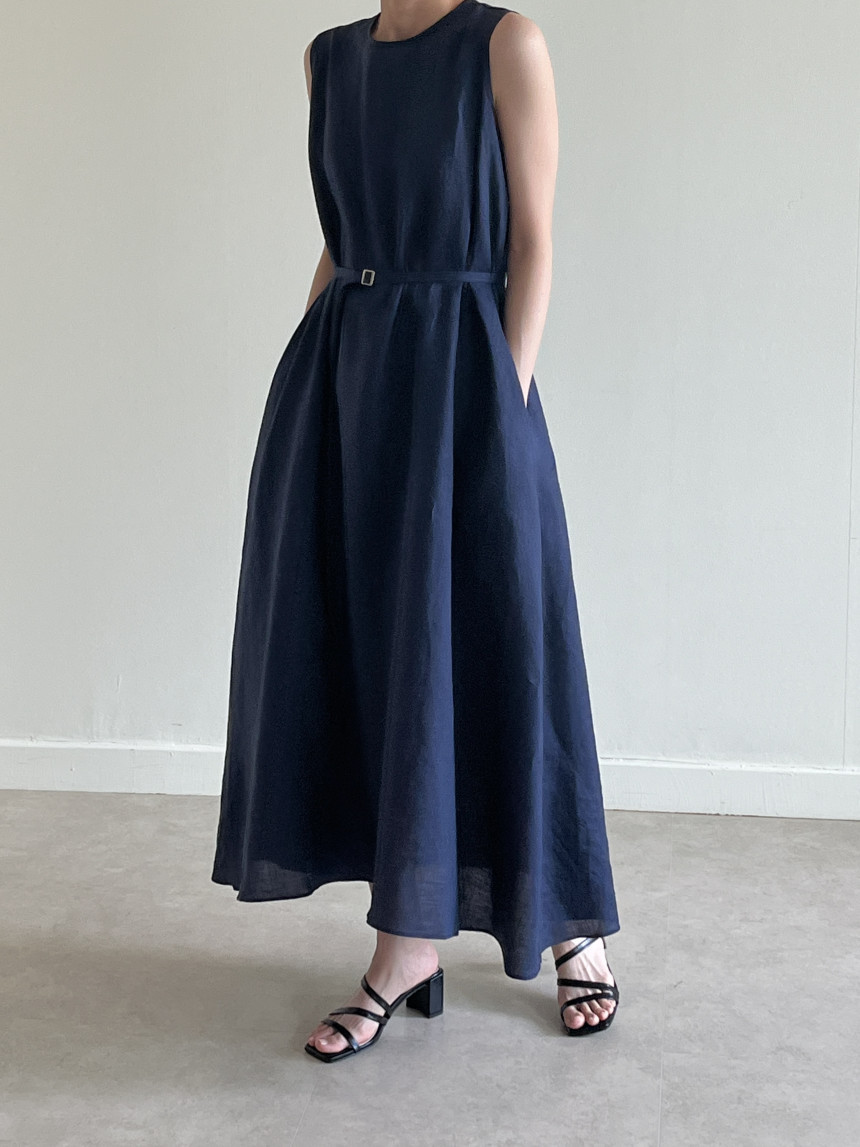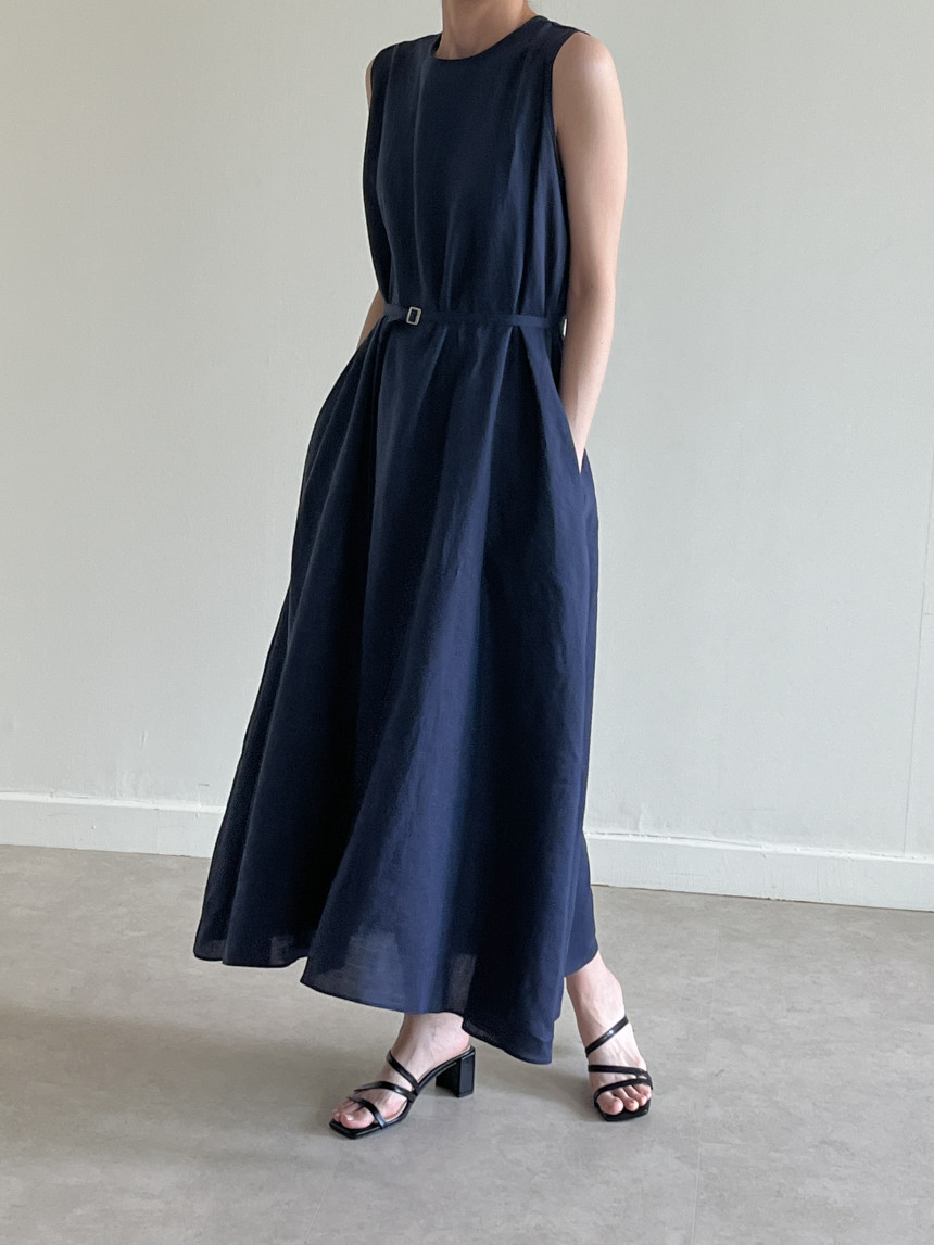 韩国chic夏季新款设计感小众薄款无袖长款系带棉麻连衣裙