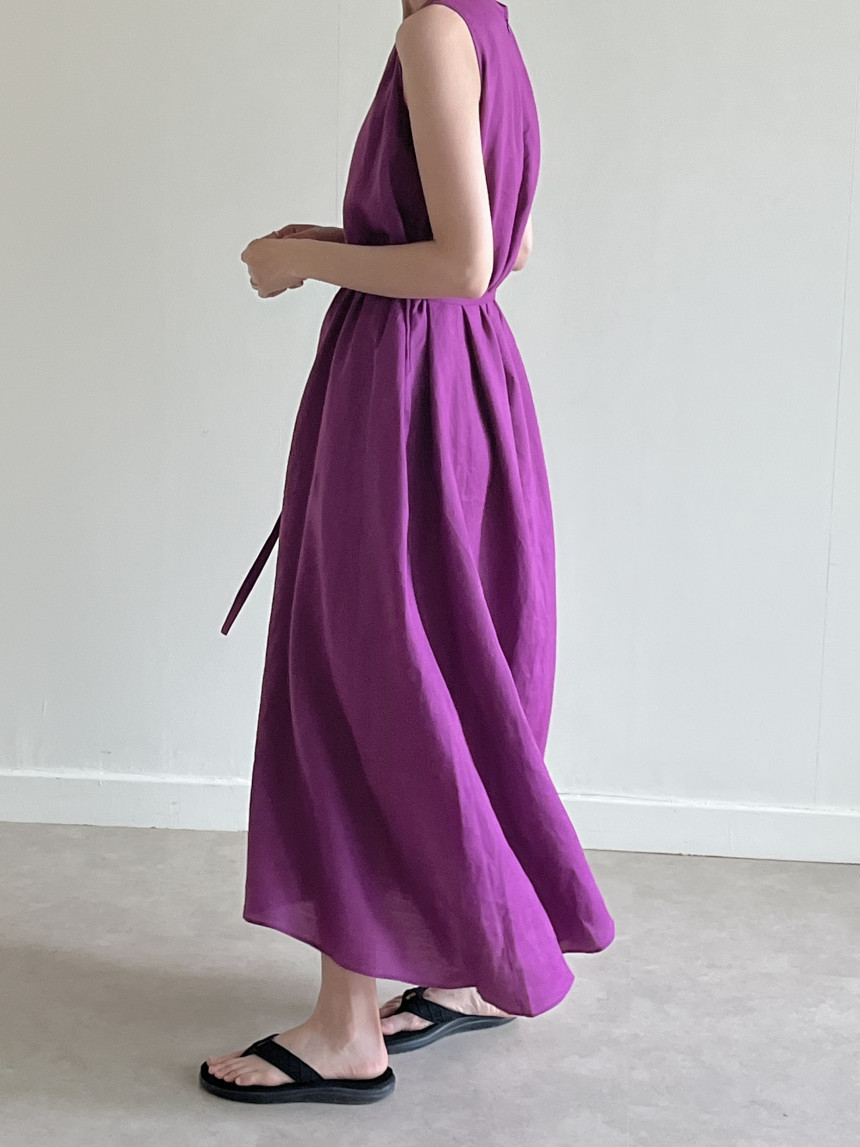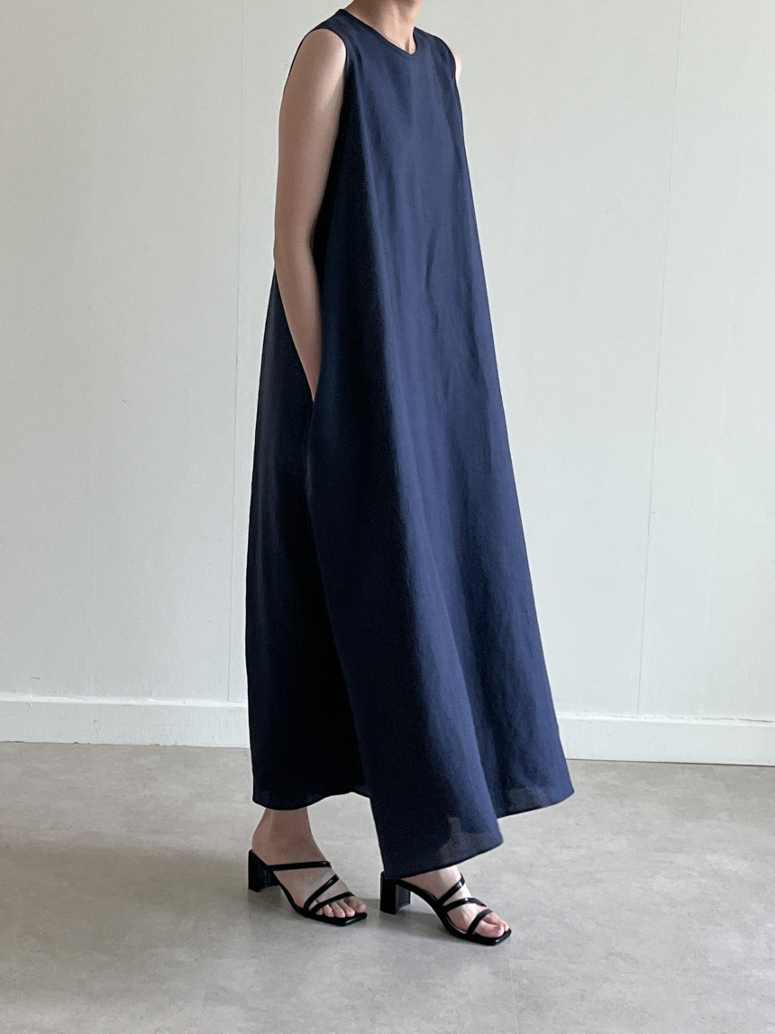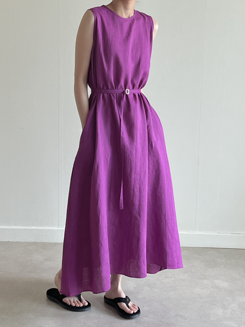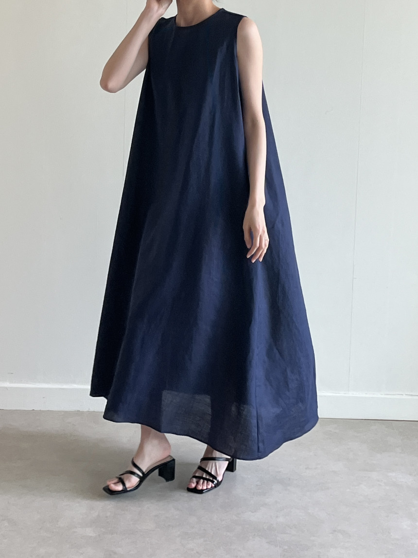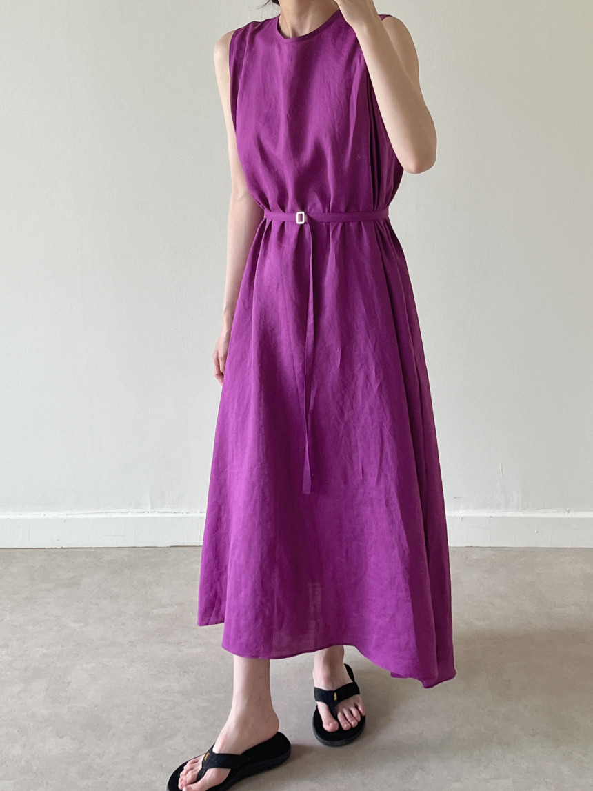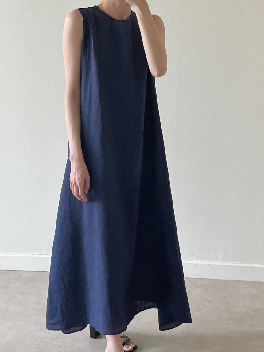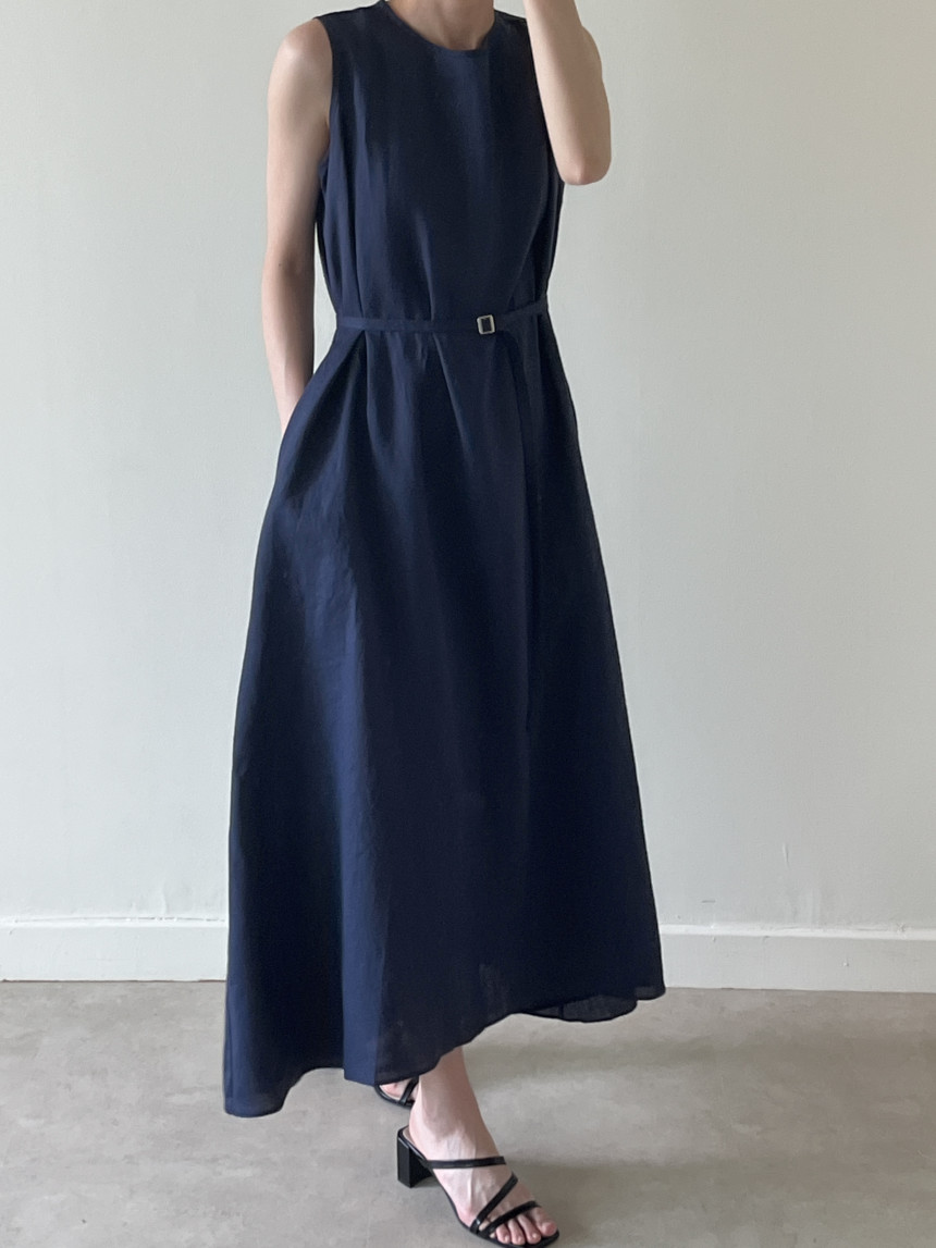 韩国chic夏季新款设计感小众薄款无袖长款系带棉麻连衣裙