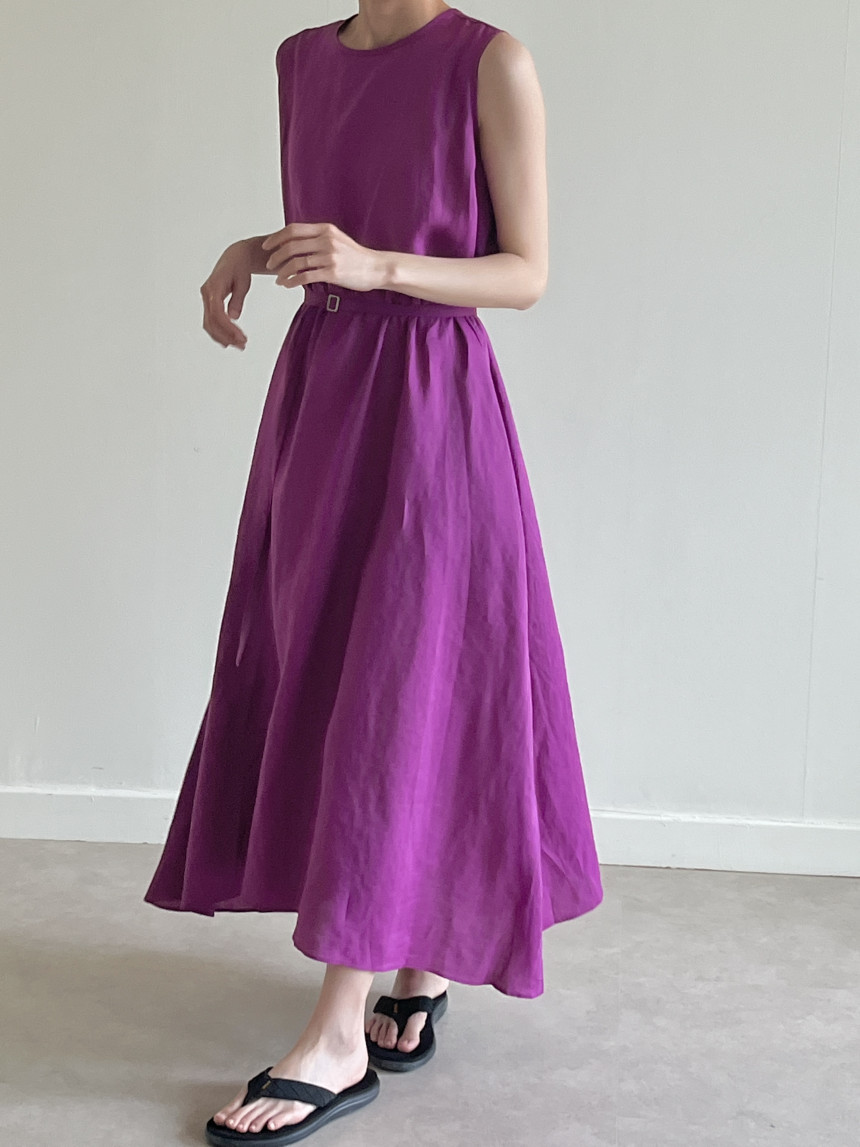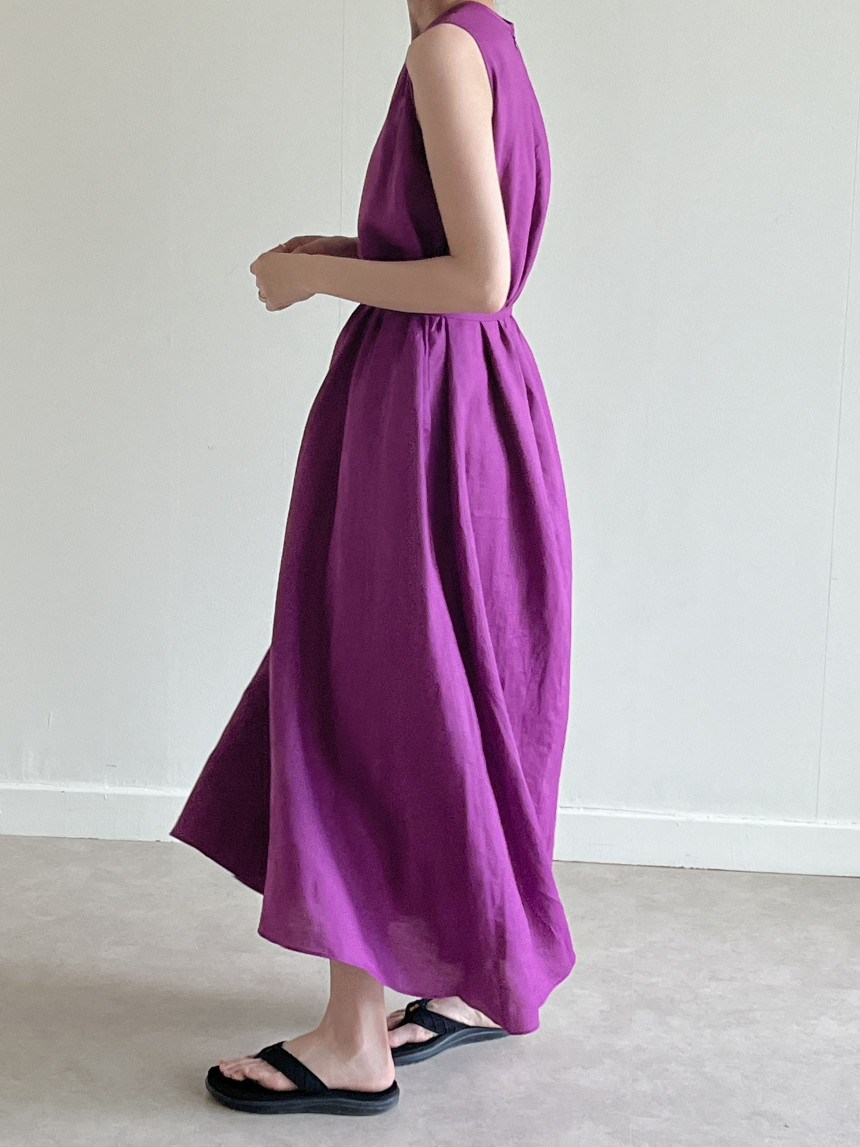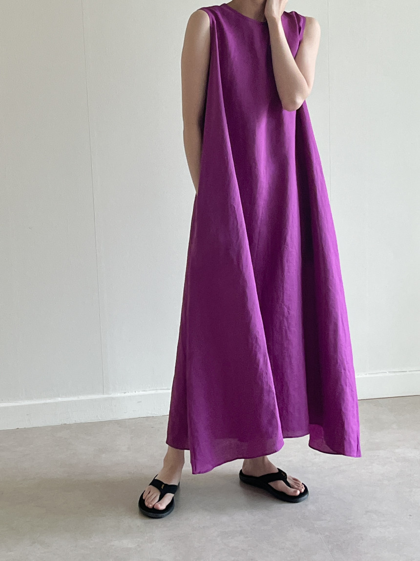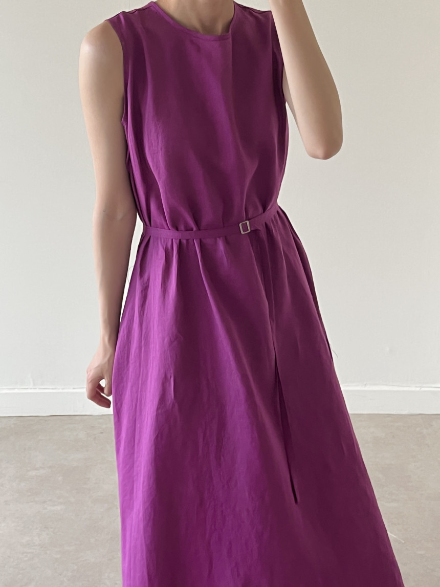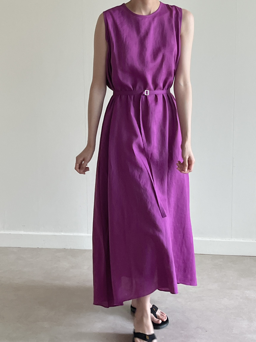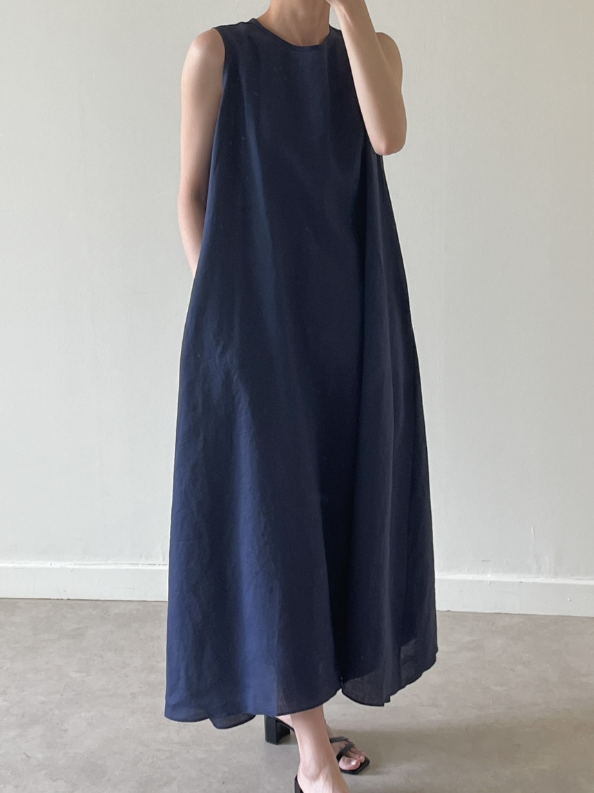 韩国chic夏季新款设计感小众薄款无袖长款系带棉麻连衣裙