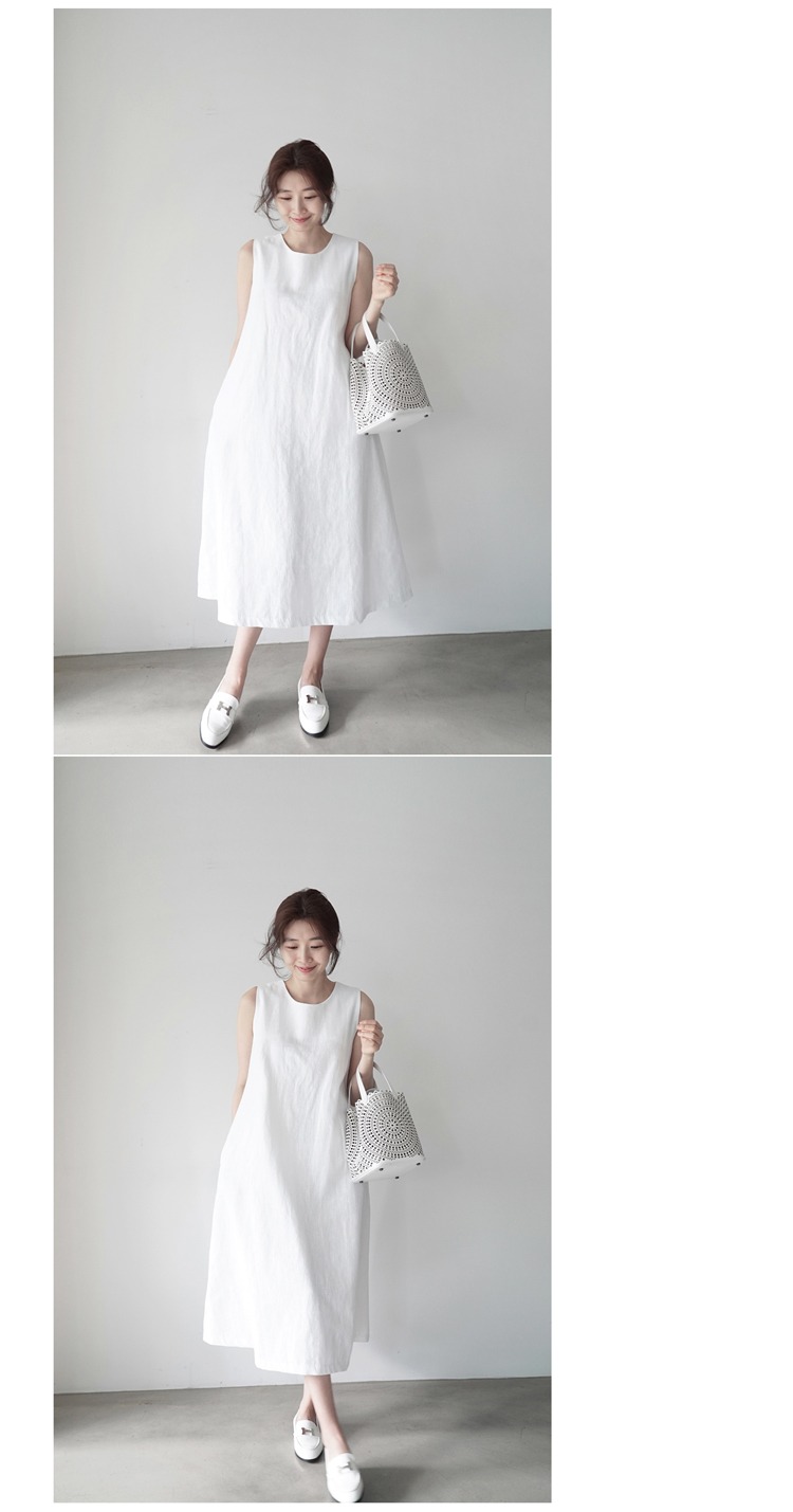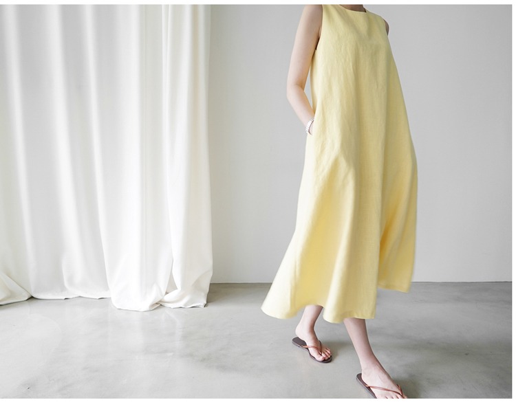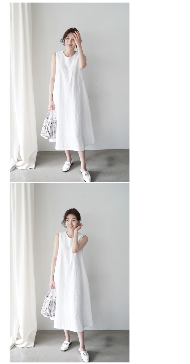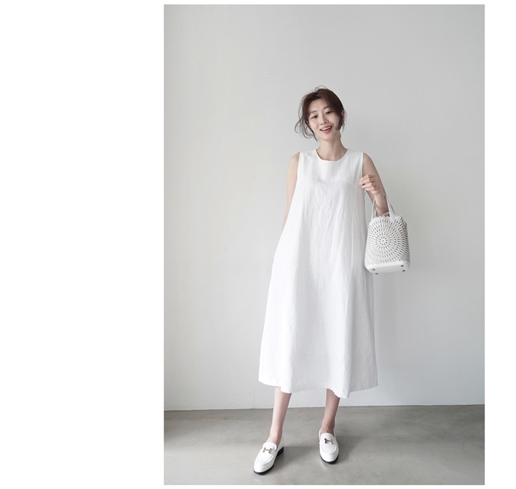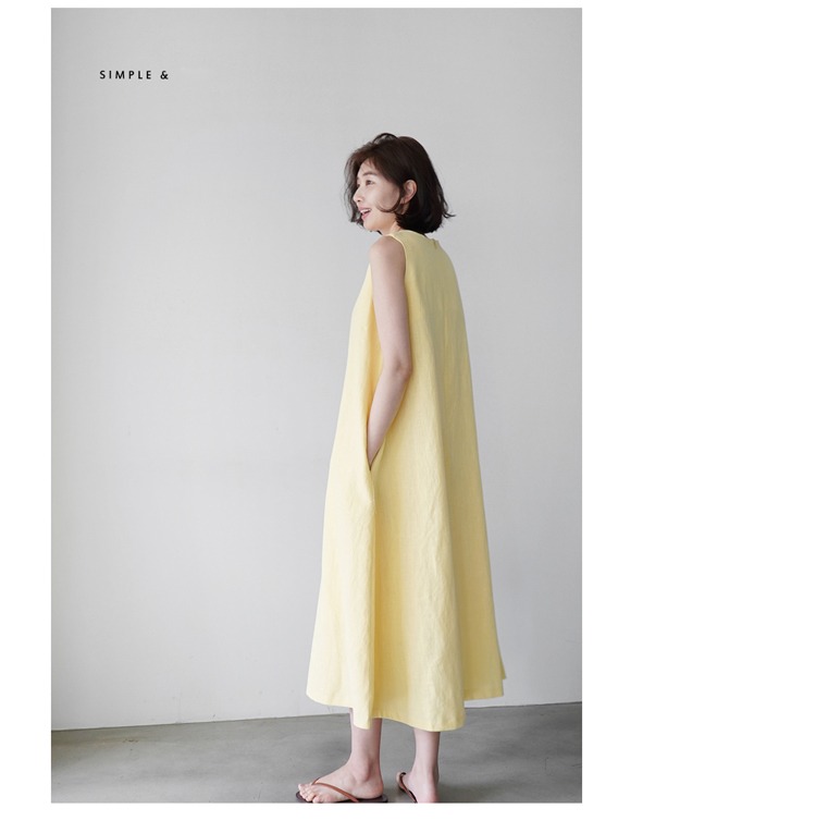 韩版棉麻无袖背心宽松显瘦亚麻文艺过膝连衣裙女