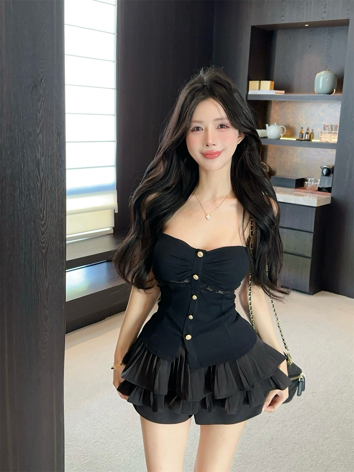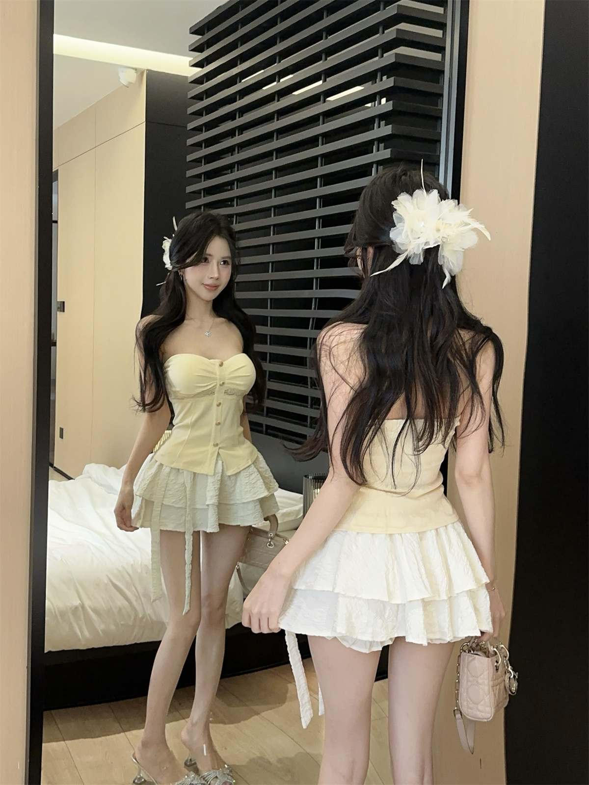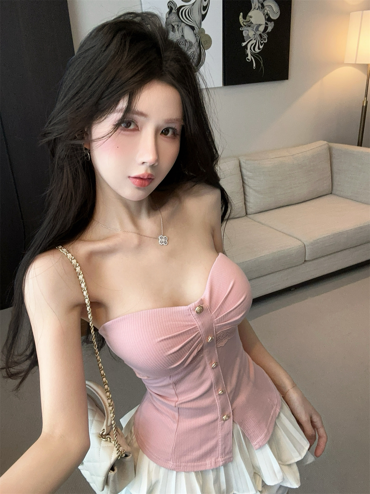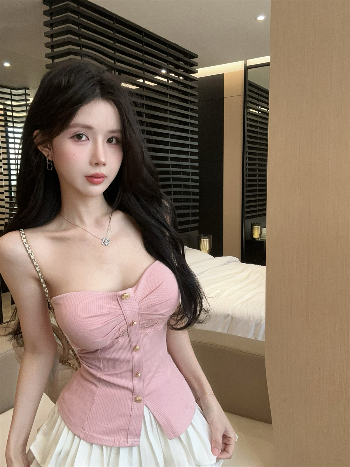 실제 촬영 및 실제 가격 레이스 스플라이싱 퓨어 디자이어 튜브 탑 슬릿 탑 랩 체스트 조끼 여성 봄과 여름