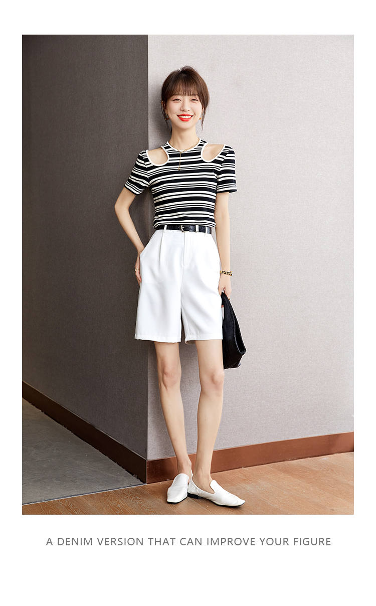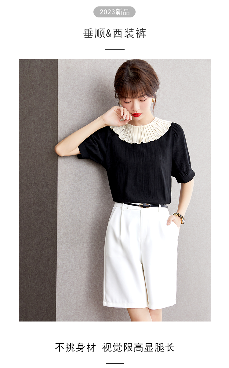 实拍◆◆白色五分西装短裤女夏薄款高腰显瘦直筒阔腿中裤子