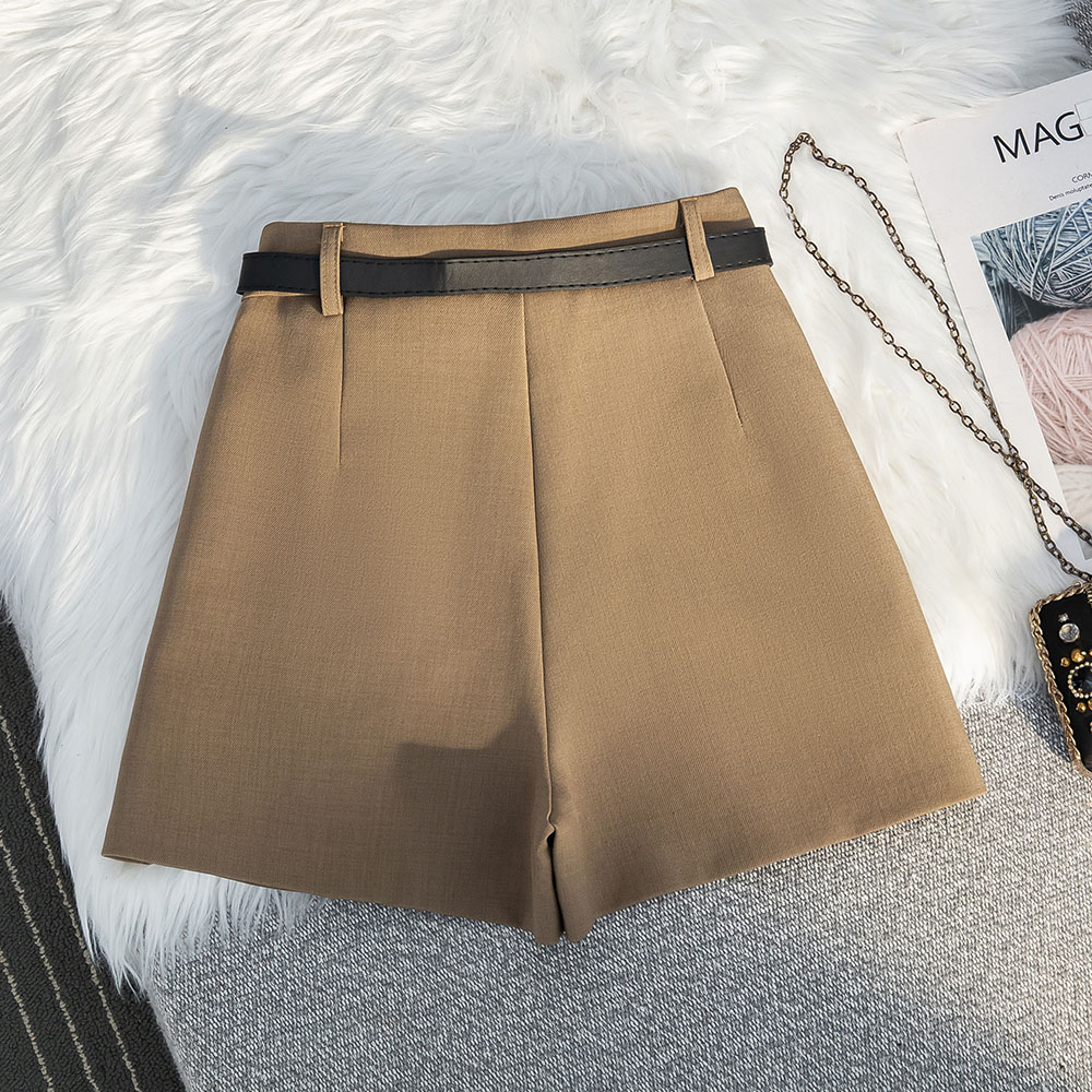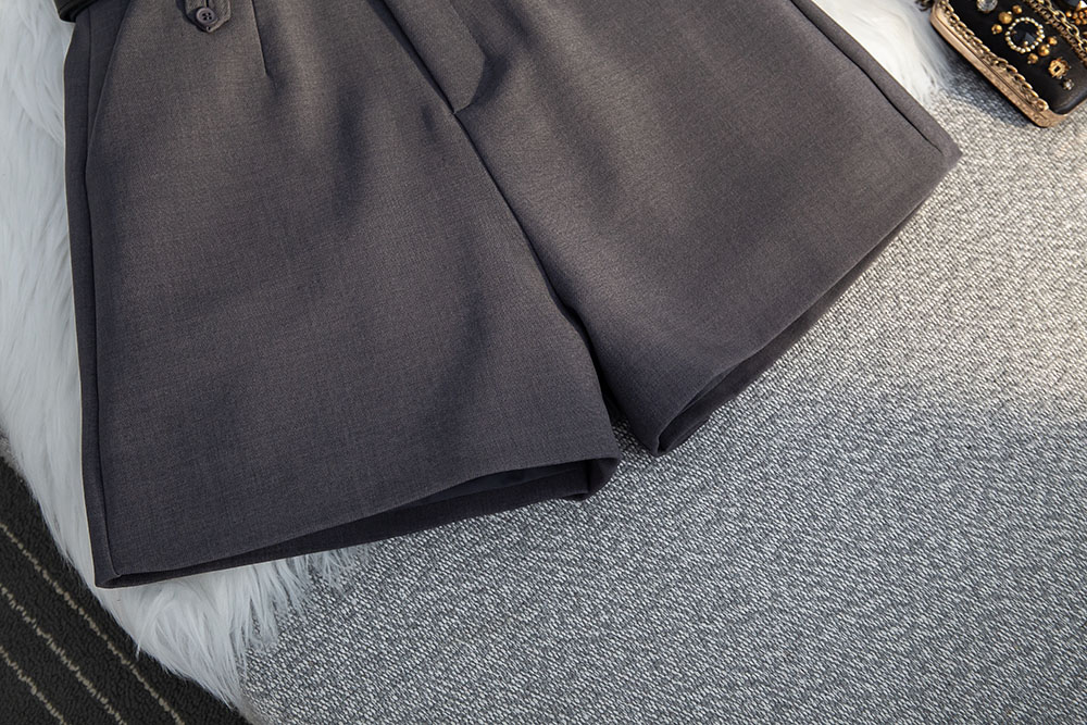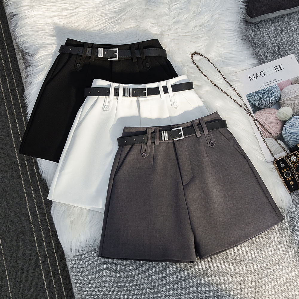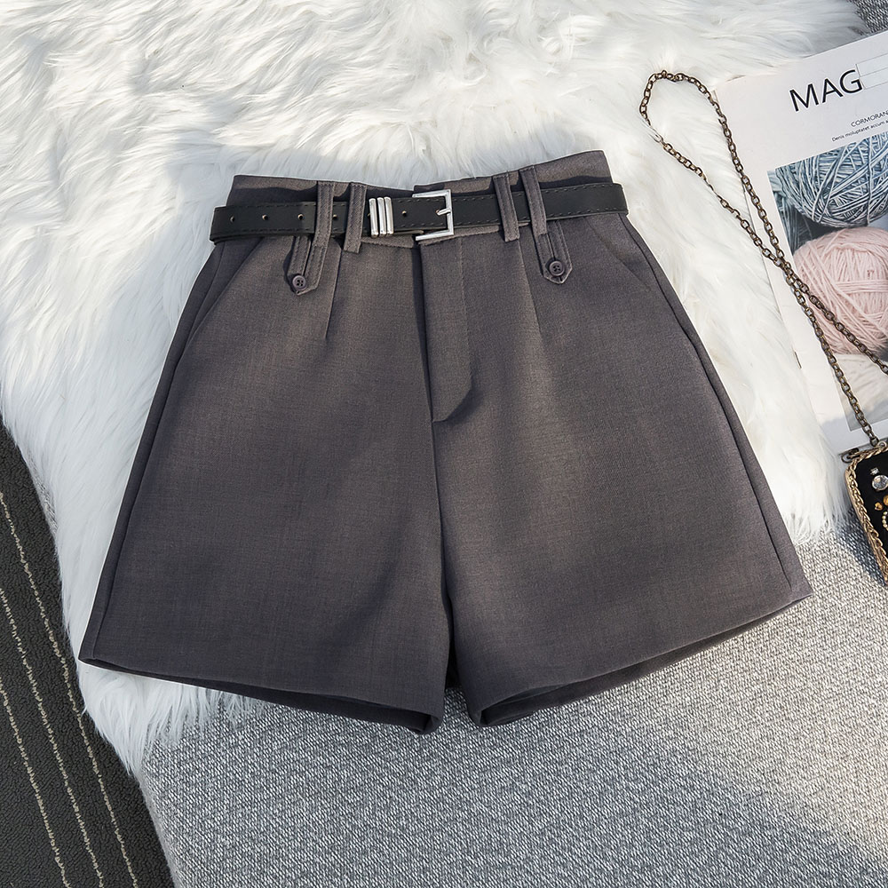 实拍高级感灰色西装短裤春夏新款高腰显瘦宽松A字阔腿休闲短裤女
