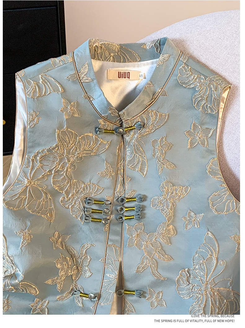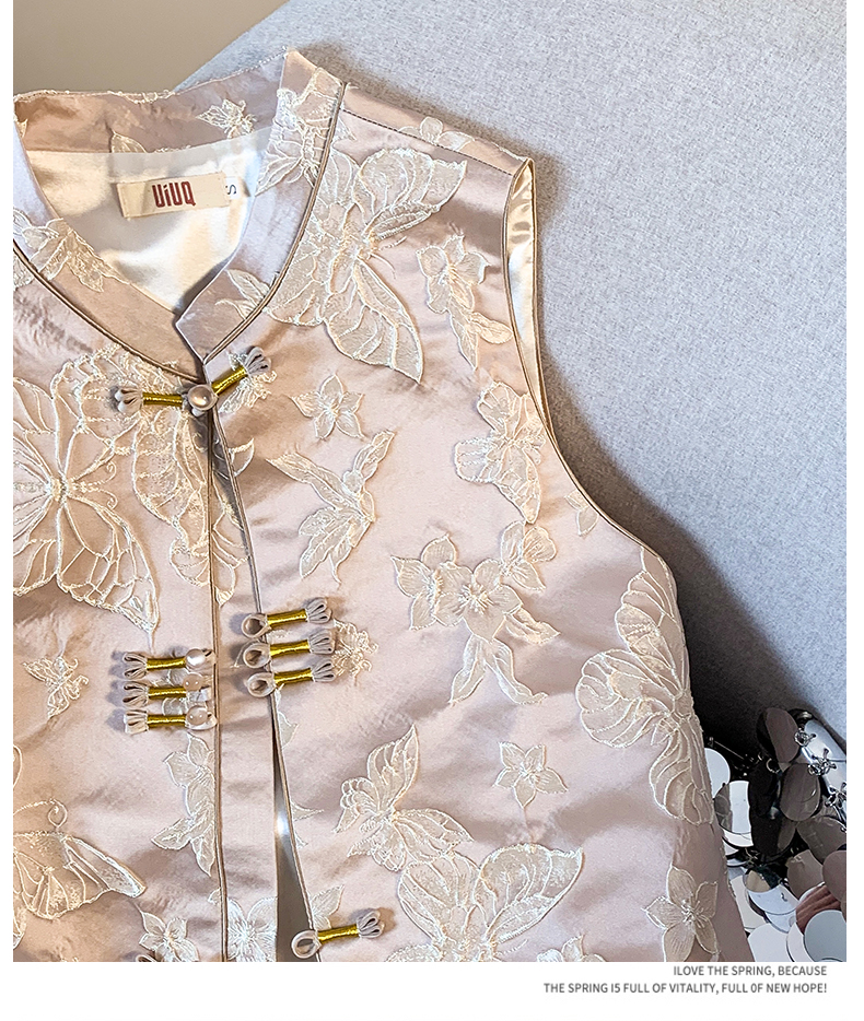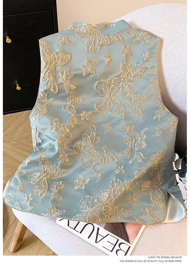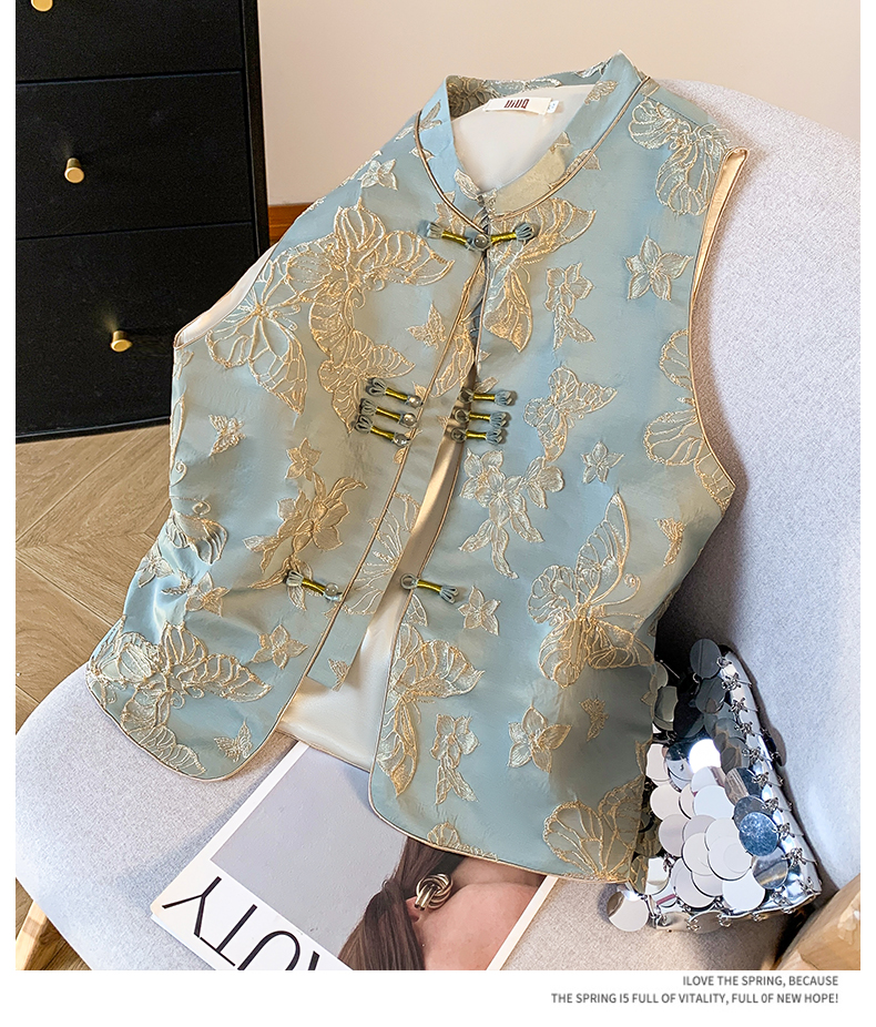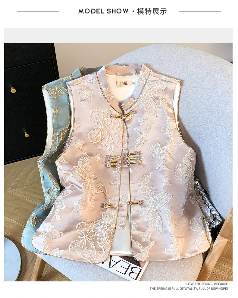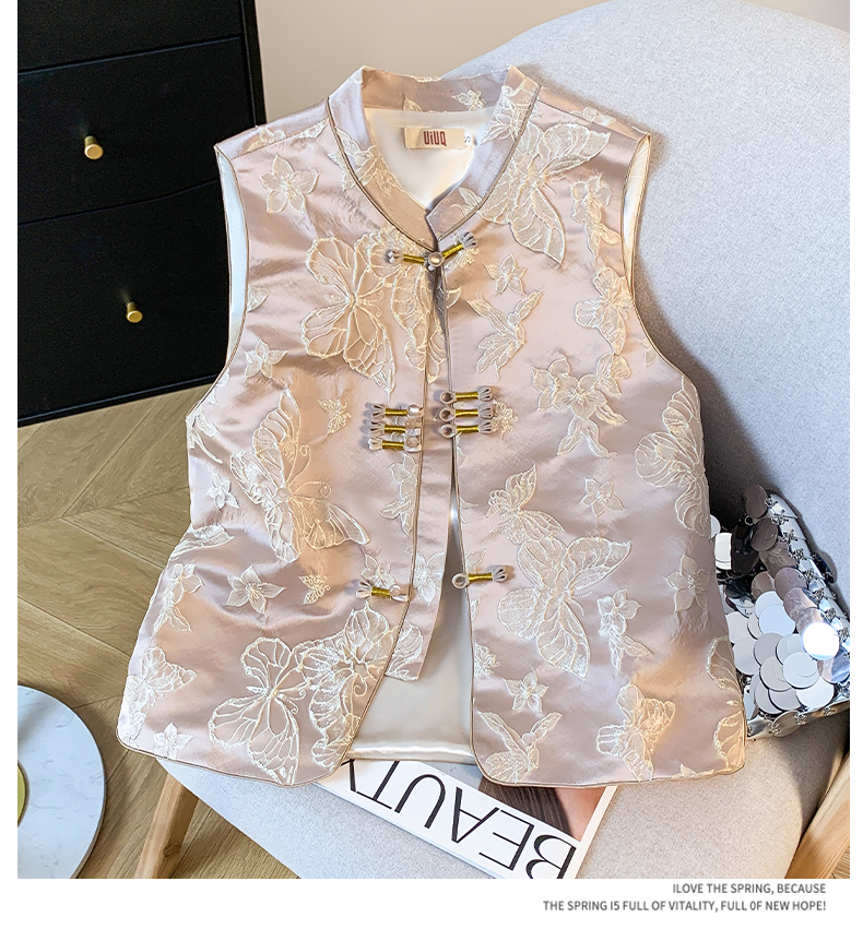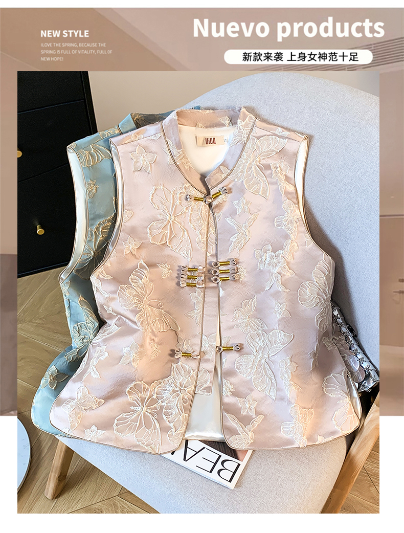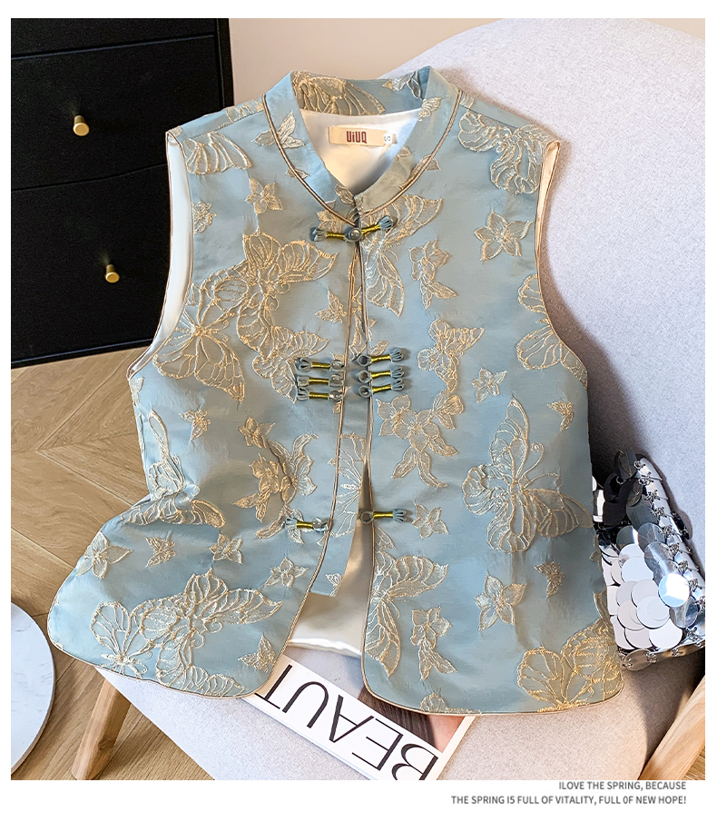투톤 나비 자수, 여성용 모던 중국 스타일 조끼, 2025년 봄/여름 신상품 하이엔드 우아한 중국 스타일 민소매 조끼, 개구리 단추.