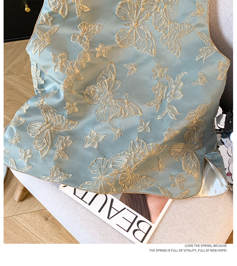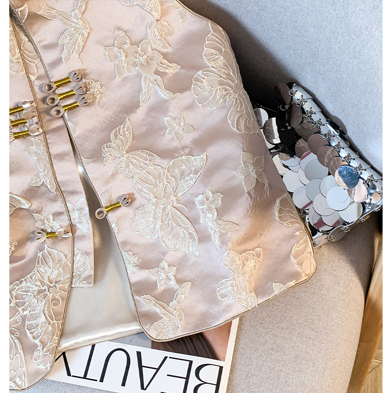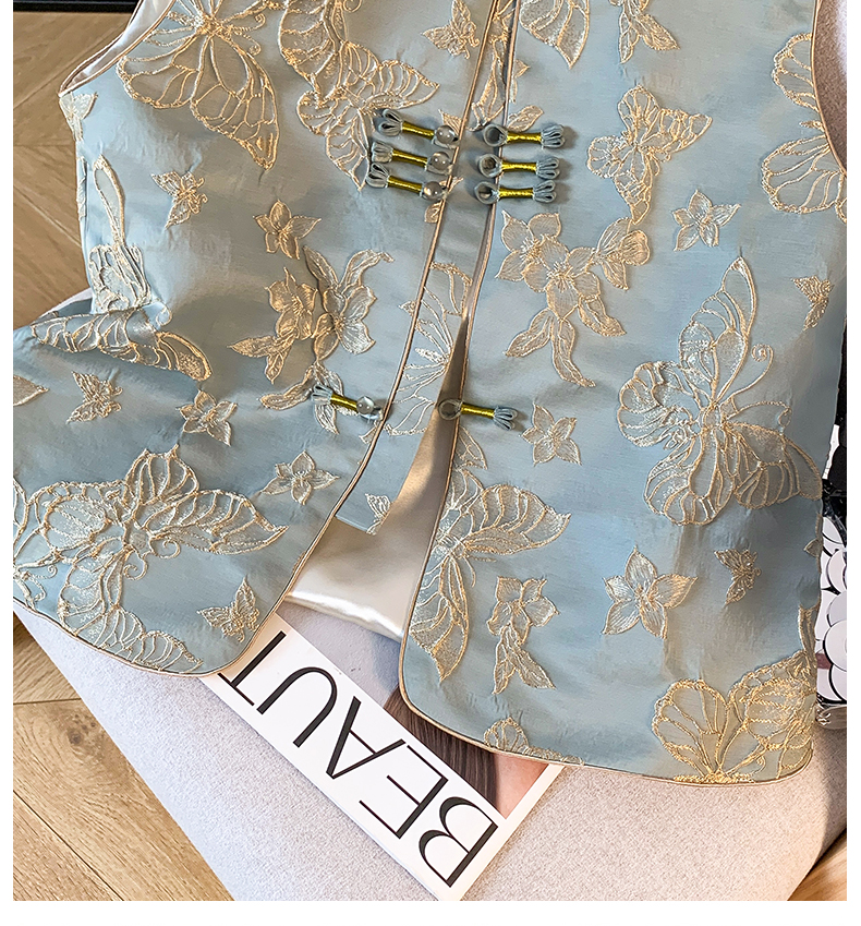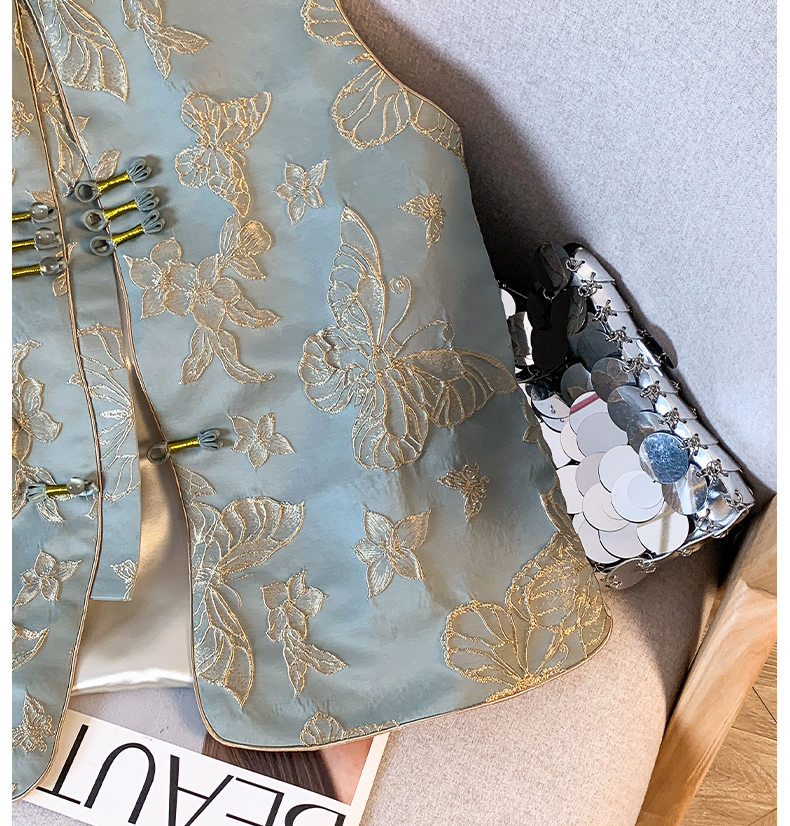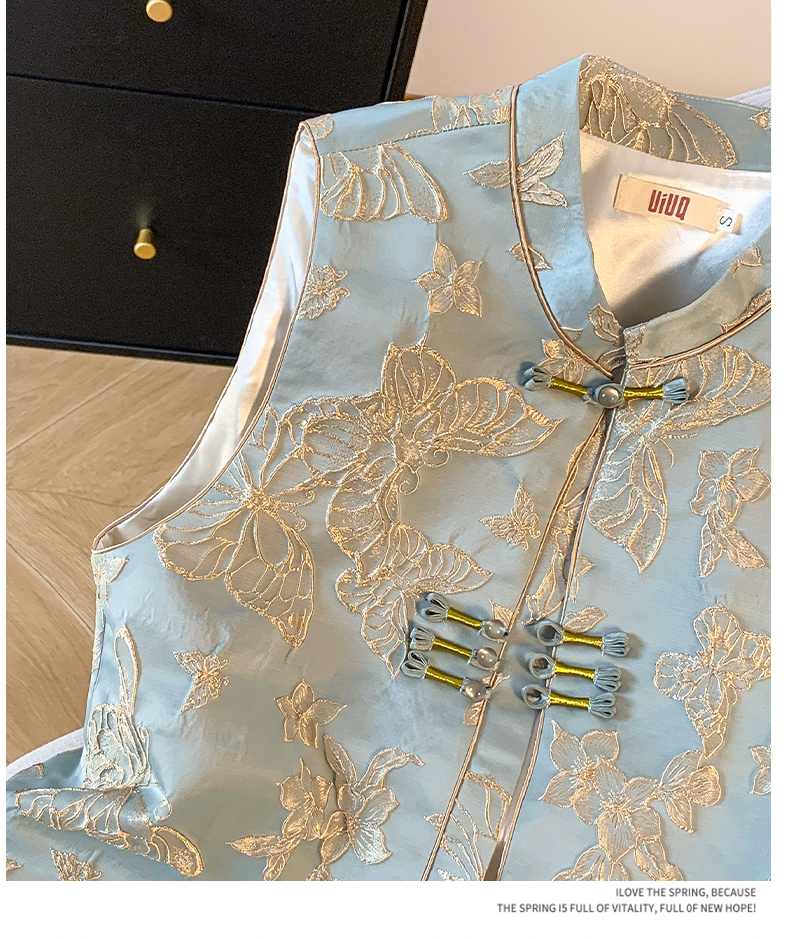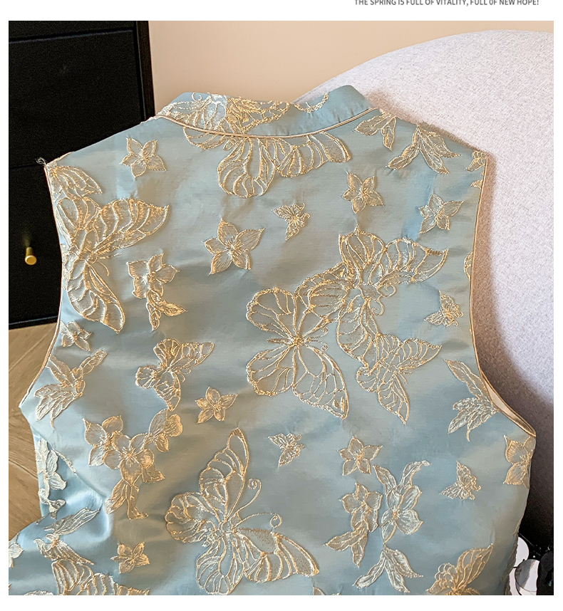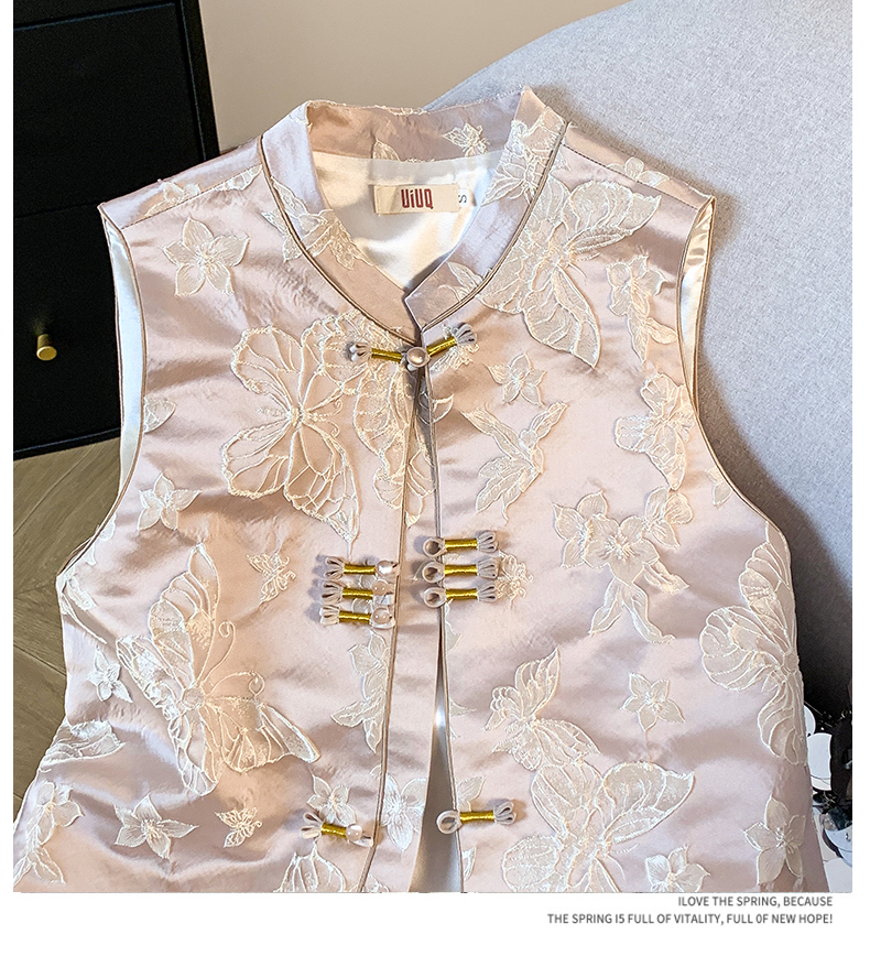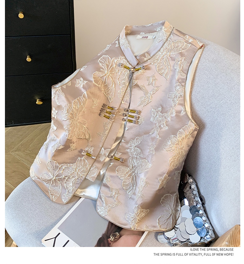 투톤 나비 자수, 여성용 모던 중국 스타일 조끼, 2025년 봄/여름 신상품 하이엔드 우아한 중국 스타일 민소매 조끼, 개구리 단추.