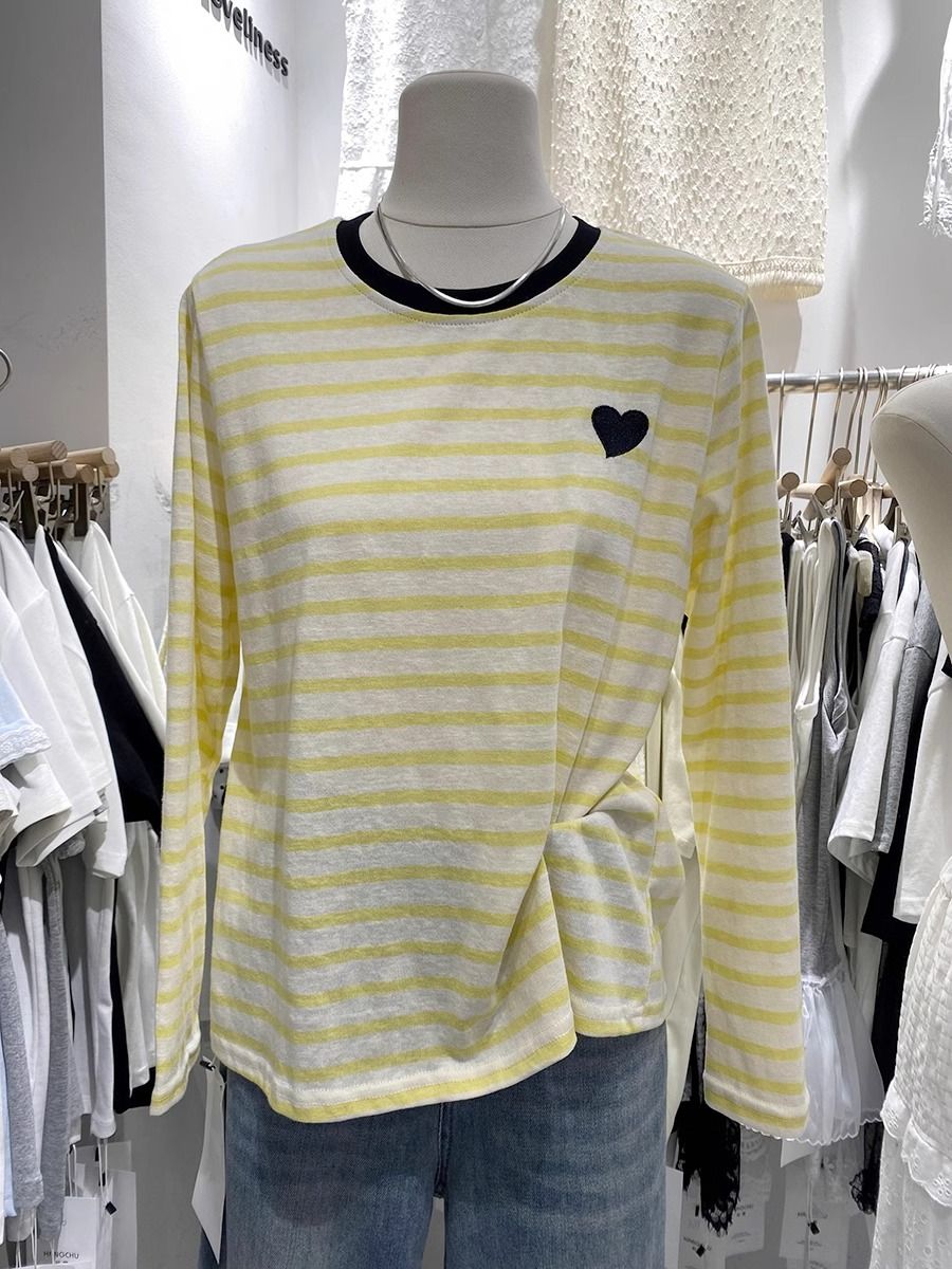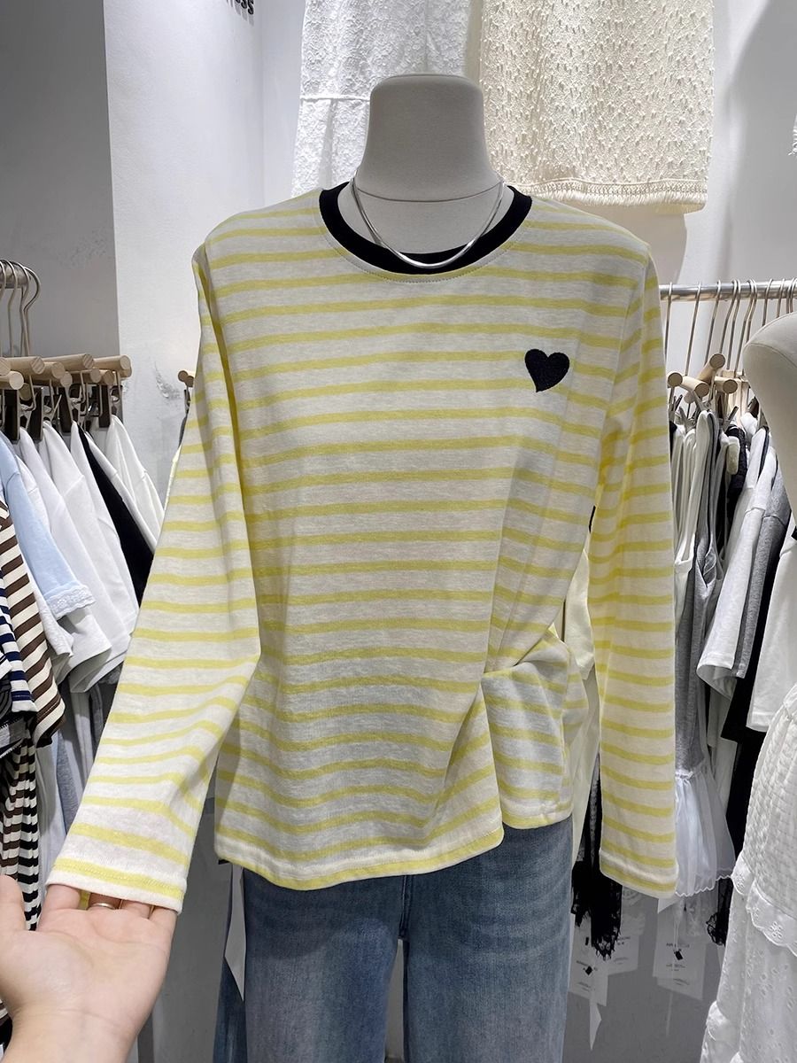 特大码300斤春夏新款刺绣爱心拼色T恤女长袖设计感小众休闲打底衫
