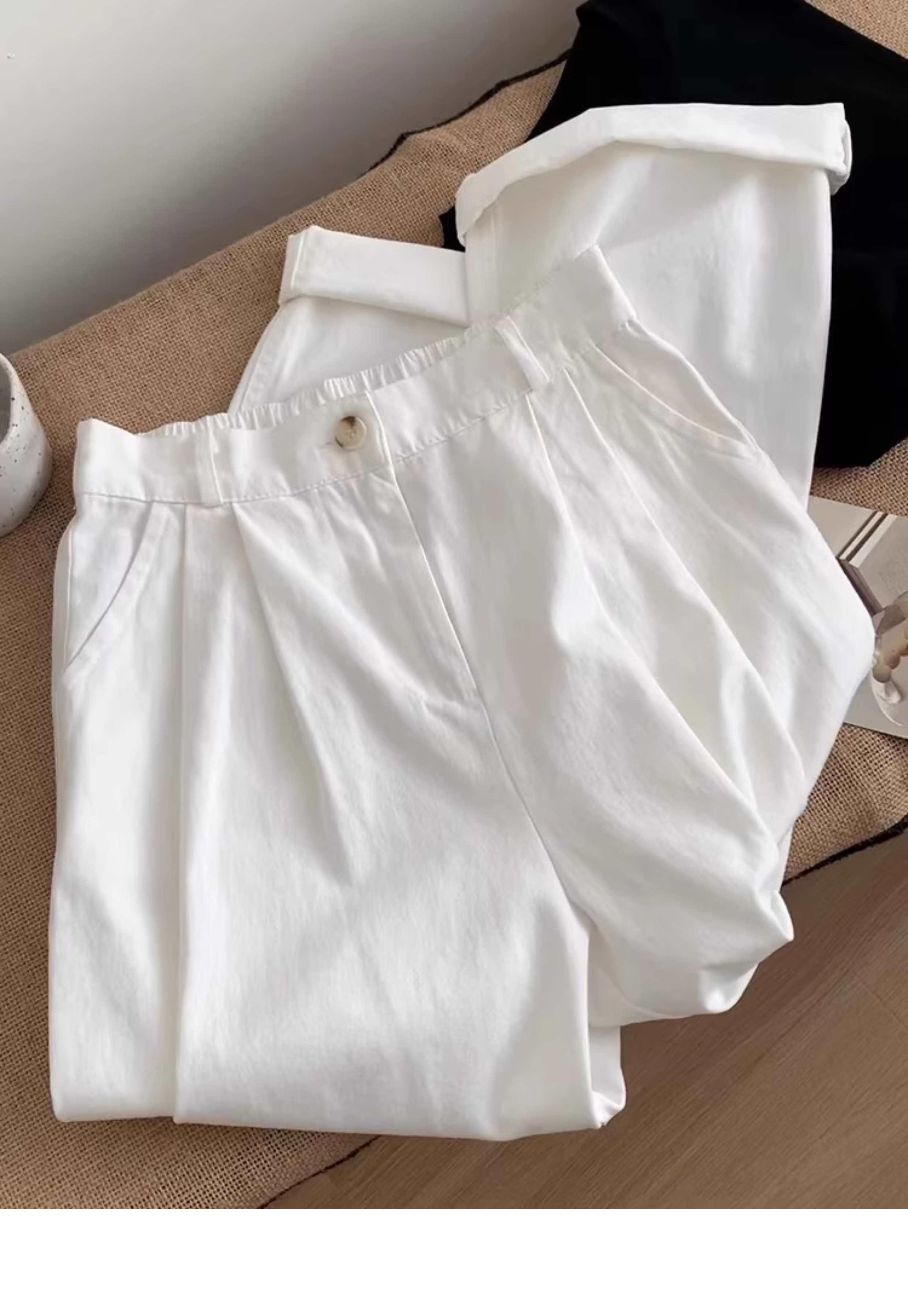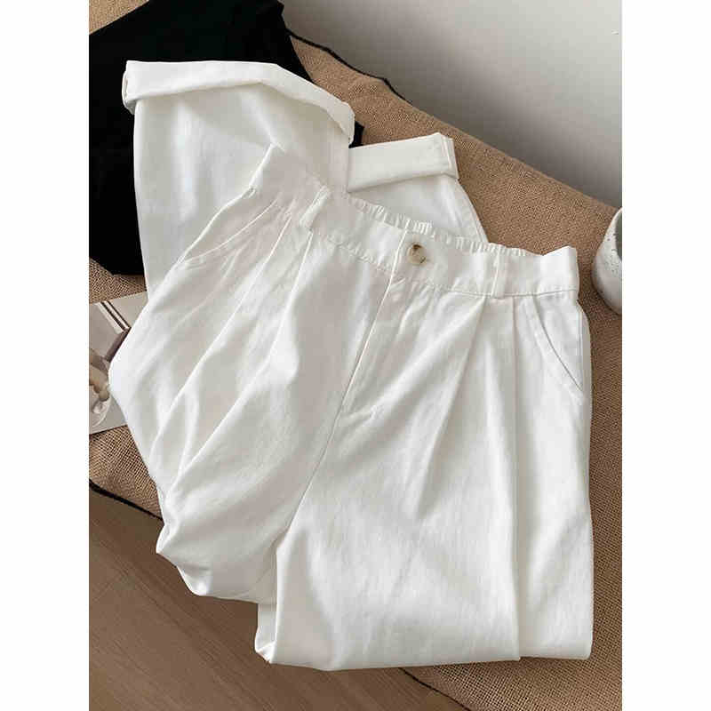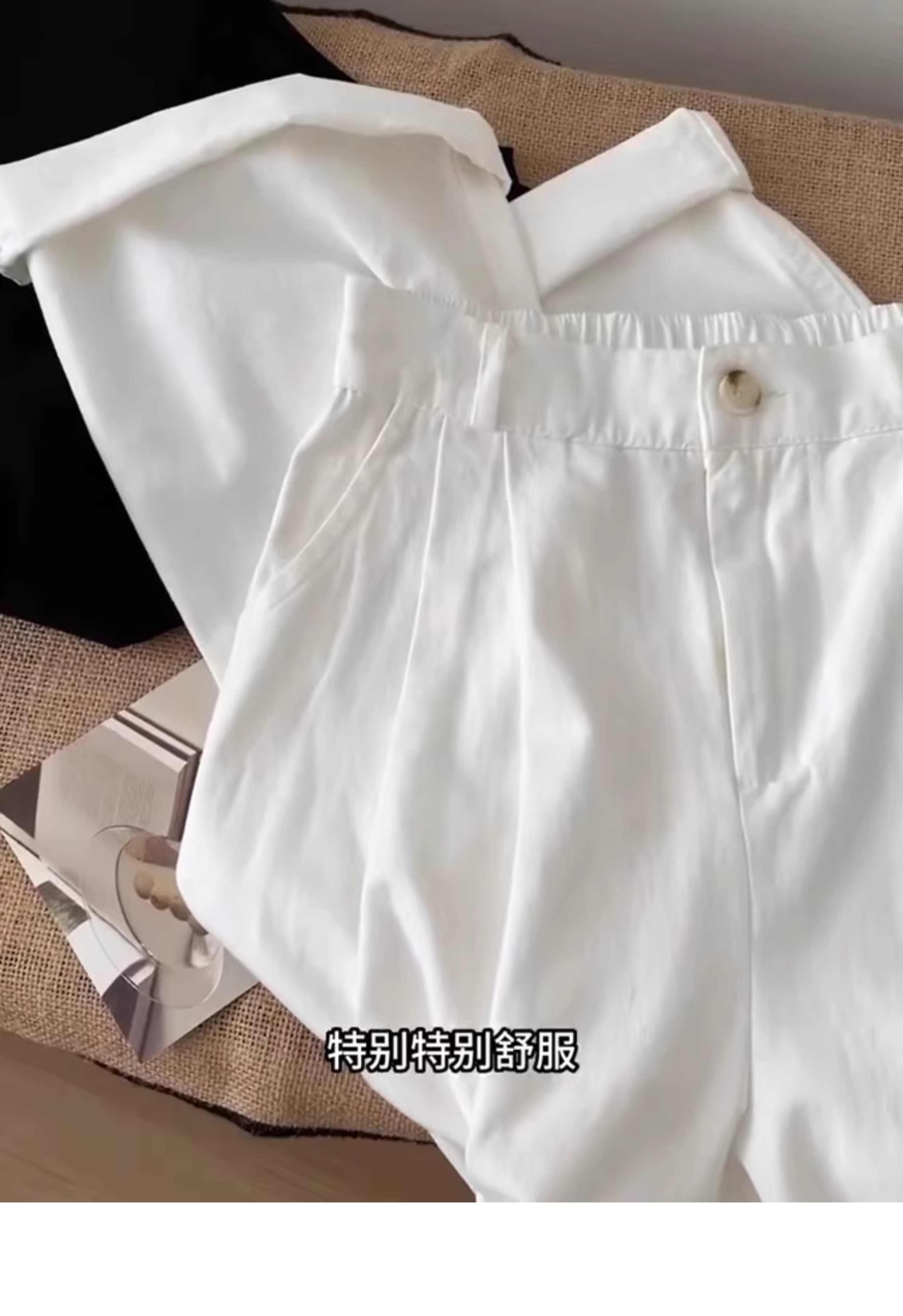 엉덩이를 가려 날씬해 보여요~ 한국 스타일 패션 하이웨이스트 화이트 캐주얼 팬츠 여성 여름 디자인 스몰 스트레이트 와이드 레그 팬츠