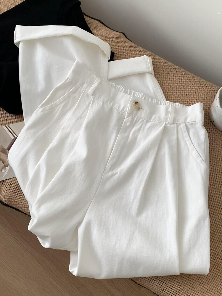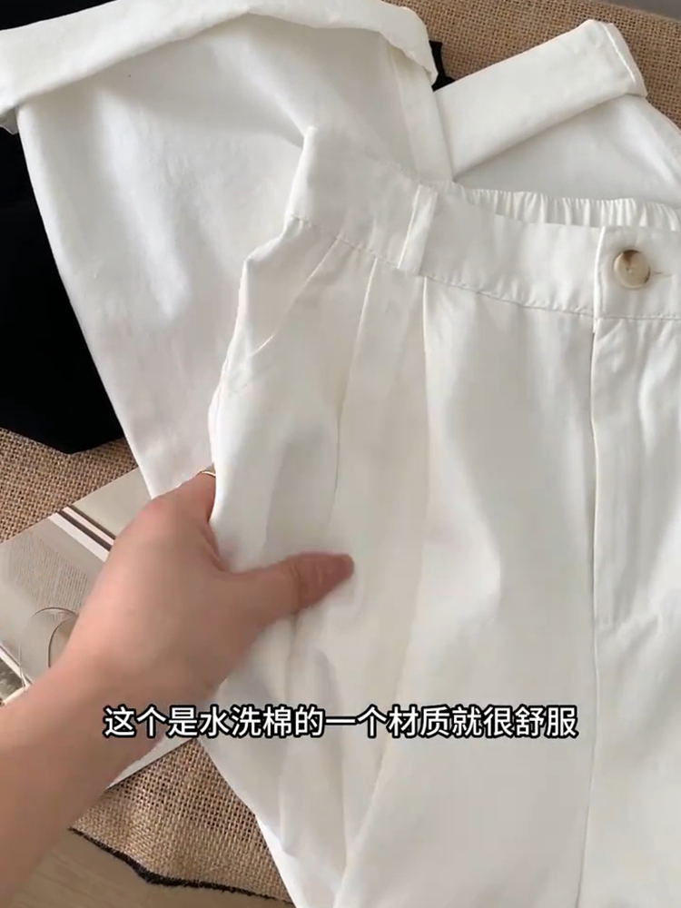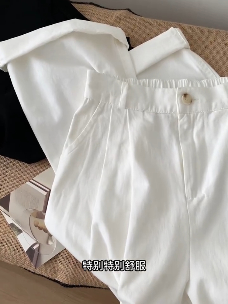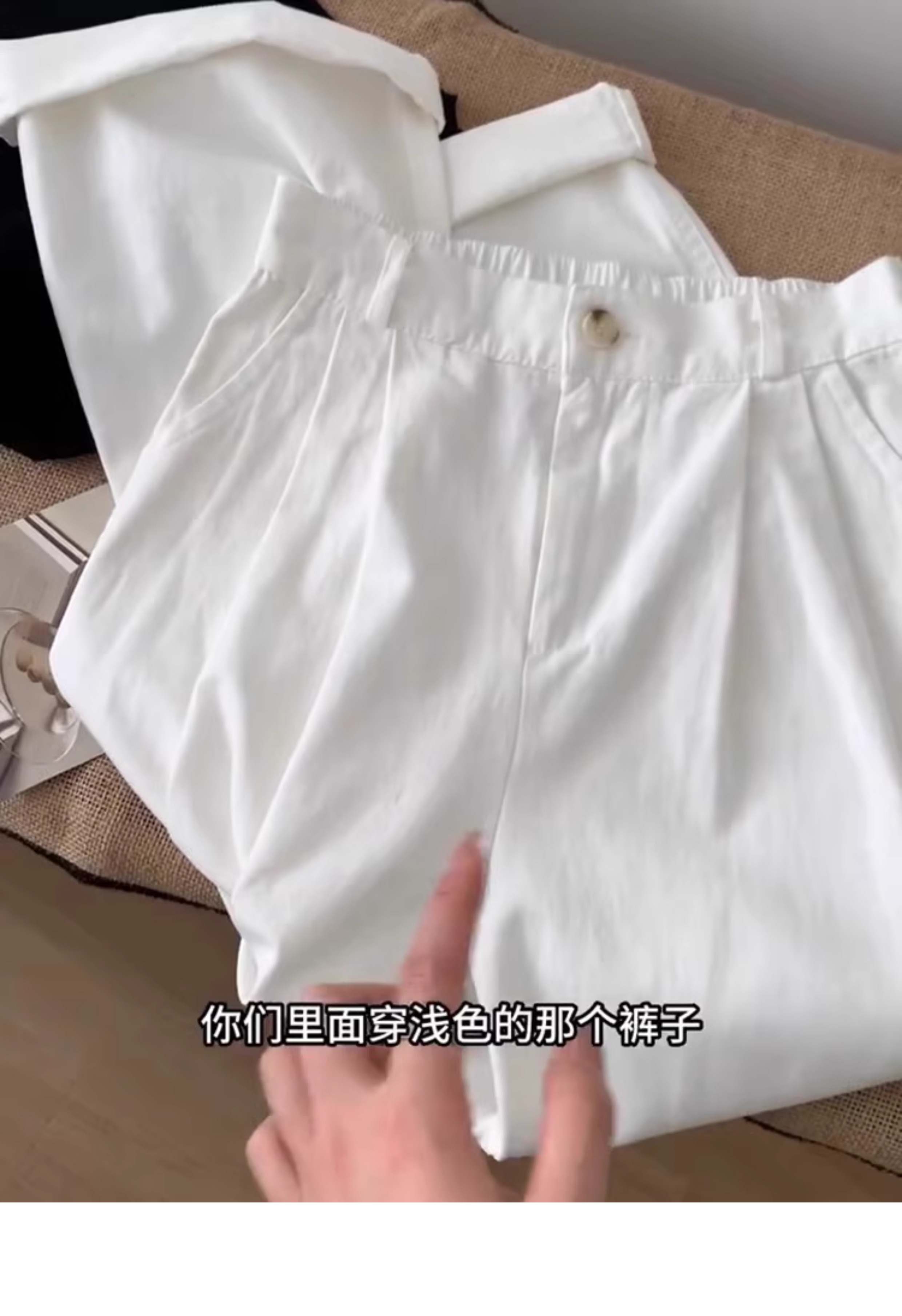 엉덩이를 가려 날씬해 보여요~ 한국 스타일 패션 하이웨이스트 화이트 캐주얼 팬츠 여성 여름 디자인 스몰 스트레이트 와이드 레그 팬츠