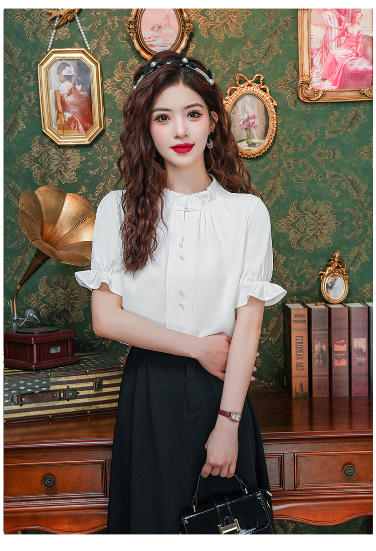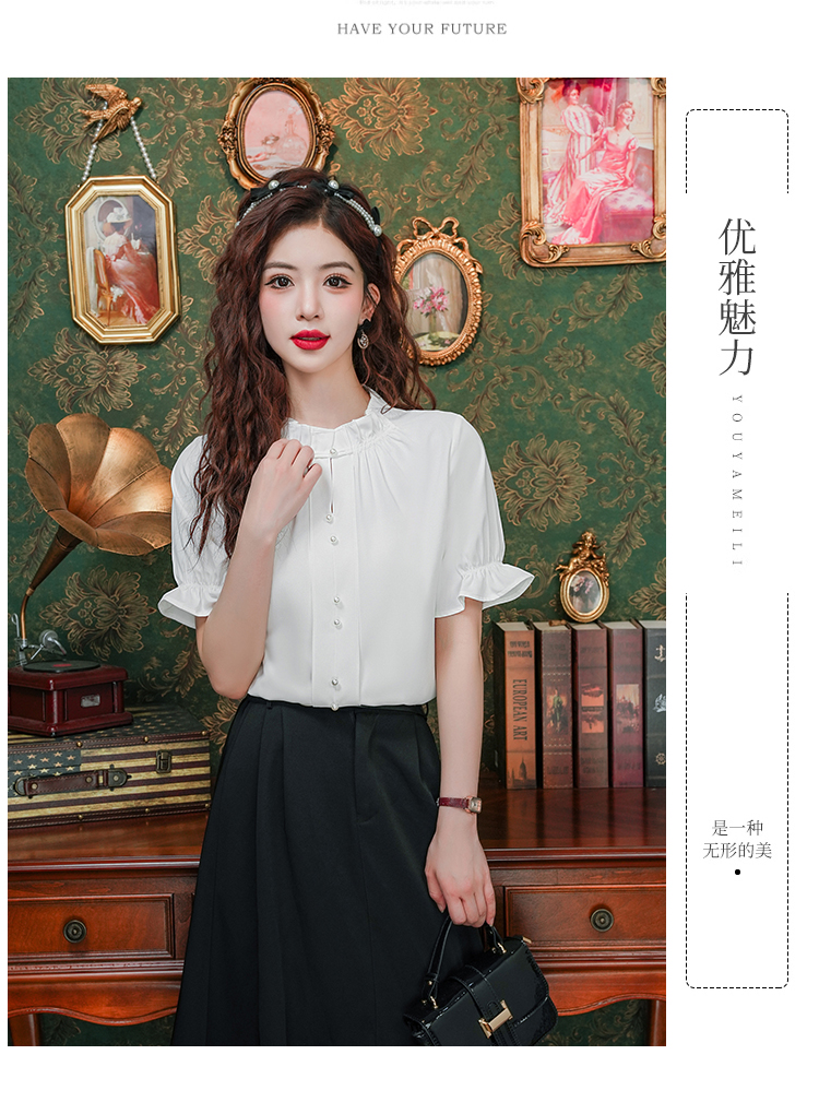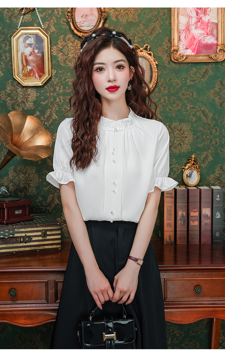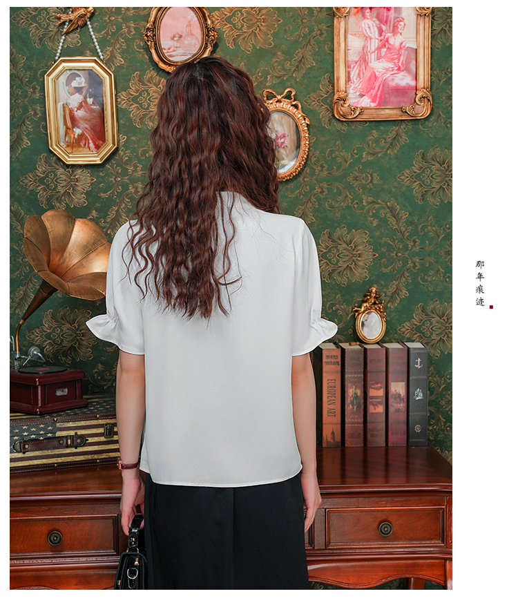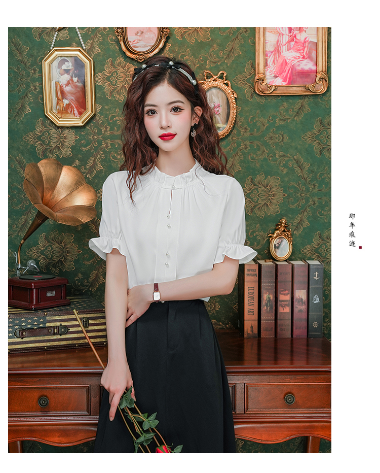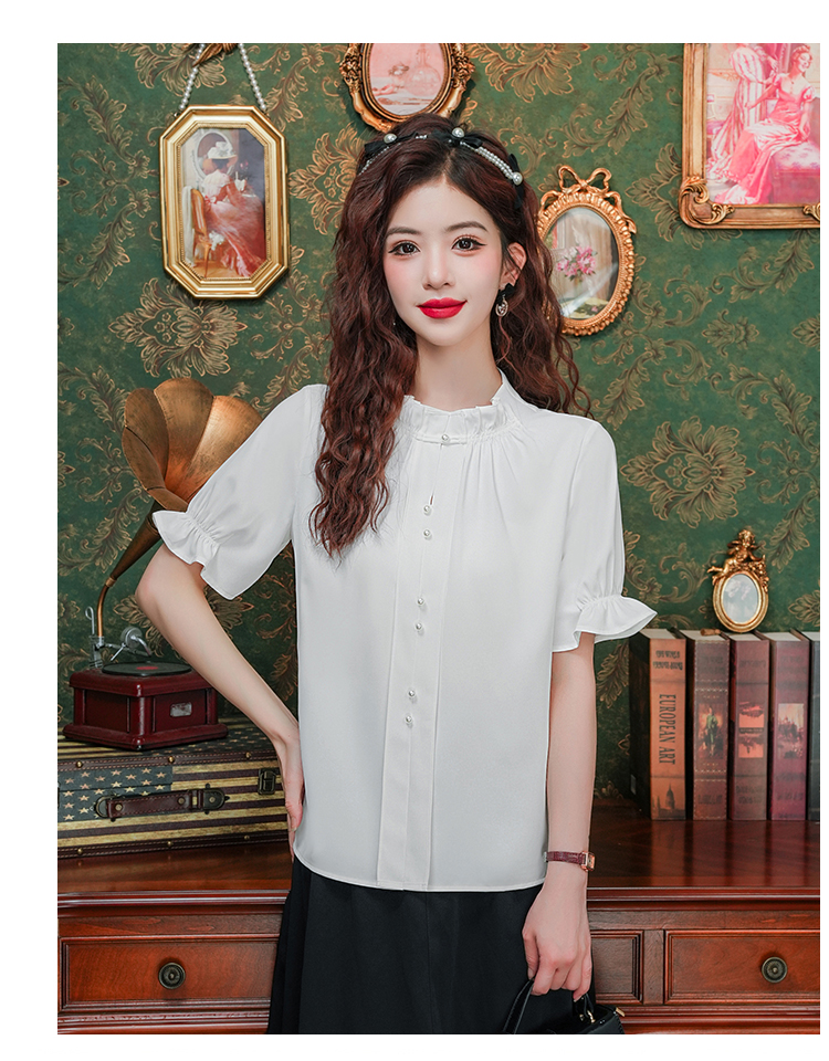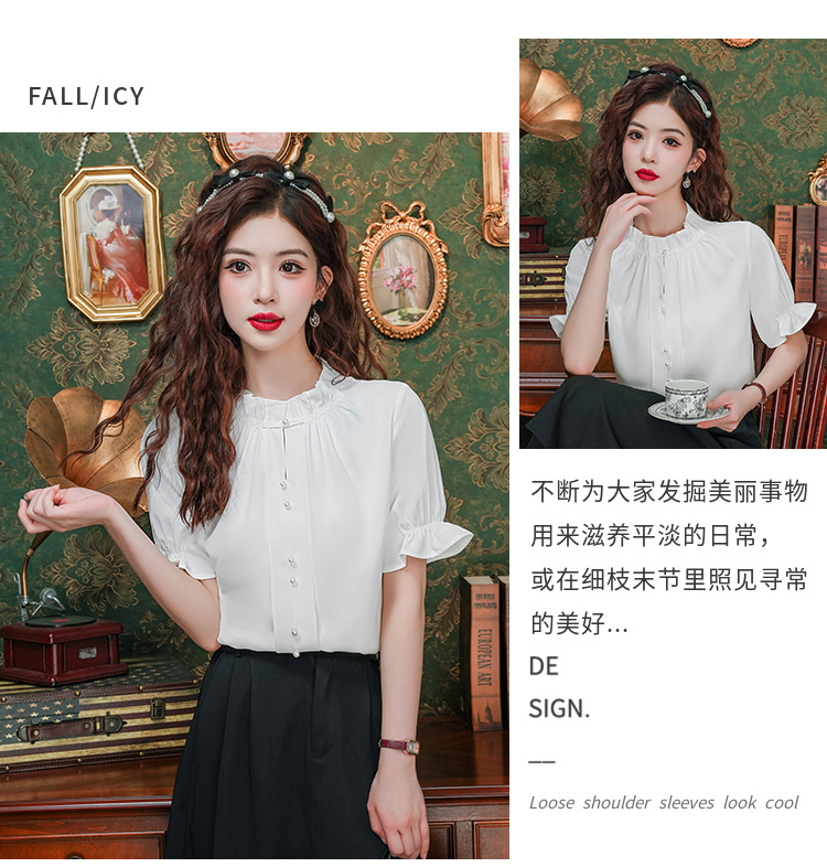 实拍~荷叶边白色短袖雪纺衫女2025夏季设计感气质V领上衣
