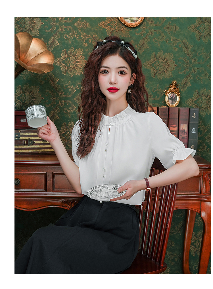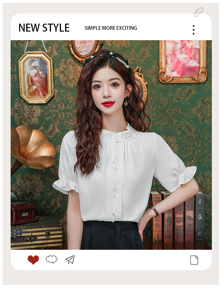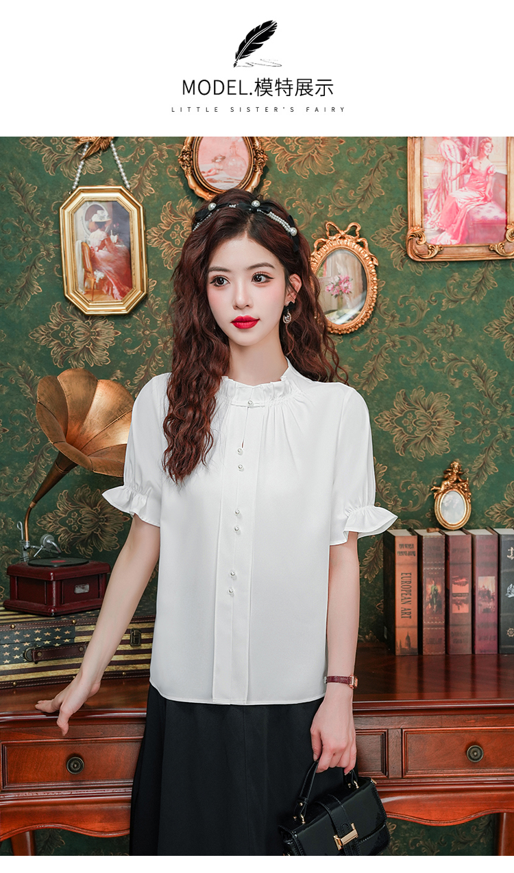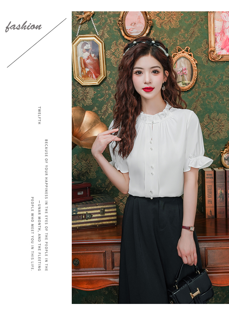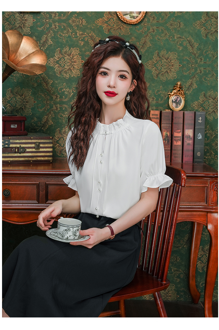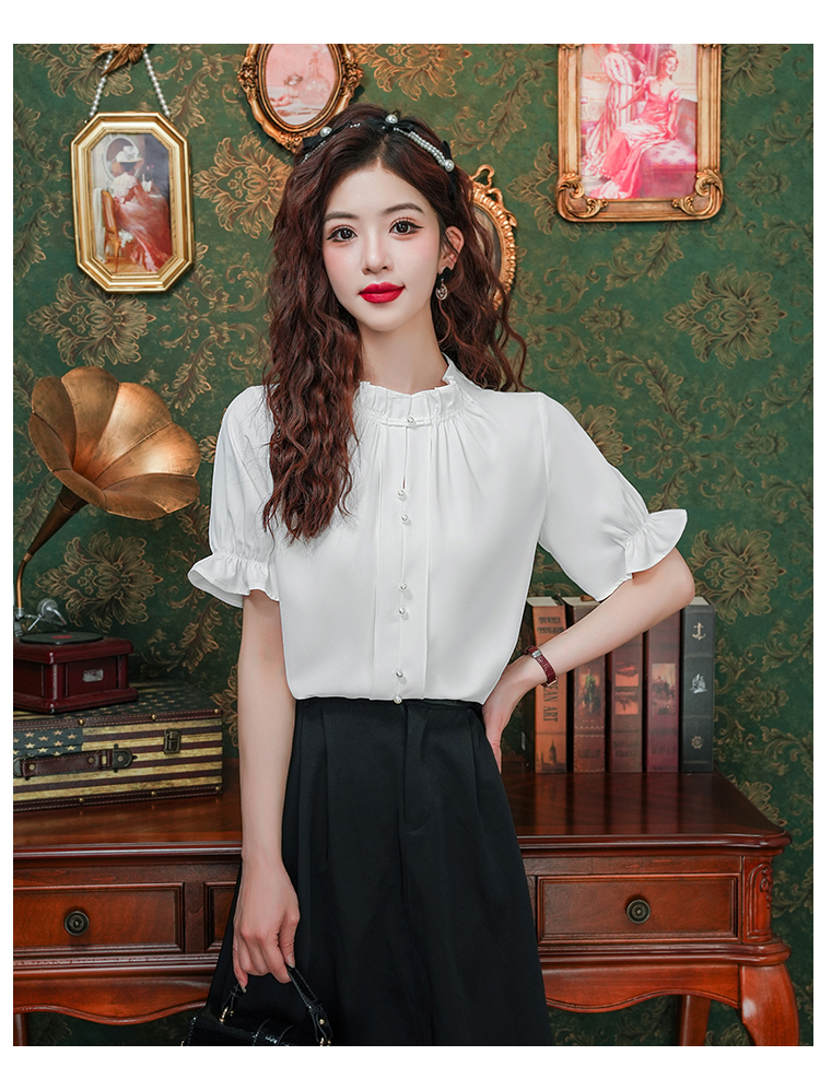 实拍~荷叶边白色短袖雪纺衫女2025夏季设计感气质V领上衣