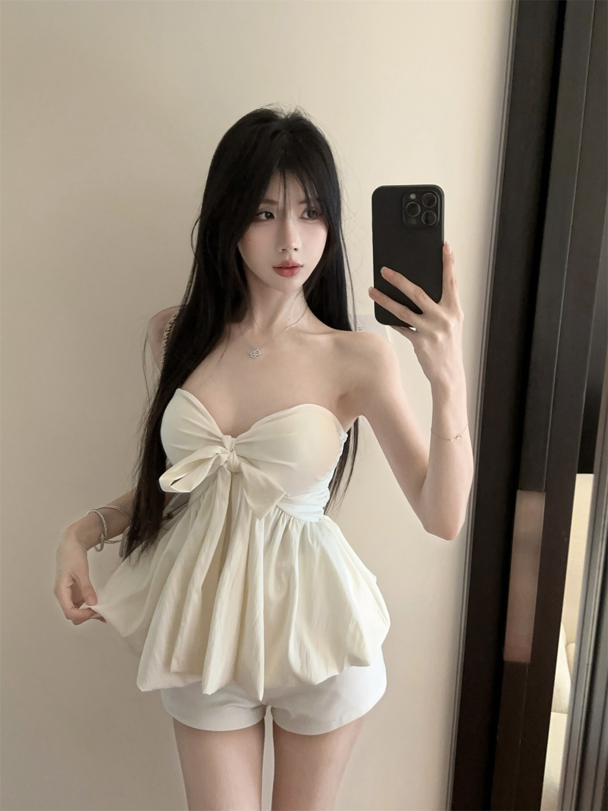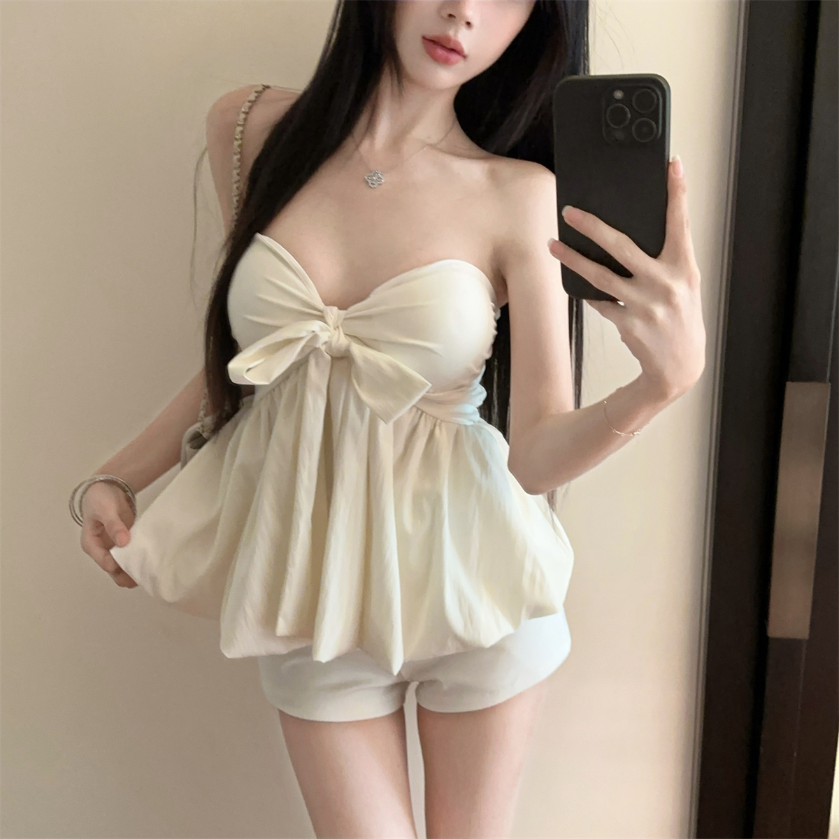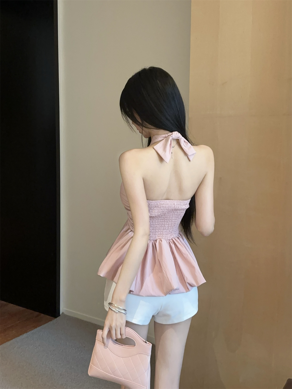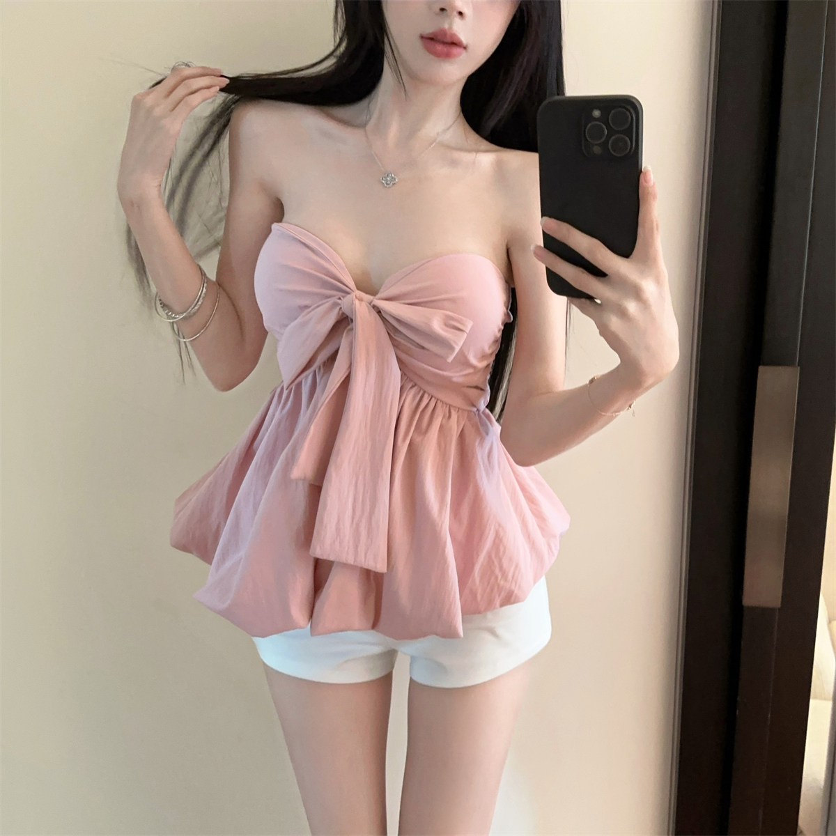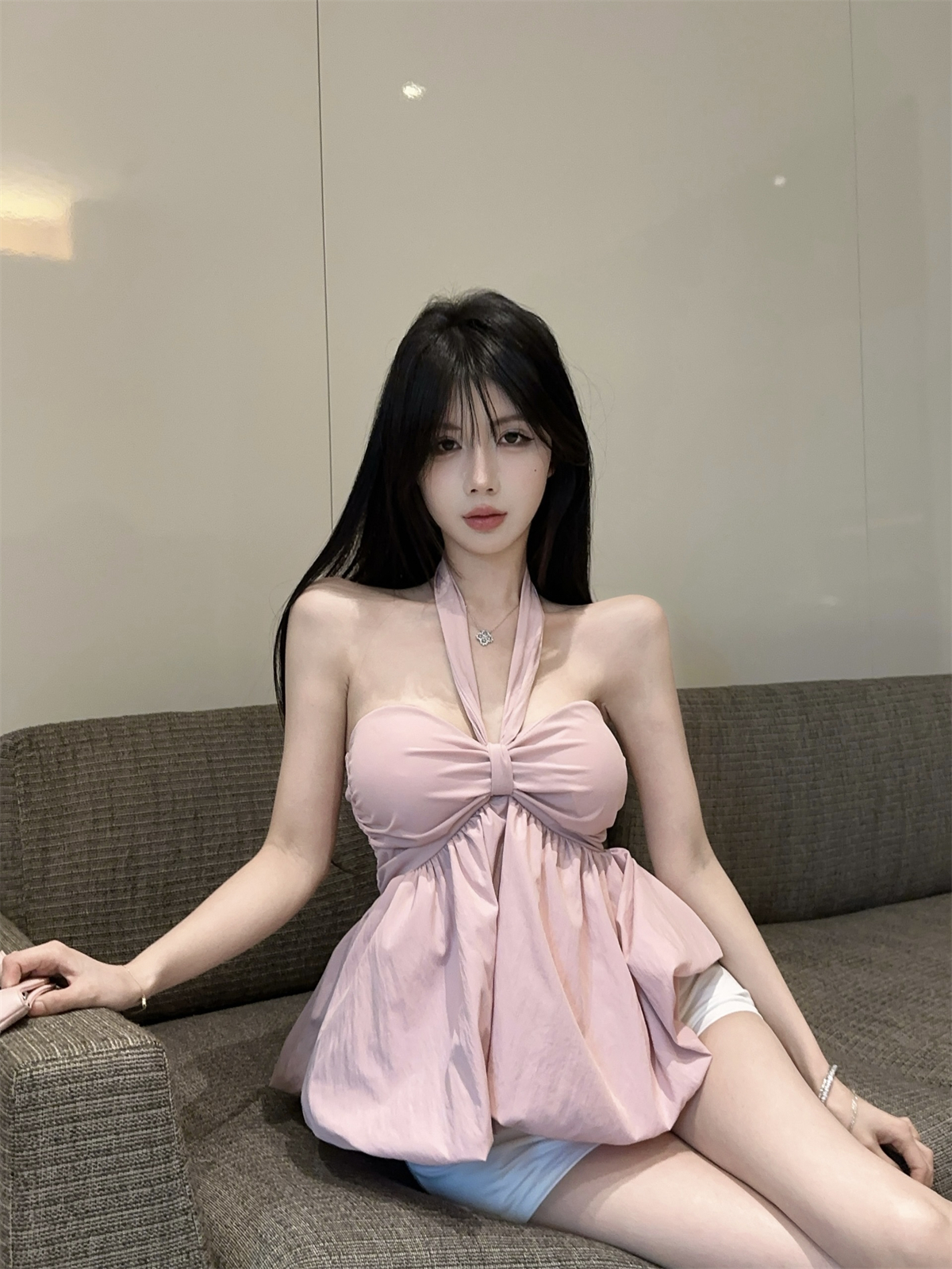 실제 촬영 및 실제 가격 순수한 욕망 나비 넥타이 다양한 착용 방법 홀터넥 서스펜더 서양식 작은 셔츠 반바지 여성 정장