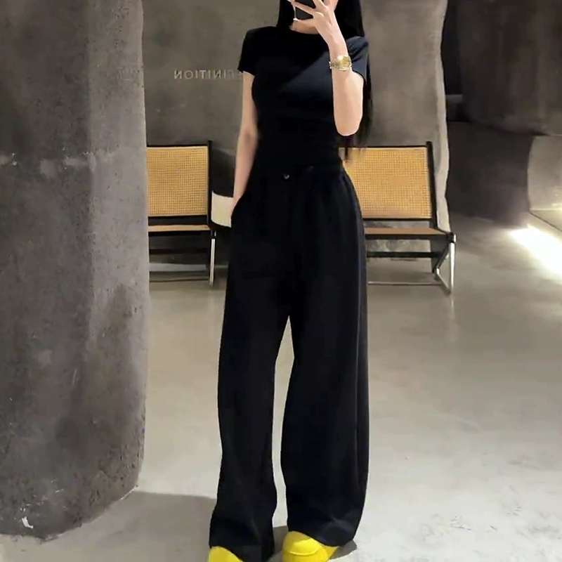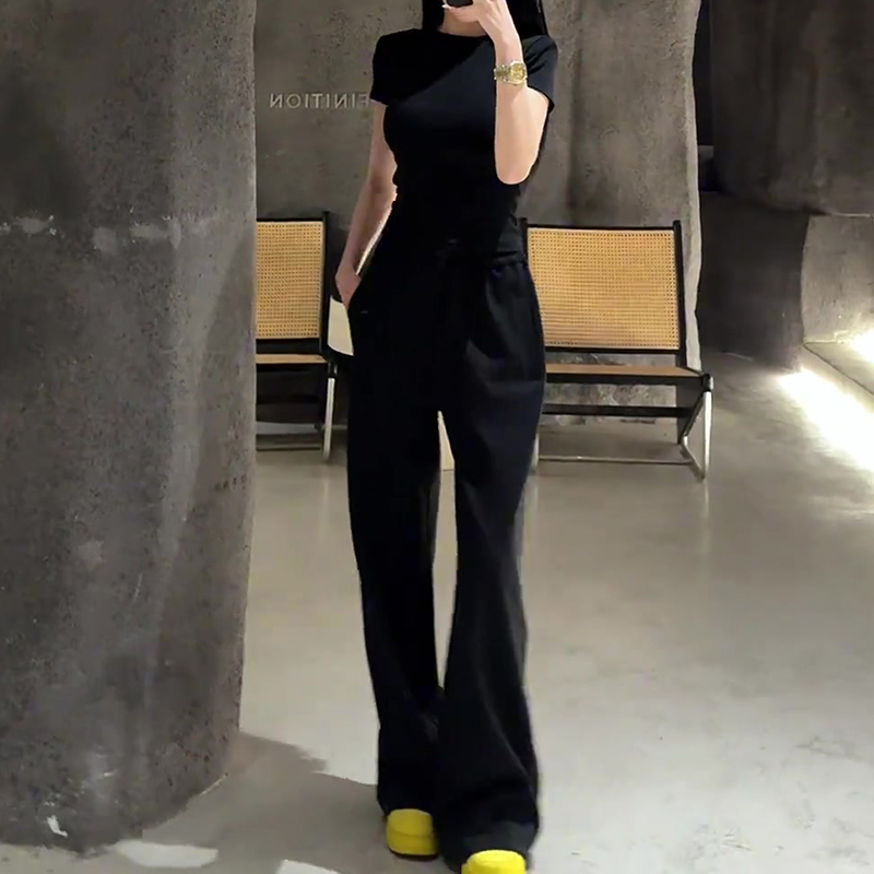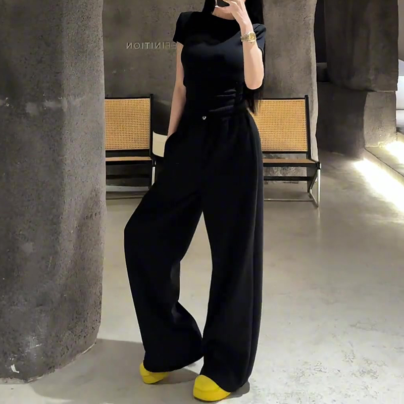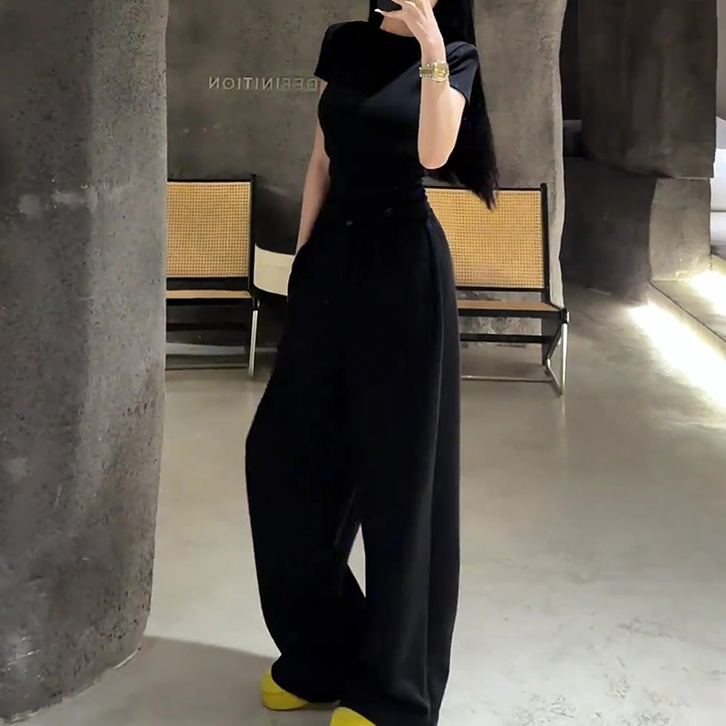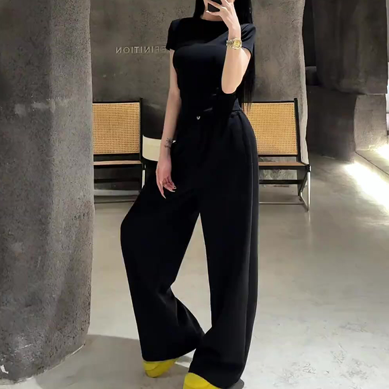 기질이 입는 고급 절묘한 슬림 블랙 캐주얼 스포츠 정장 여성 여름 2025 새로운 반팔 투피스 정장