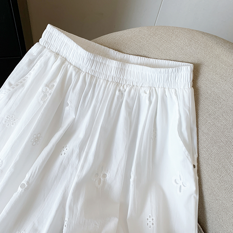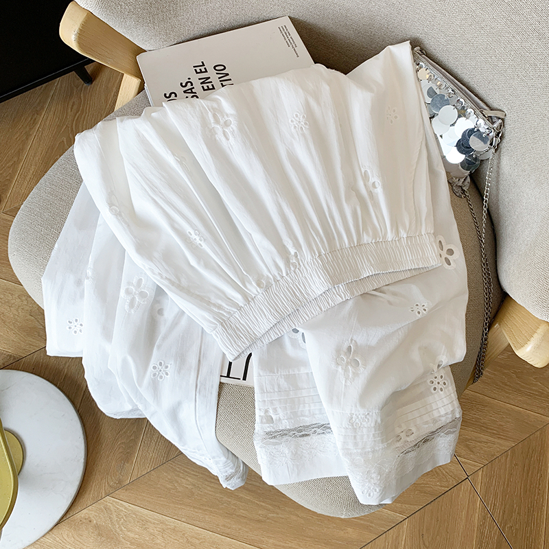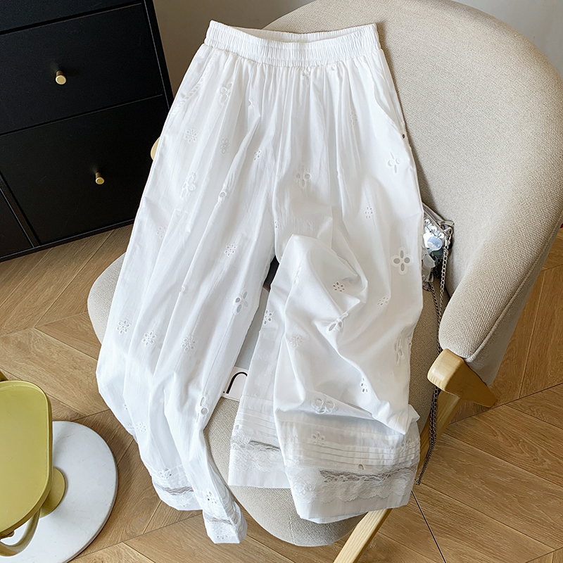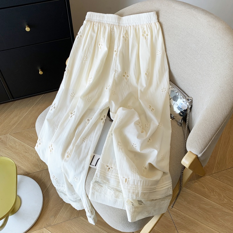 2025년 여름 디자인 홀로우 레이스 스플라이싱 와이드 레그 캐주얼 팬츠 하이웨이스트 올매치 루즈 슬리밍 캐주얼 팬츠 여성용