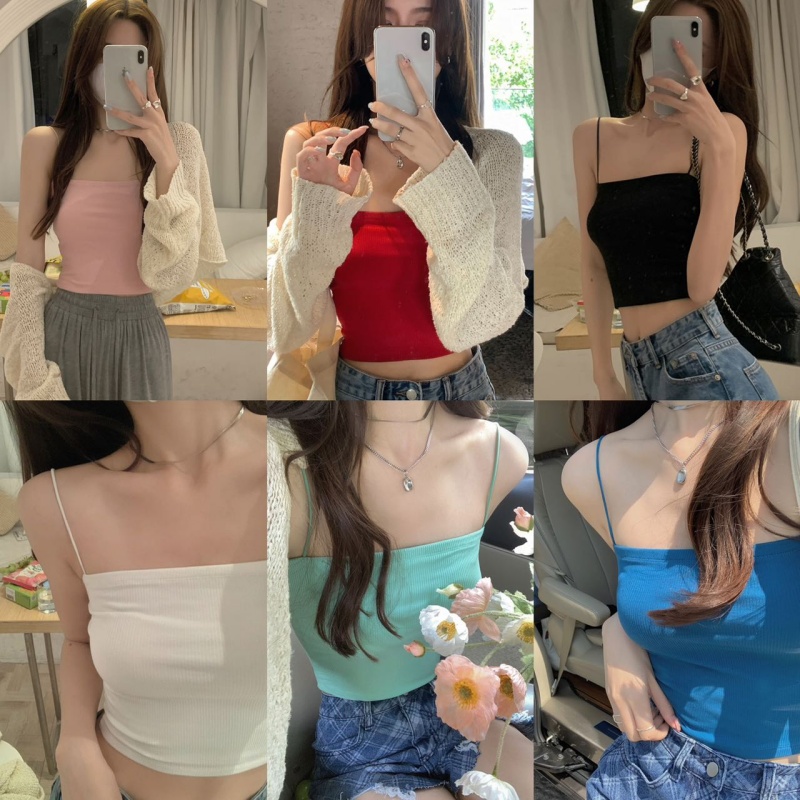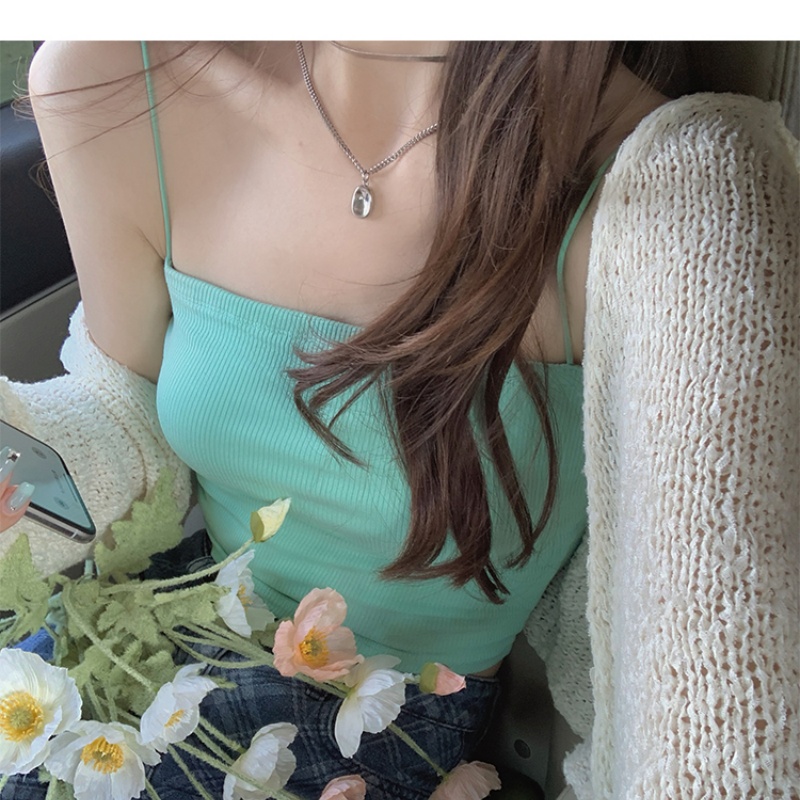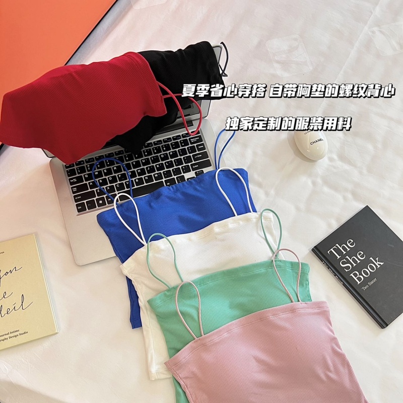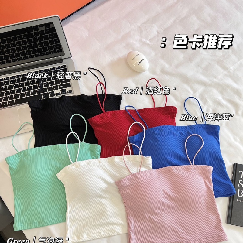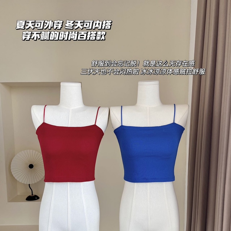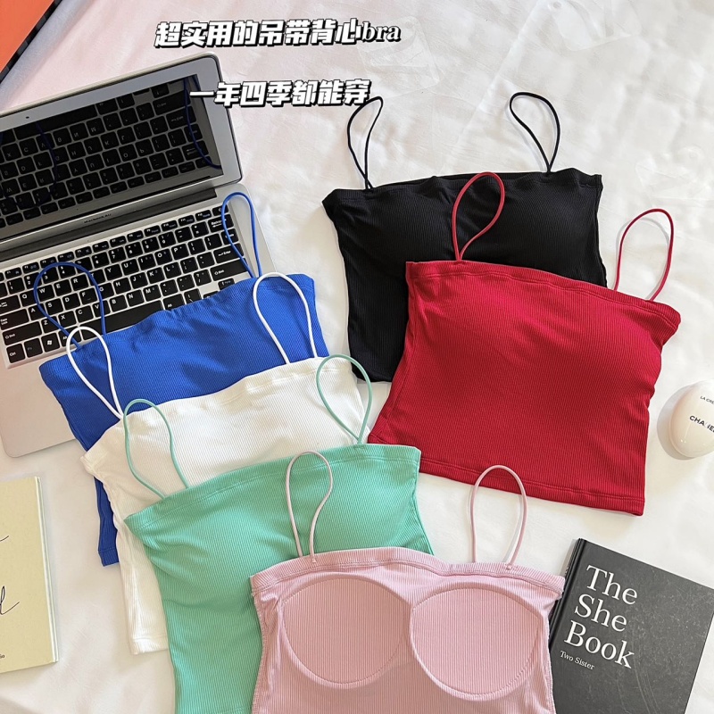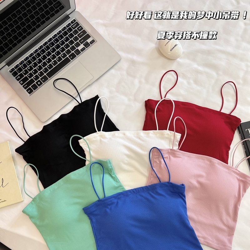2025夏季新款人棉款带胸垫吊带带胸垫固定杯百搭美背