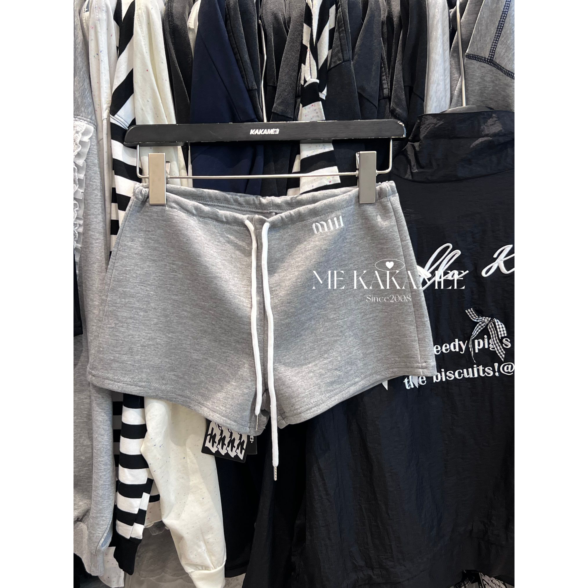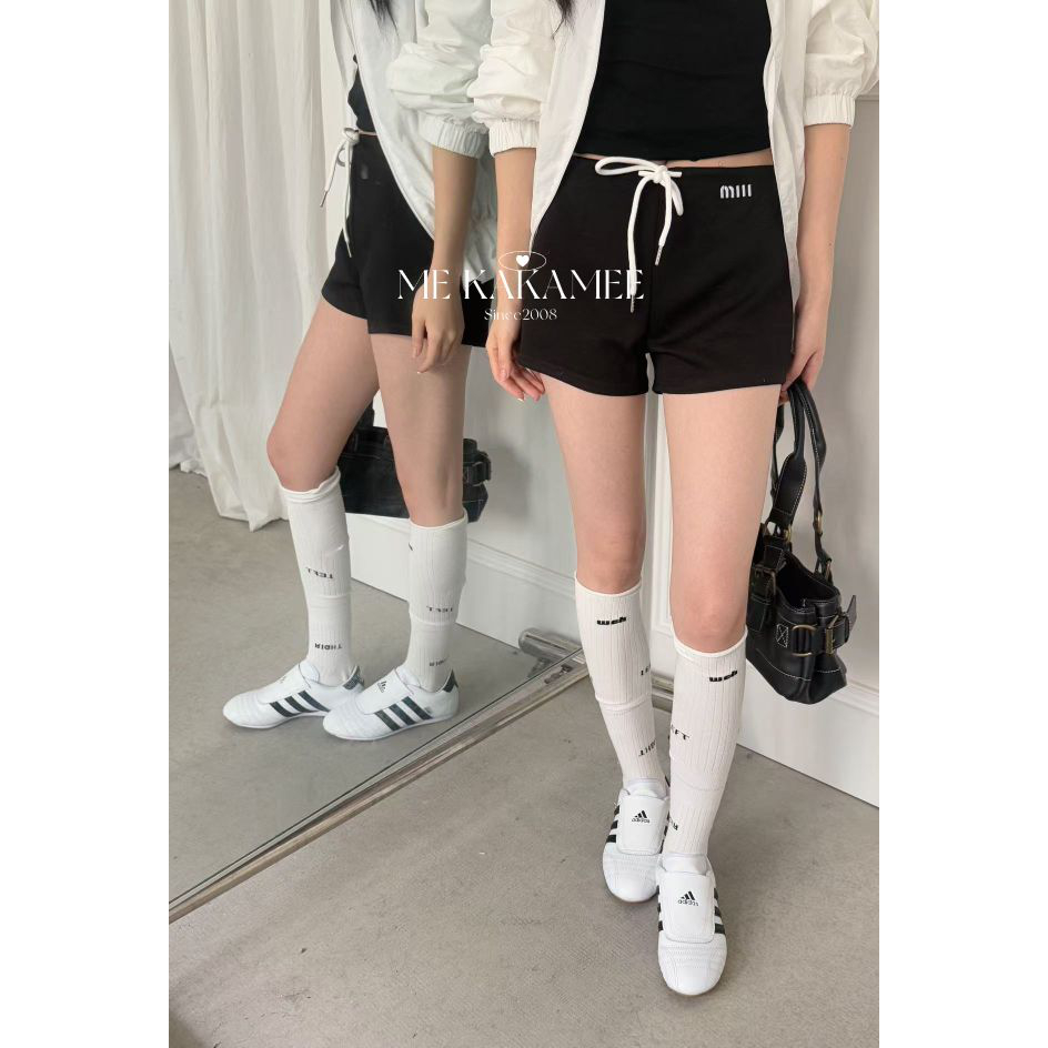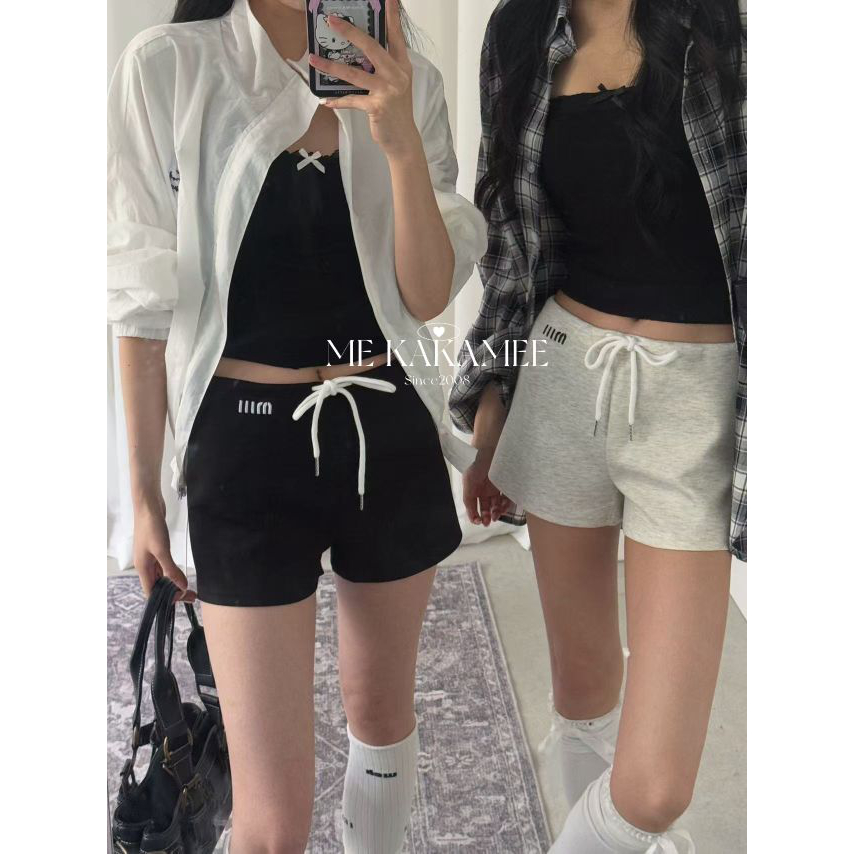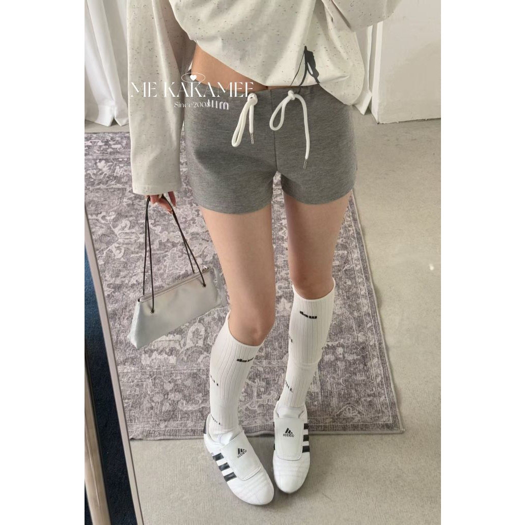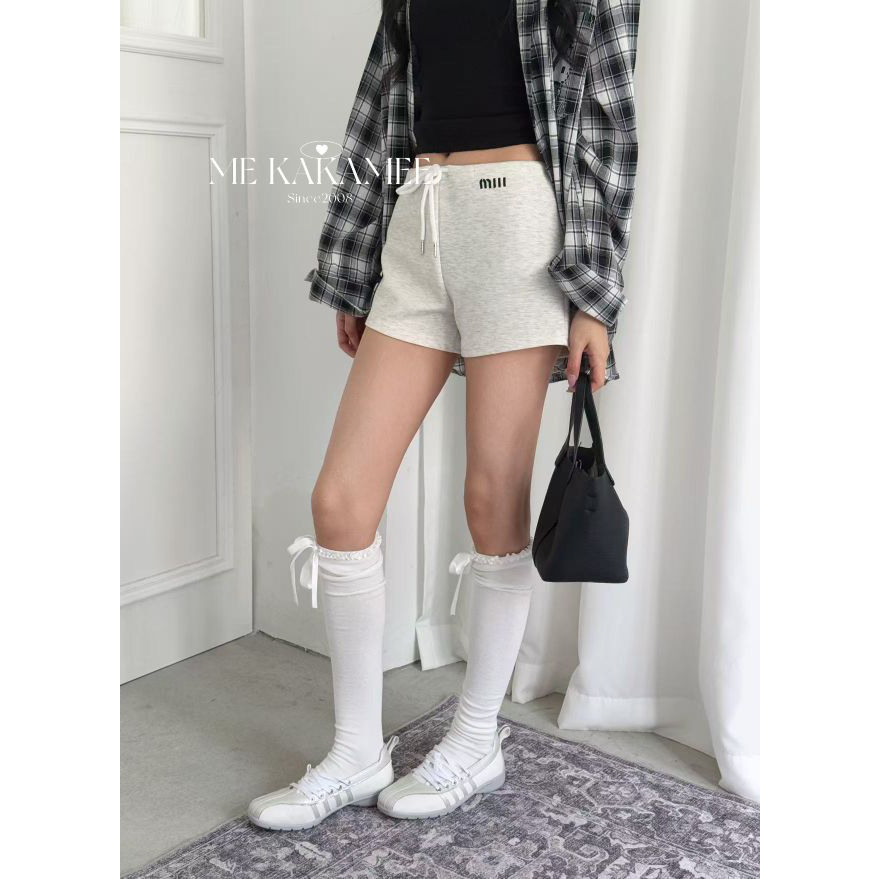 KAKAMEE春季美式辣妹字母刺绣休闲短裤女百搭高腰绑带直筒裤子潮