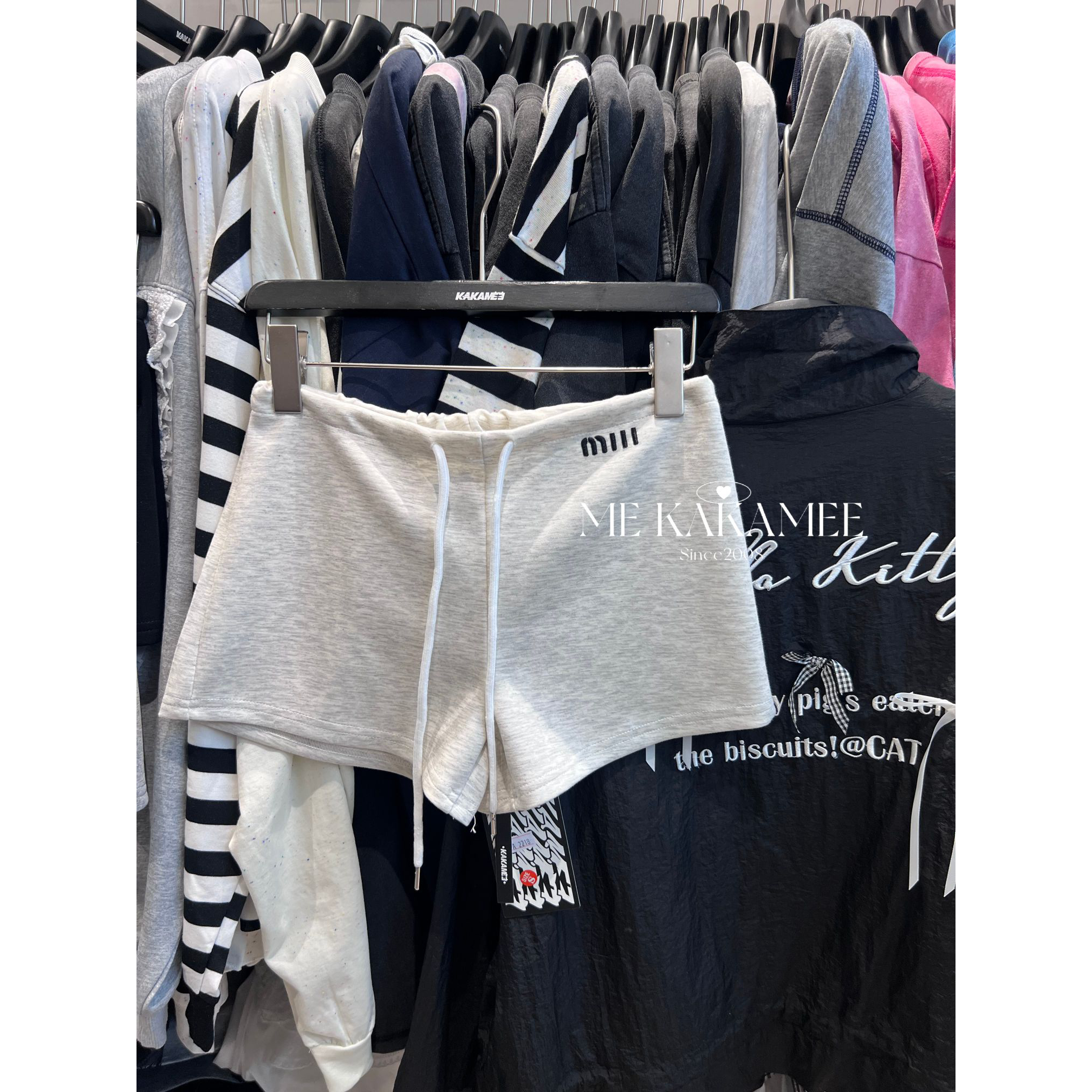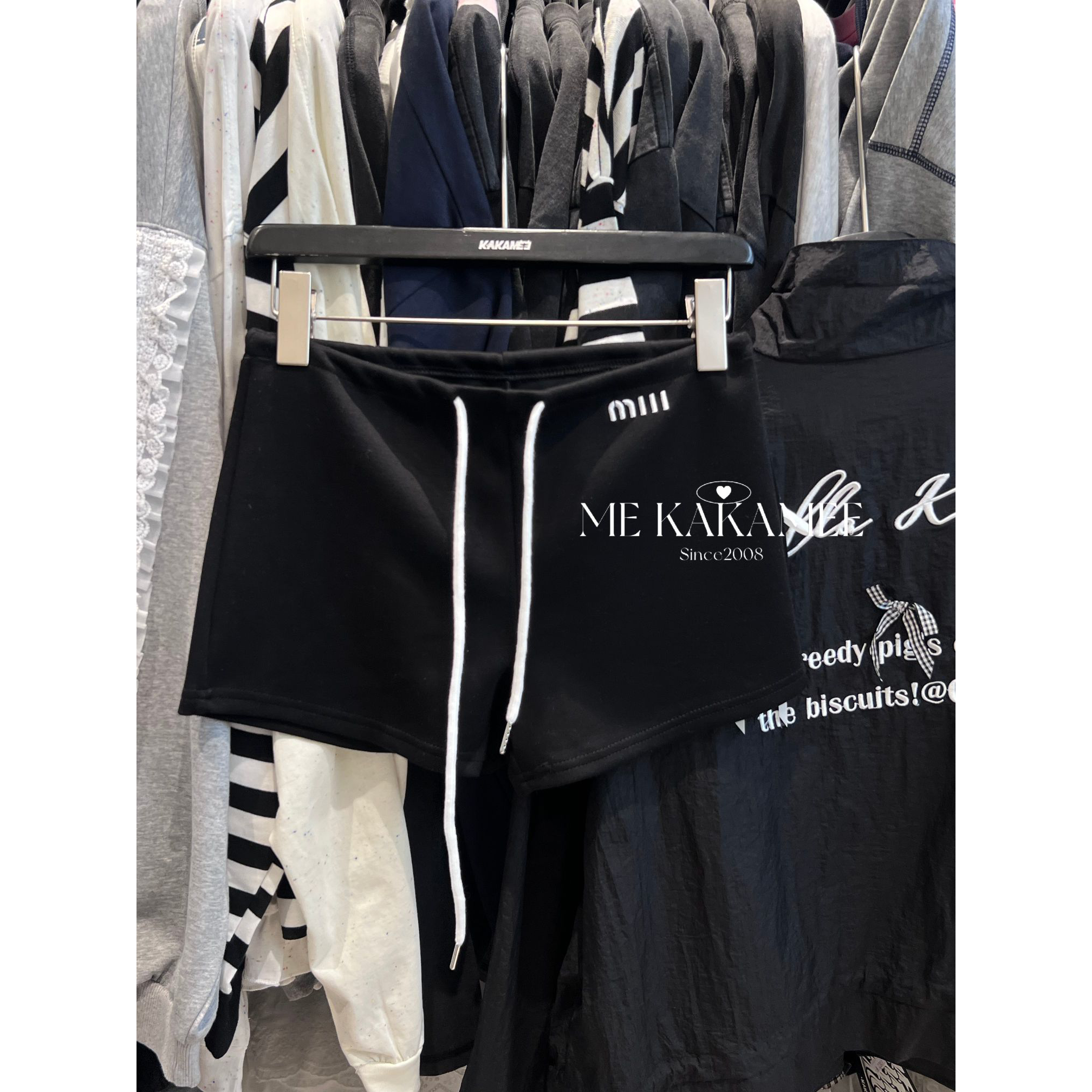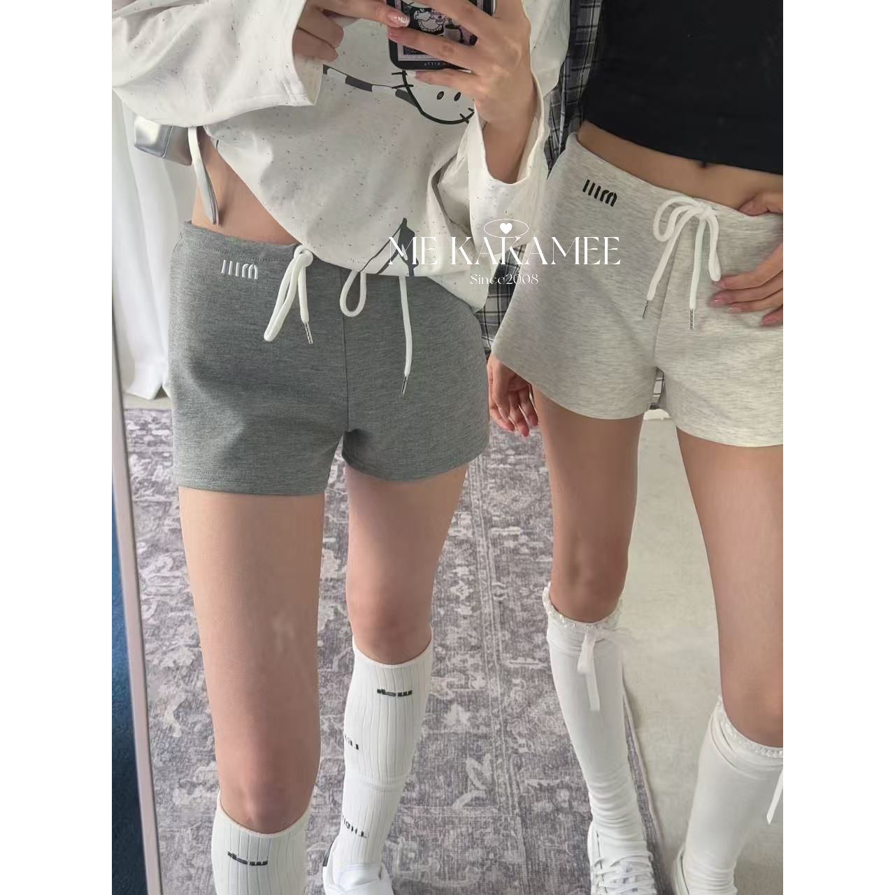 KAKAMEE春季美式辣妹字母刺绣休闲短裤女百搭高腰绑带直筒裤子潮