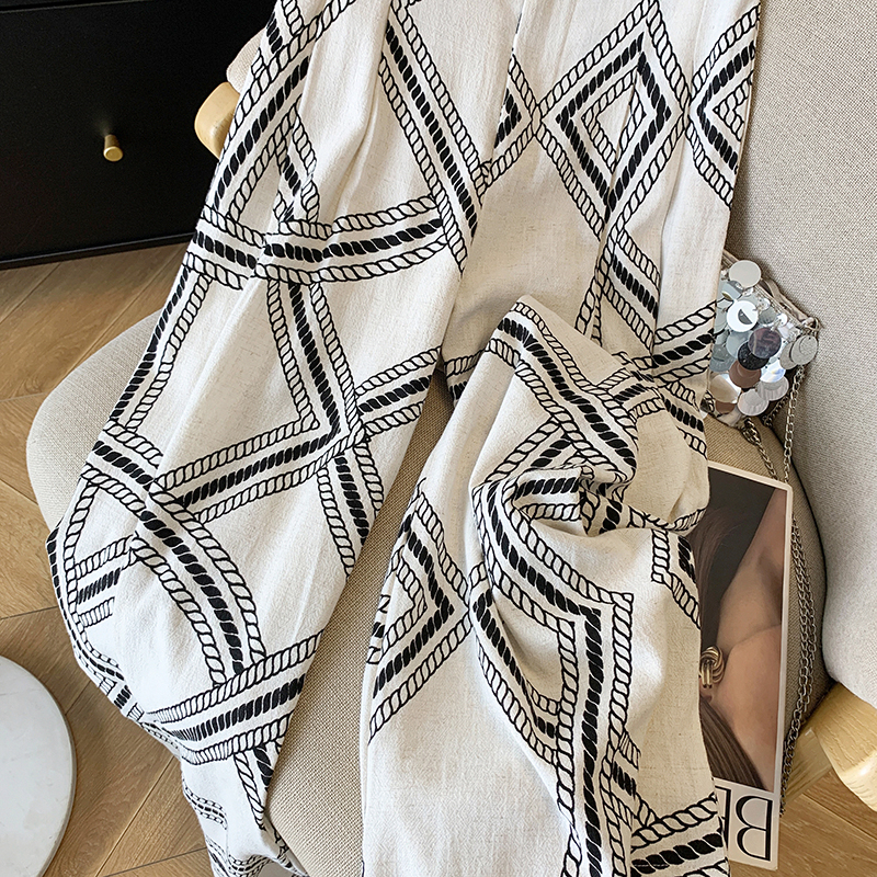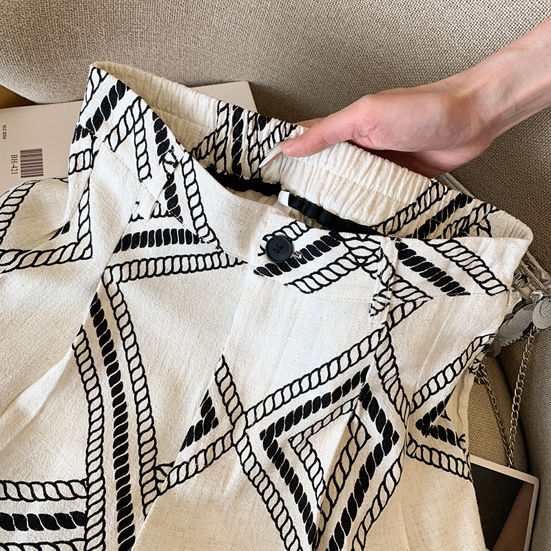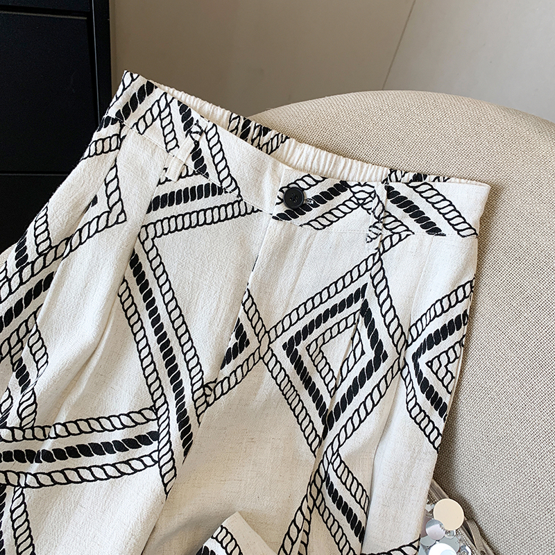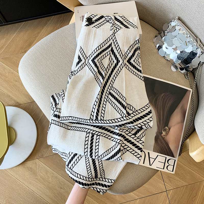 여성용 레트로 와이드 레그 팬츠 2025 신상 패턴 프린팅 슬림 캐주얼 팬츠 루즈핏 모핑 팬츠