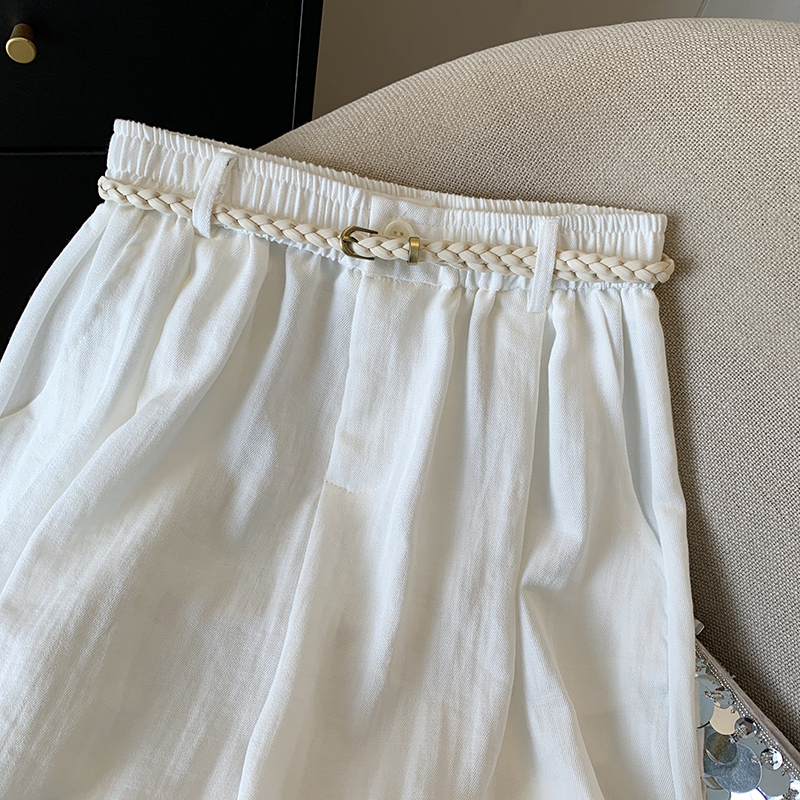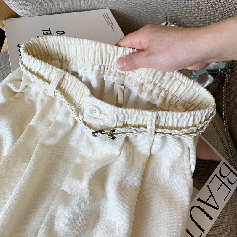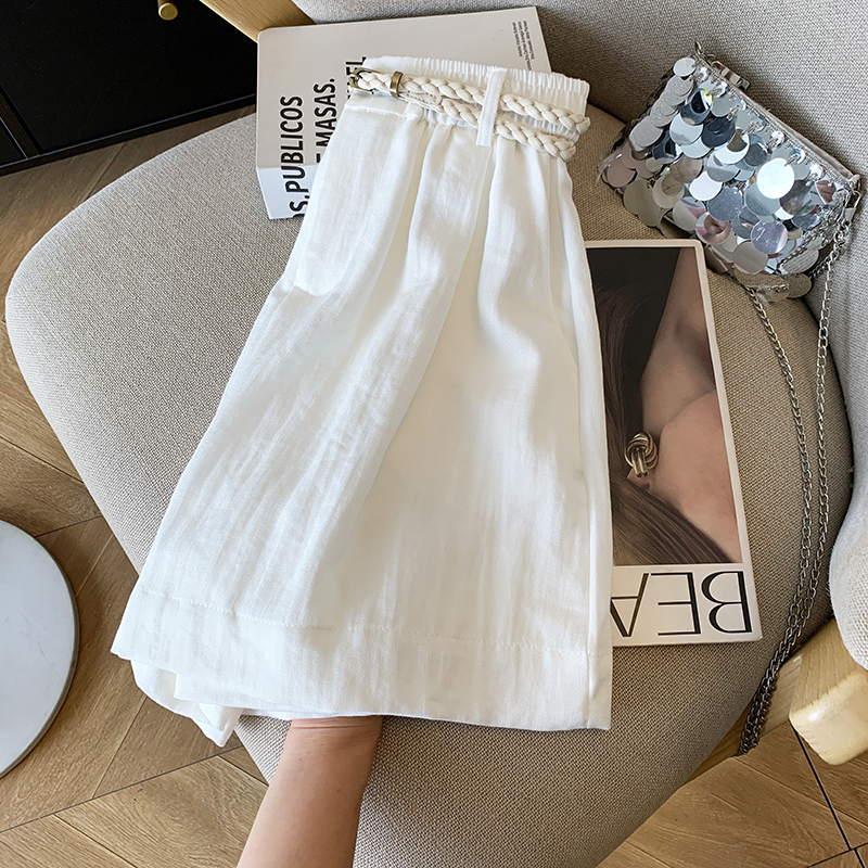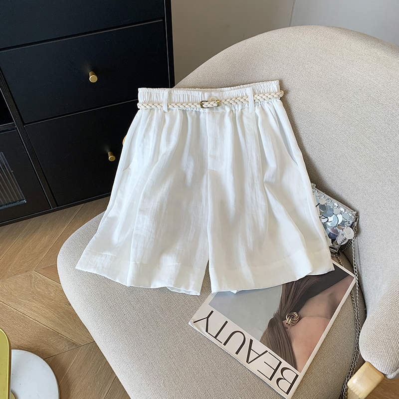 2025년 인기 유행 화이트 코튼 리넨 와이드 레그 여성 여름 하이웨이스트 슬림 A라인 캐주얼 올매치 스트레이트 팬츠