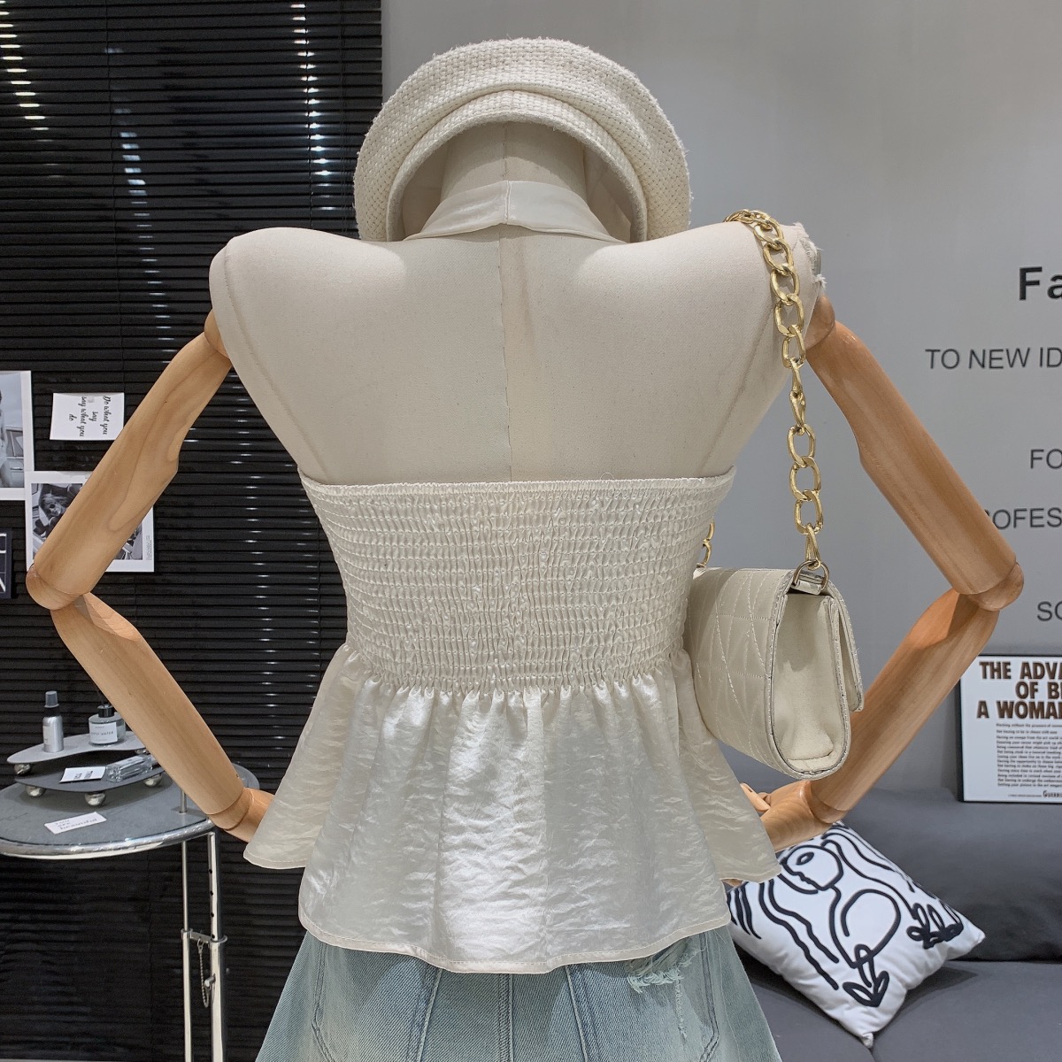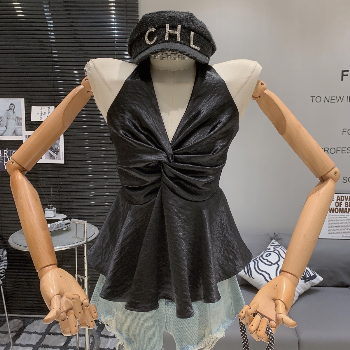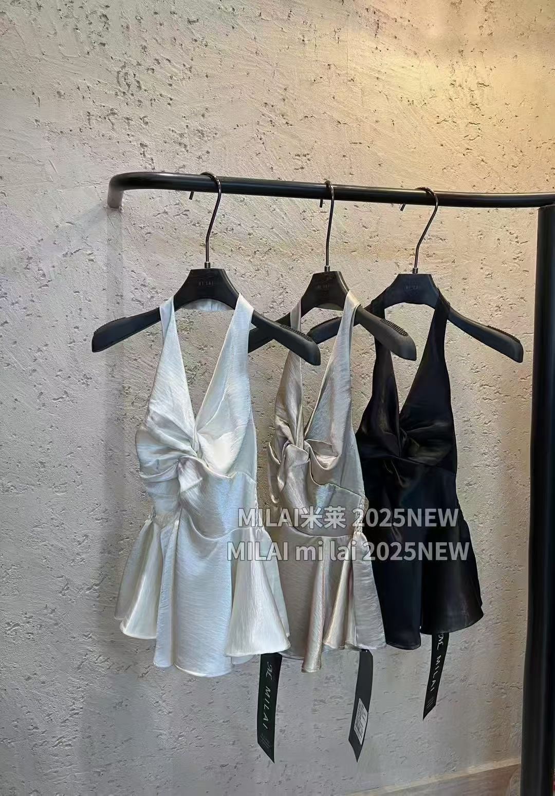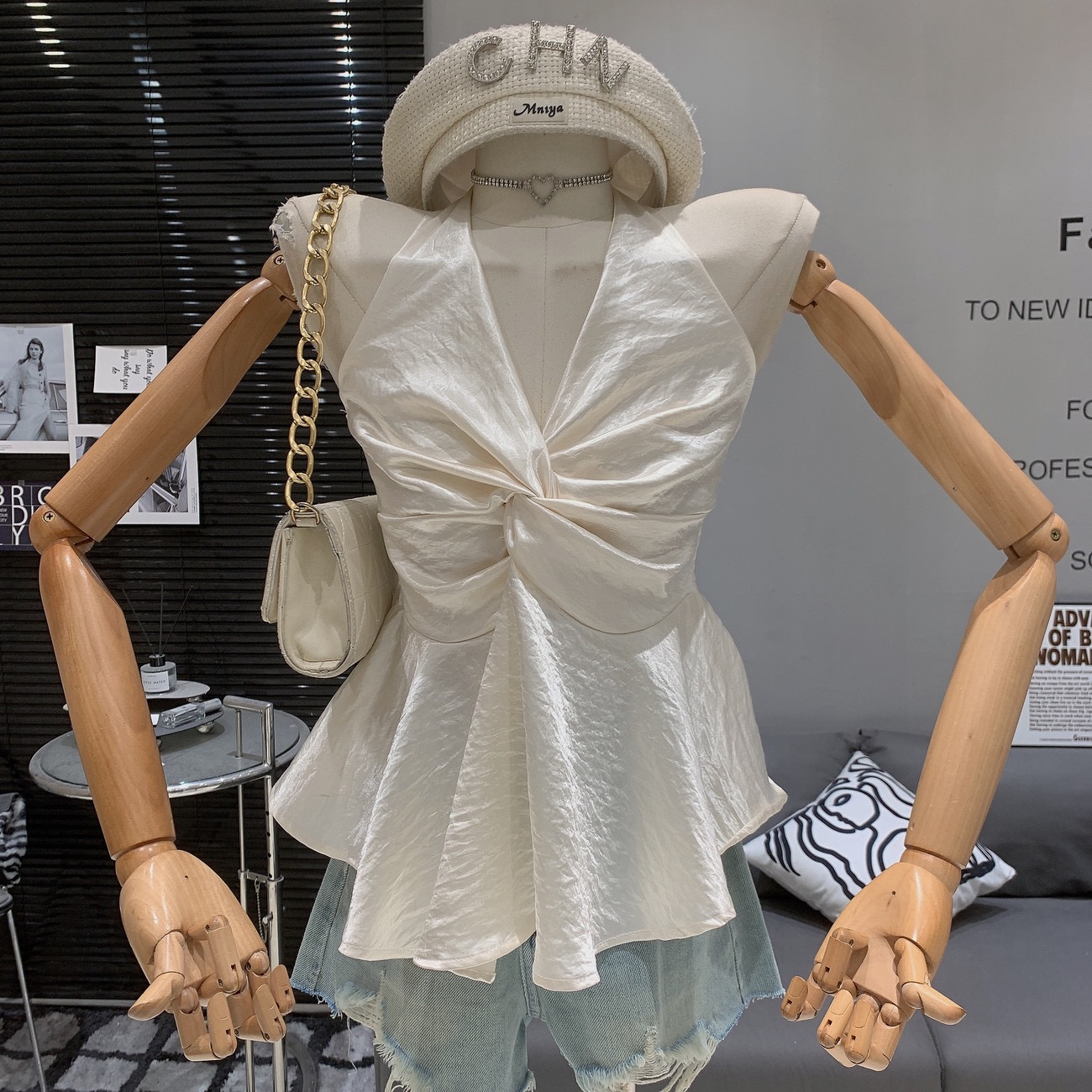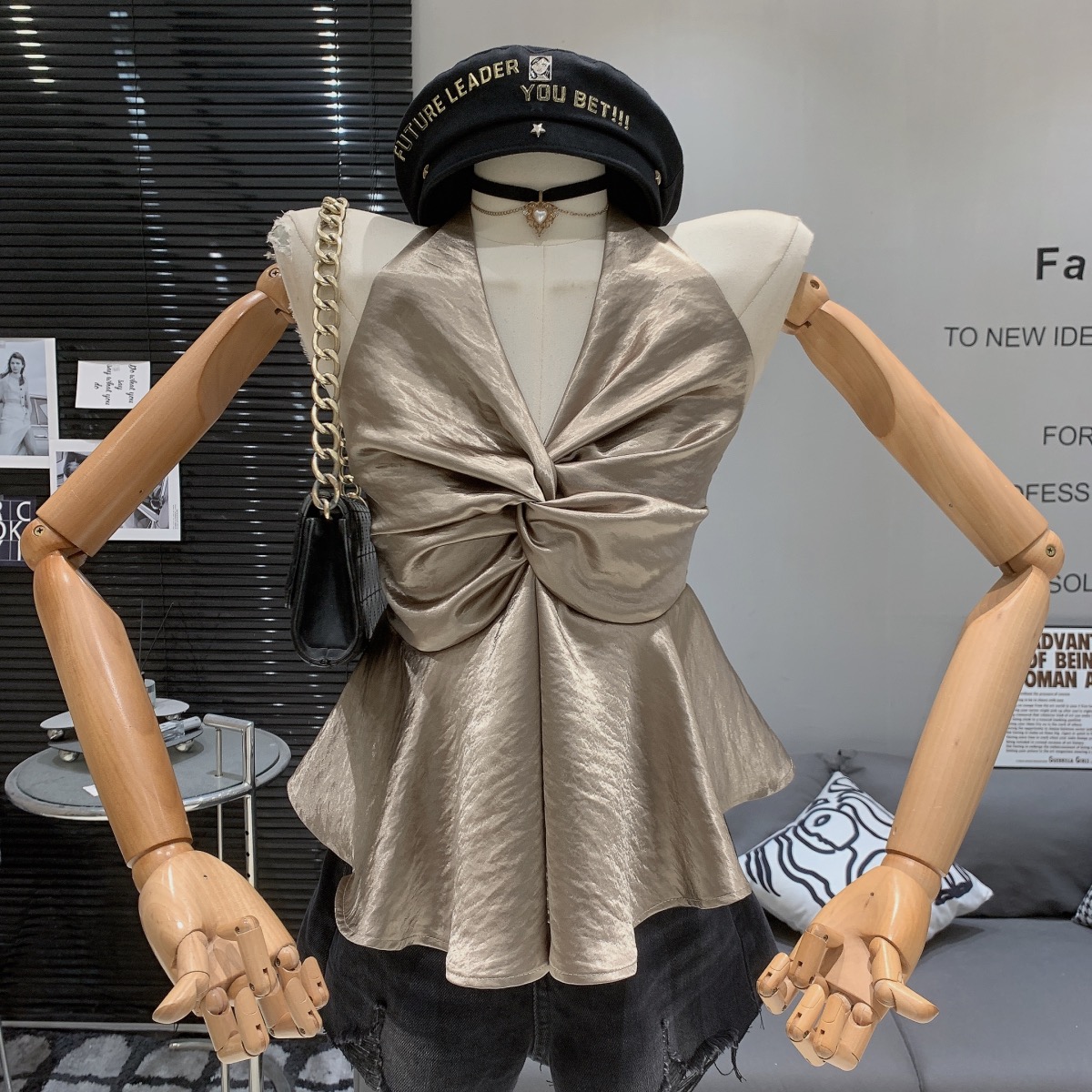 缎面挂脖吊带背心女夏季纯欲辣妹性感v领抹胸上衣泰式独特娃娃衫