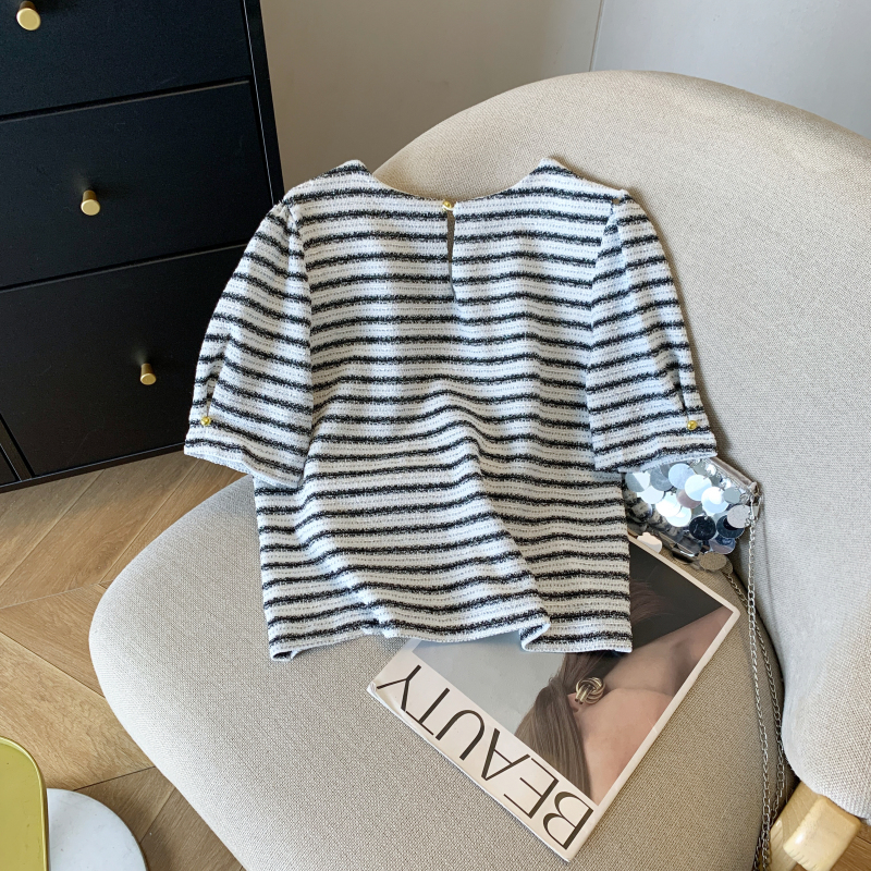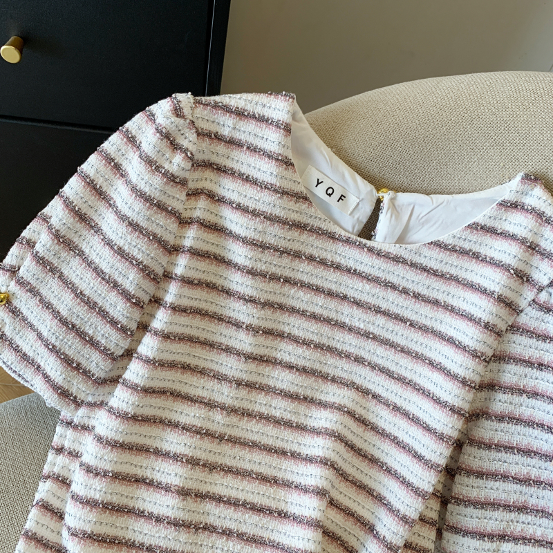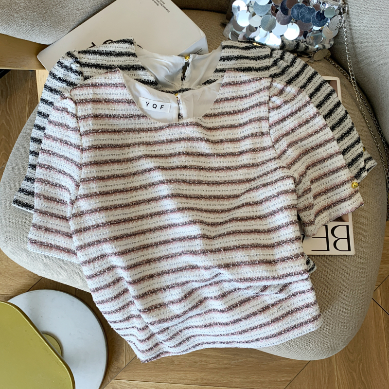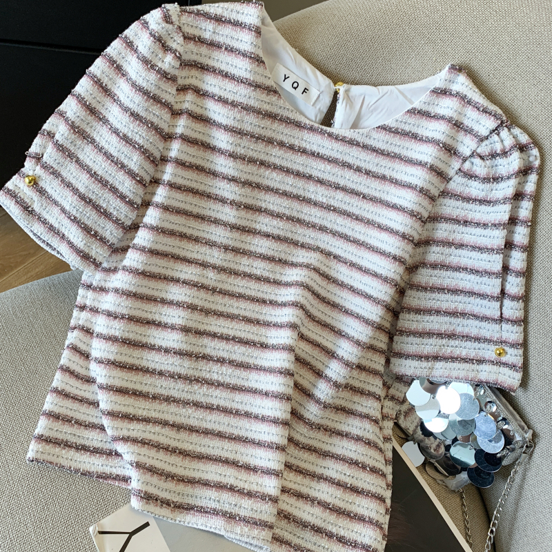 실제 촬영 스팟 2025 여름 신상품 디자인 스몰 프레그런스 스타일 니치 쉬폰 반팔 탑 셔츠 여성
