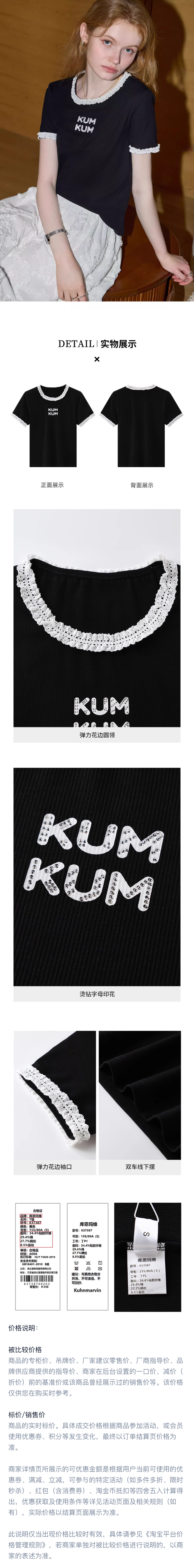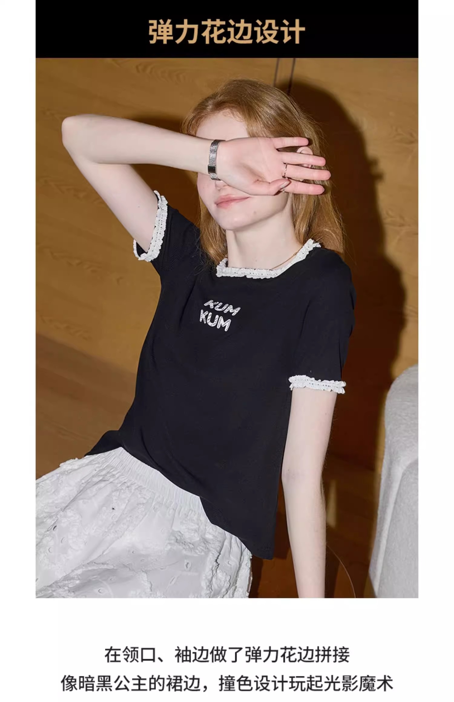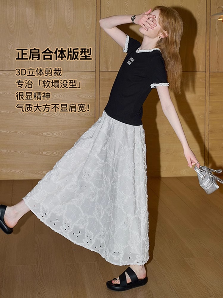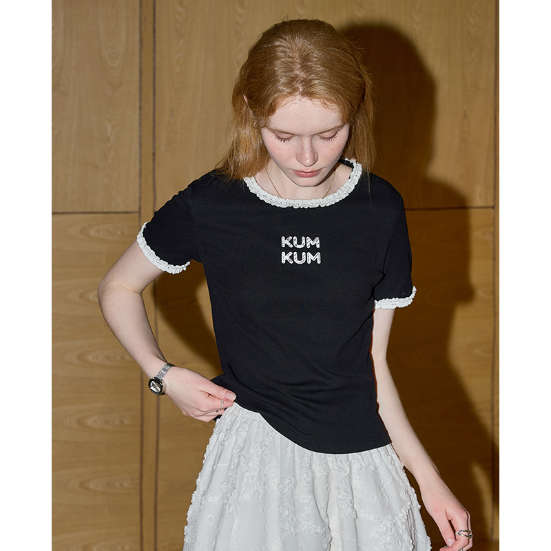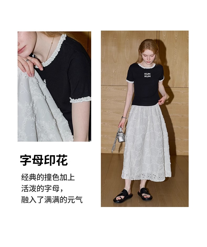 비실사 샷 달콤하고 매콤한 소녀 스타일 레이스 스플라이싱 반팔 티셔츠 여성 2025 여름 신상품 슬림 숏 탑