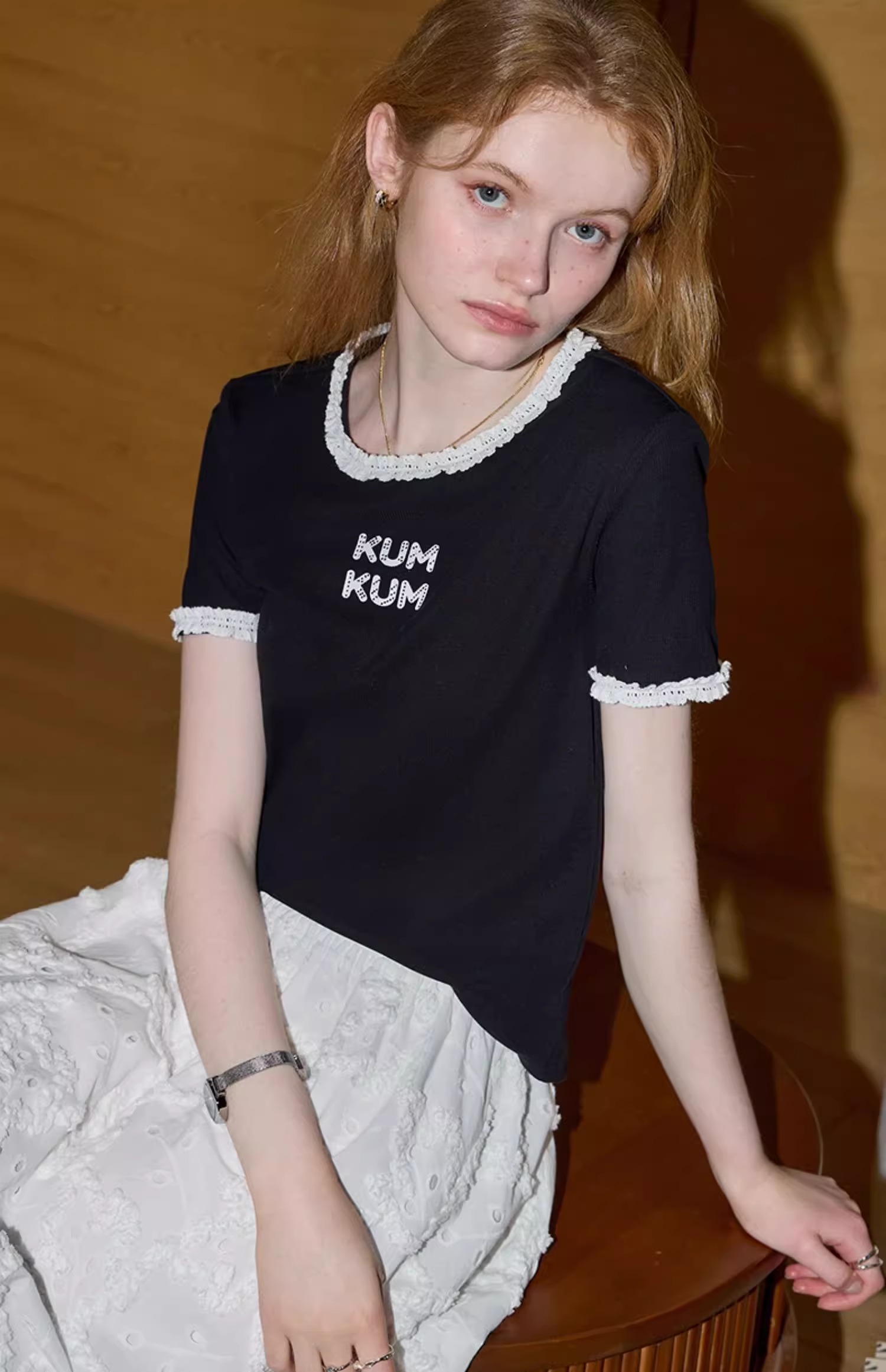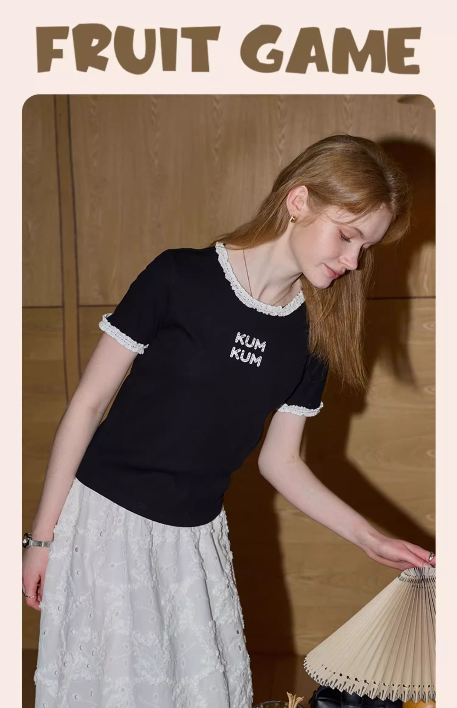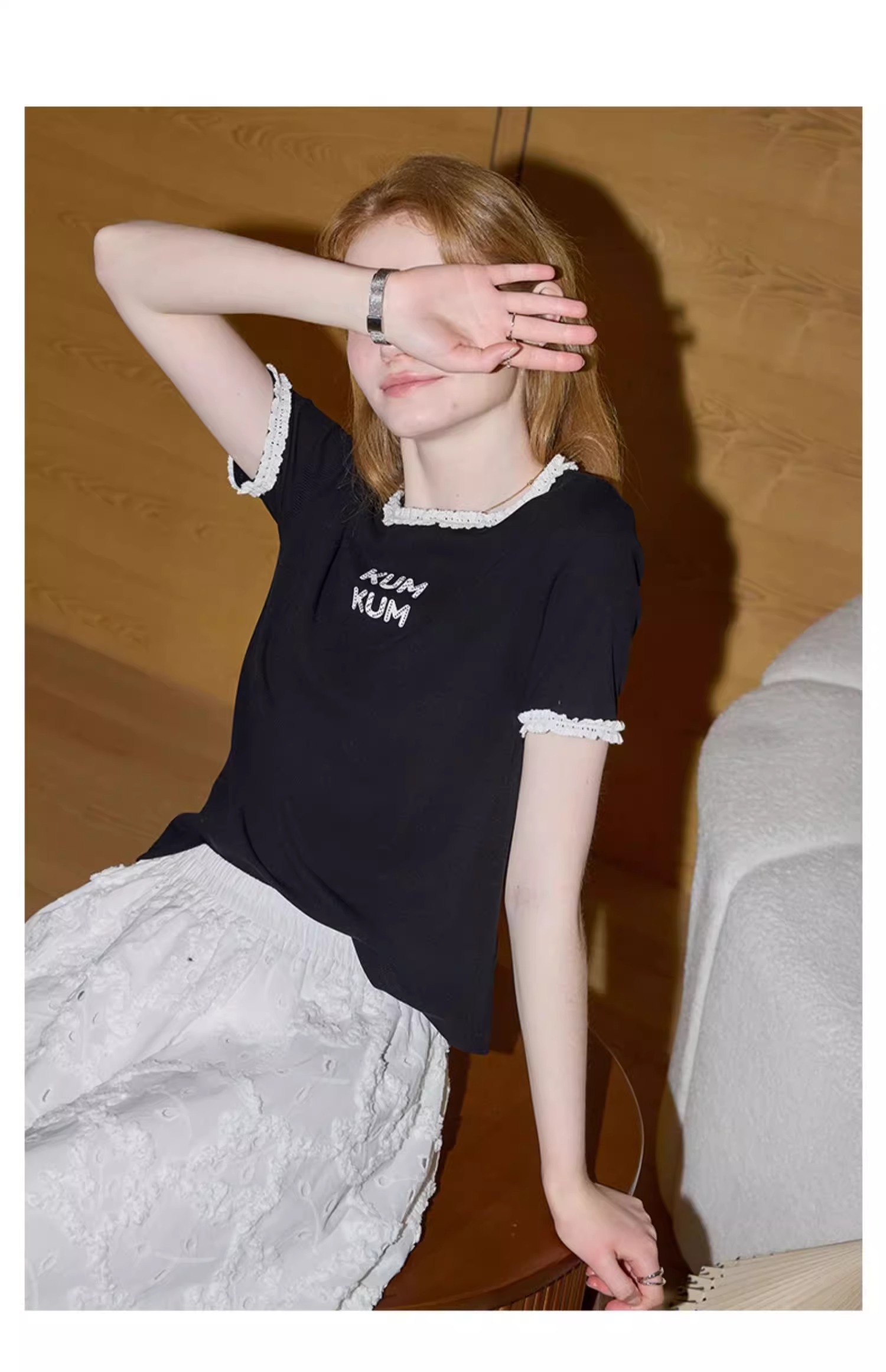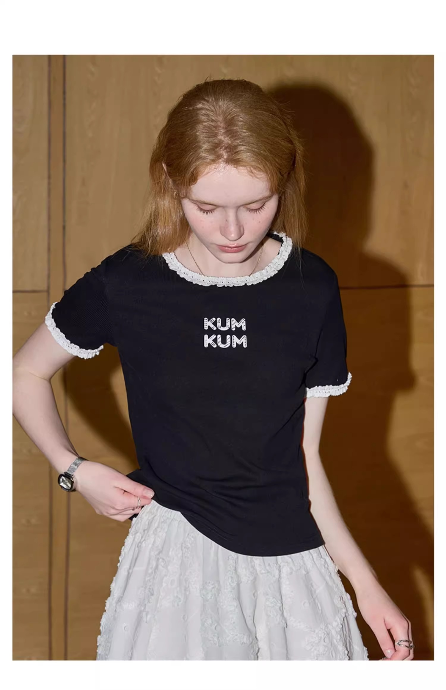비실사 샷 달콤하고 매콤한 소녀 스타일 레이스 스플라이싱 반팔 티셔츠 여성 2025 여름 신상품 슬림 숏 탑