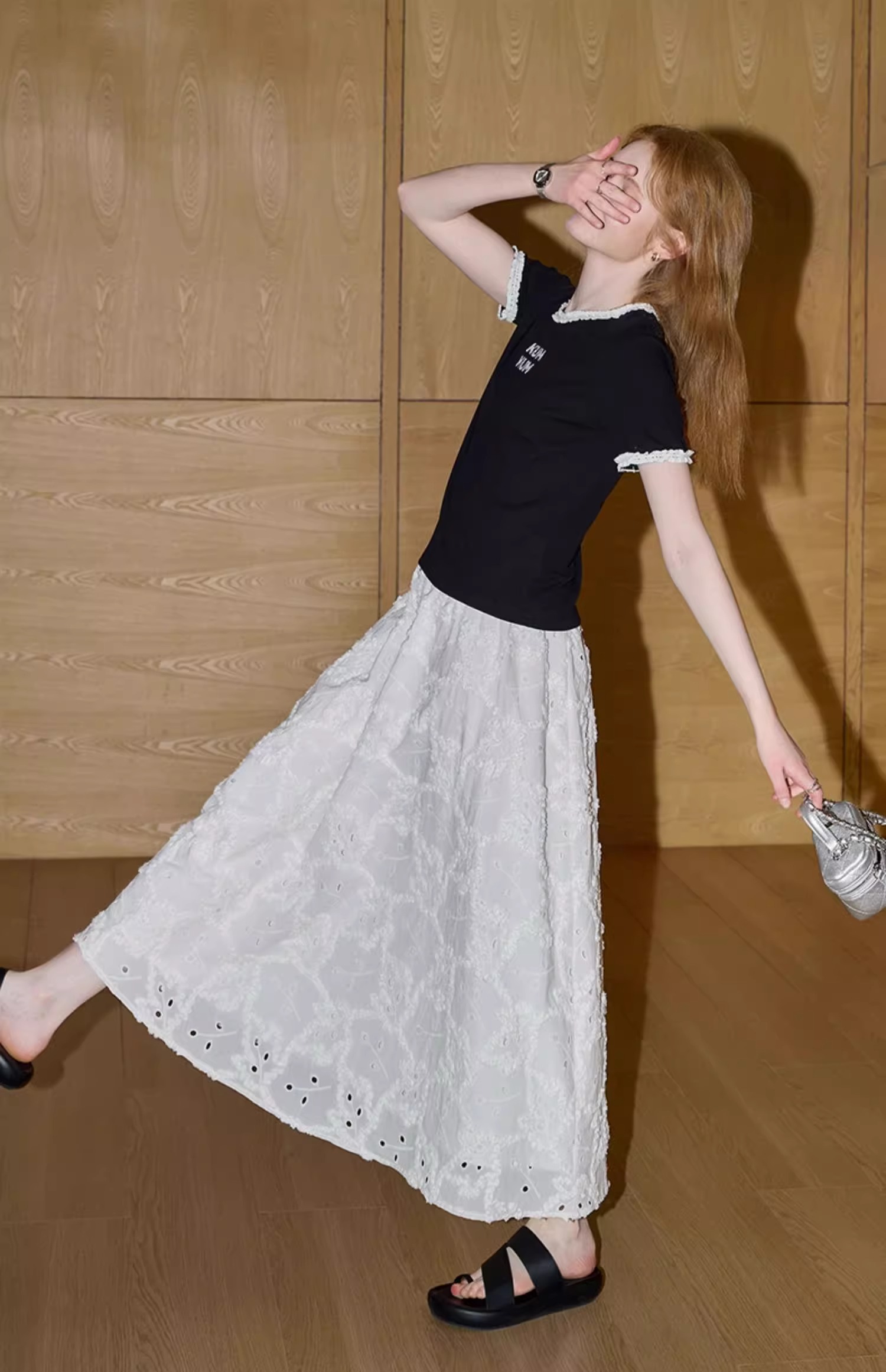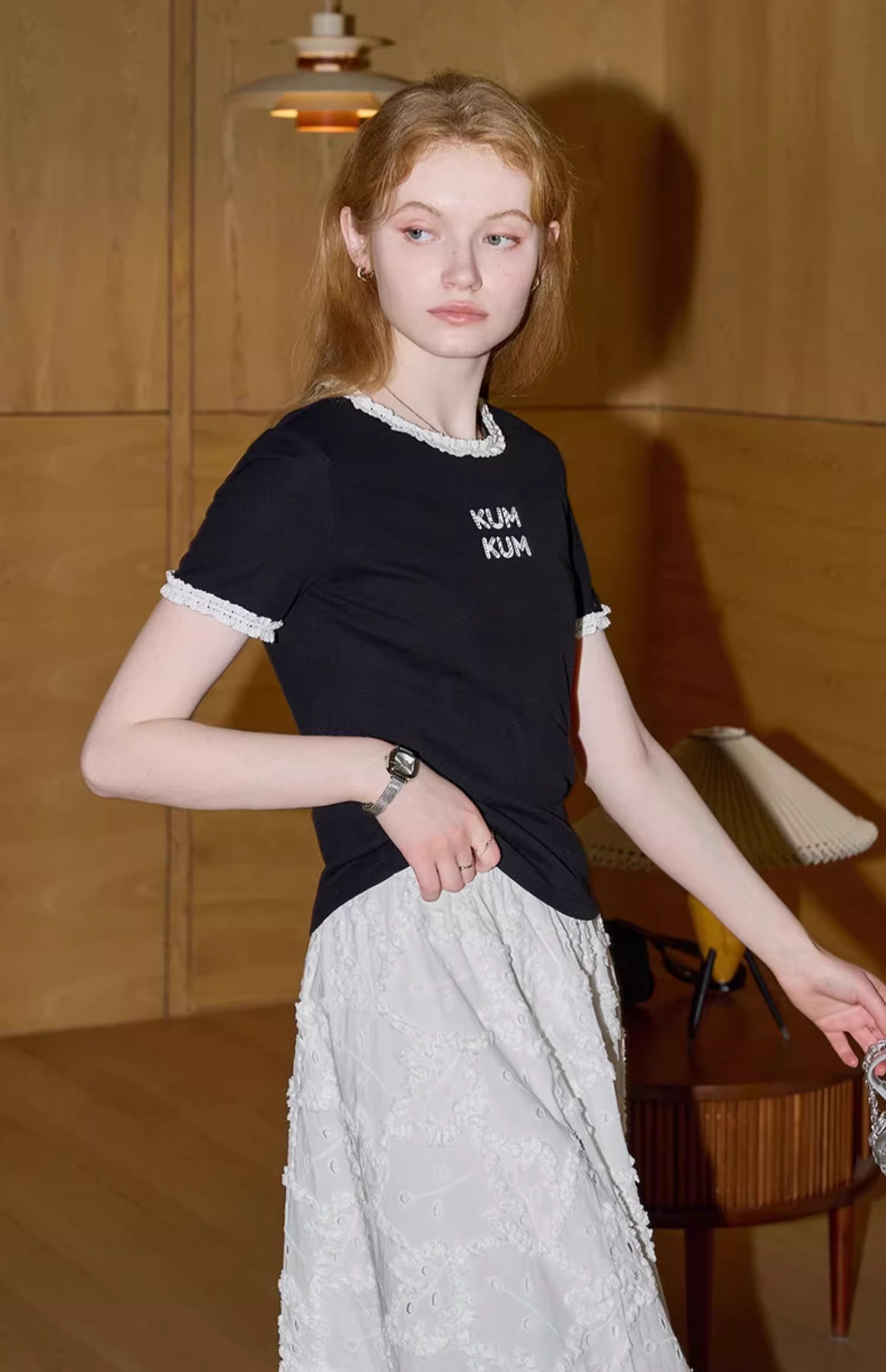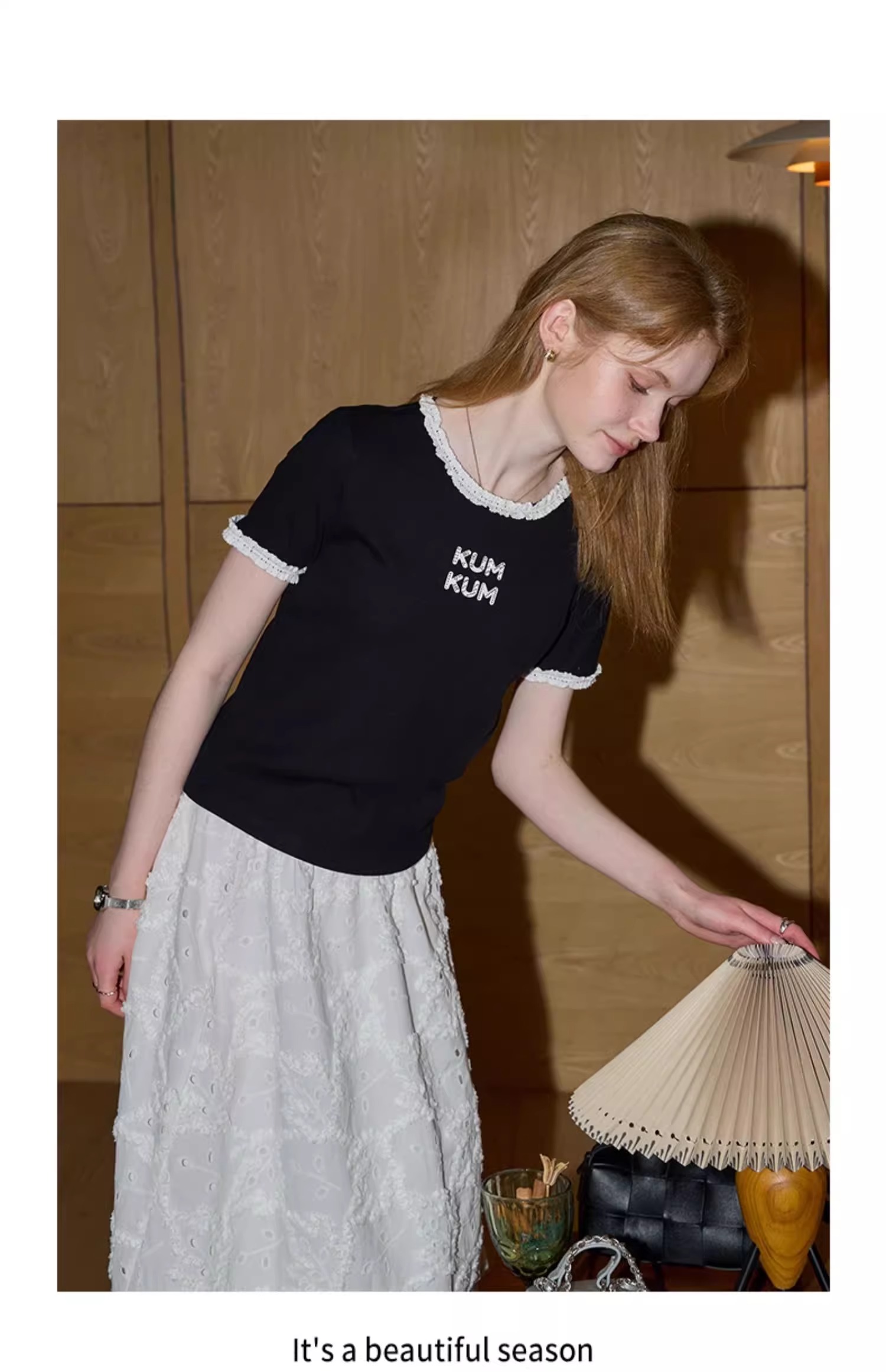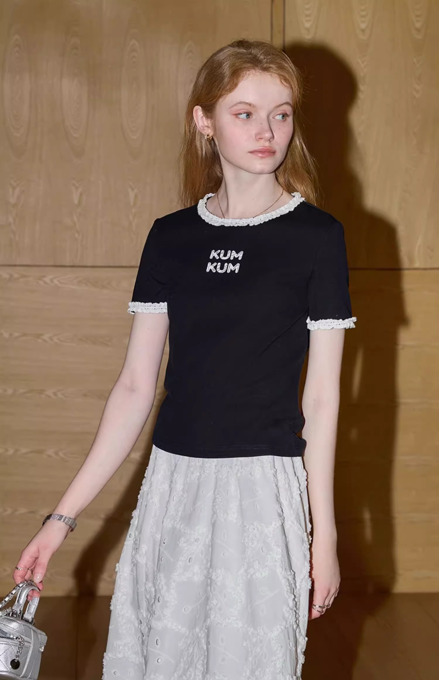 비실사 샷 달콤하고 매콤한 소녀 스타일 레이스 스플라이싱 반팔 티셔츠 여성 2025 여름 신상품 슬림 숏 탑