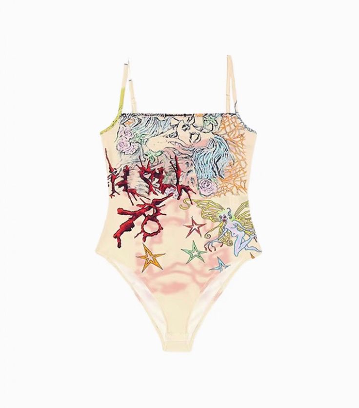 小众独特印花吊带修身辣妹连体衣25夏季新款