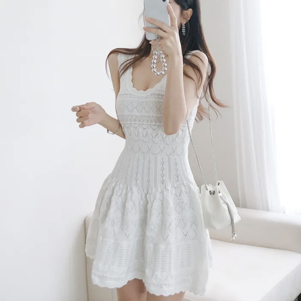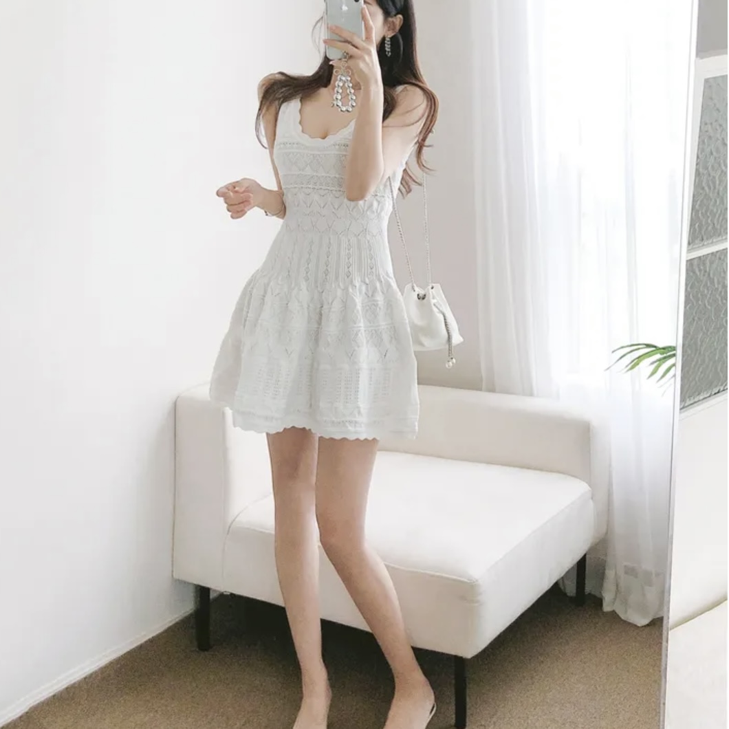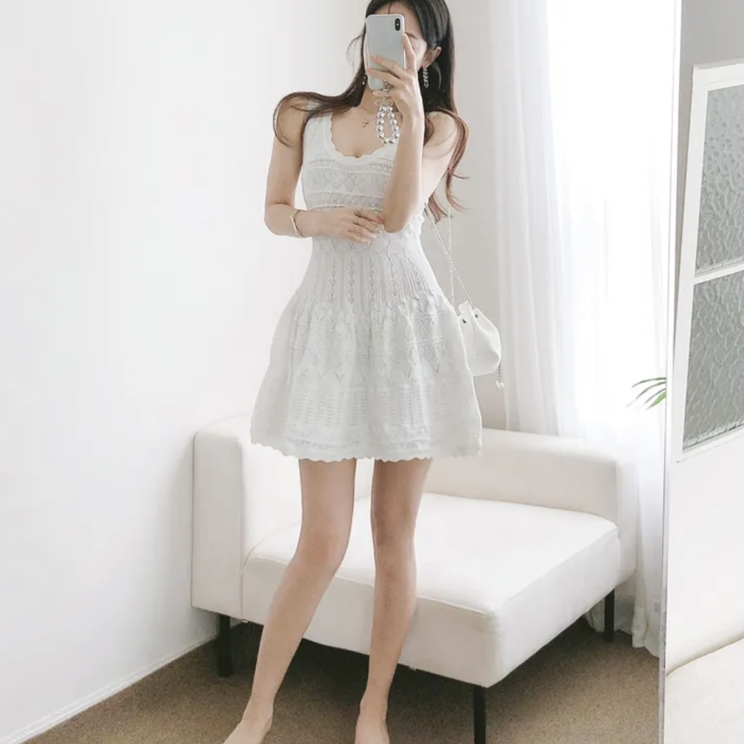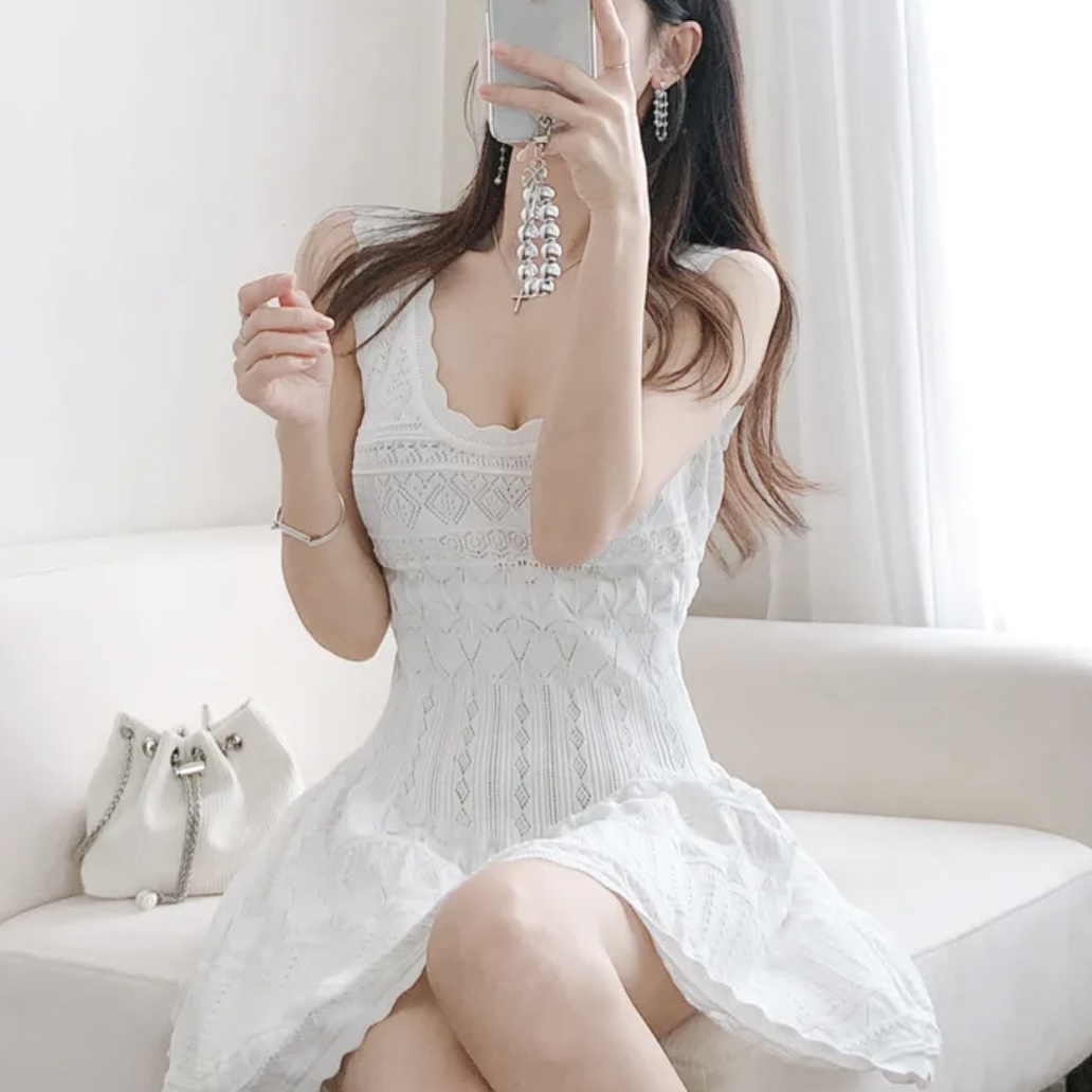 韩国chic镂空针织吊带背心连衣裙小个子收腰显瘦无袖短裙子
