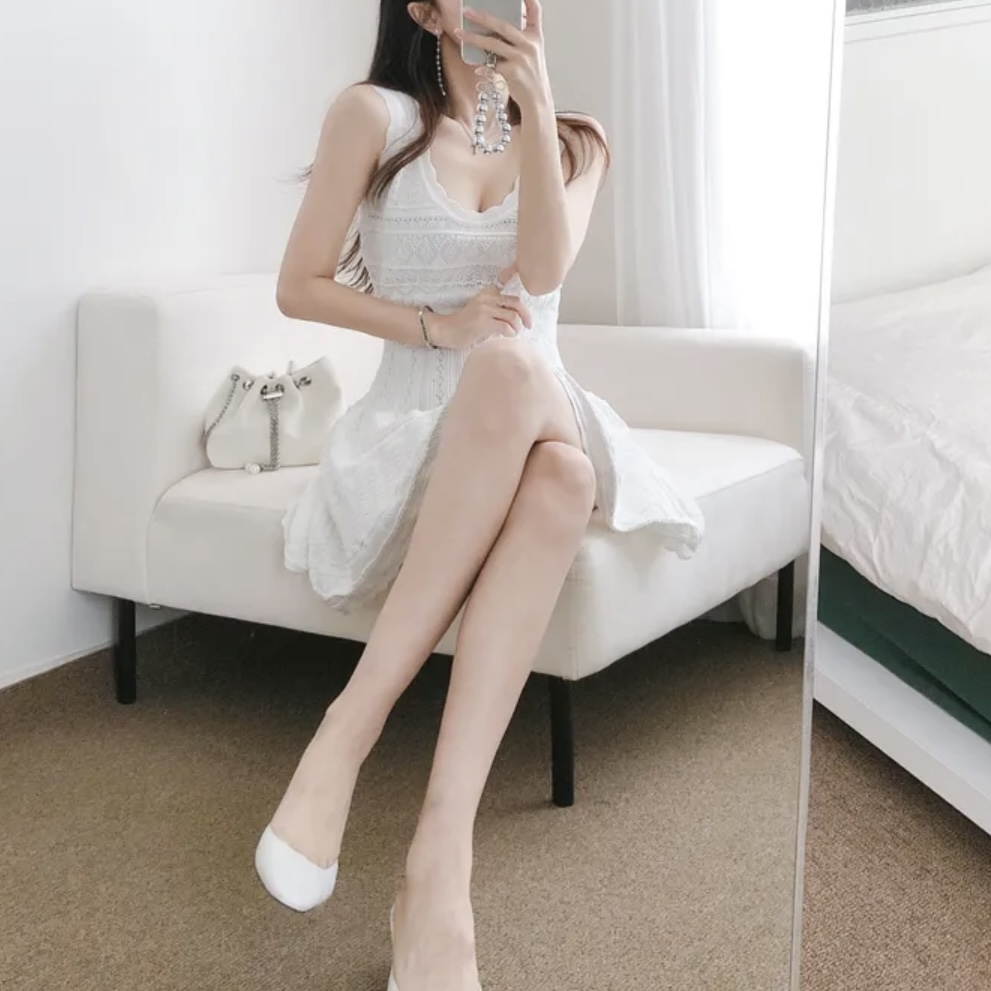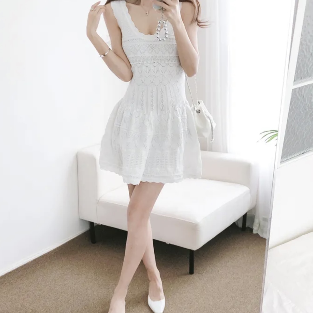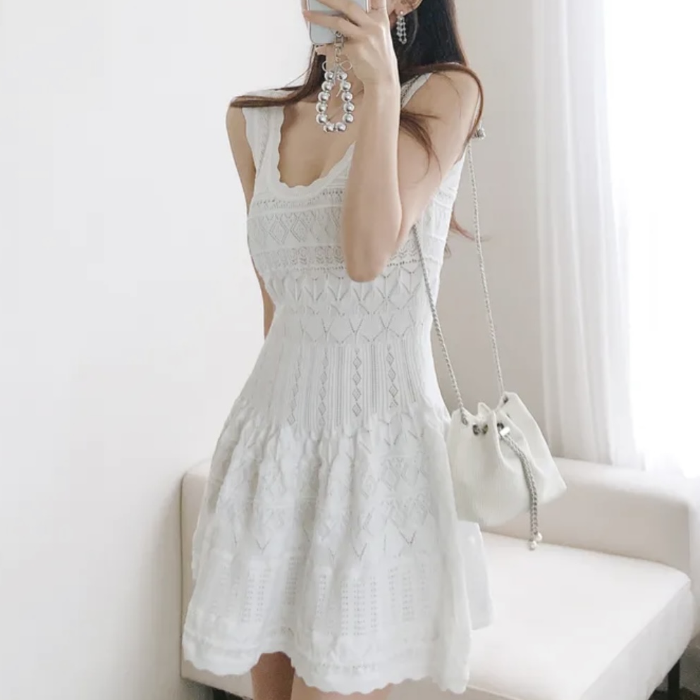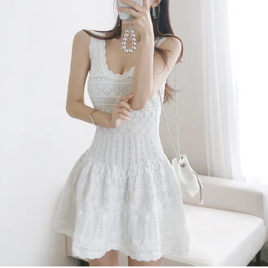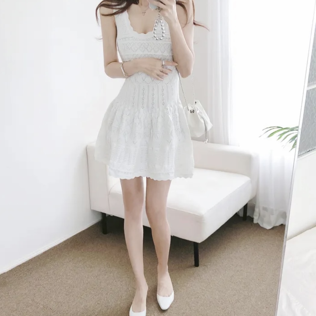 韩国chic镂空针织吊带背心连衣裙小个子收腰显瘦无袖短裙子