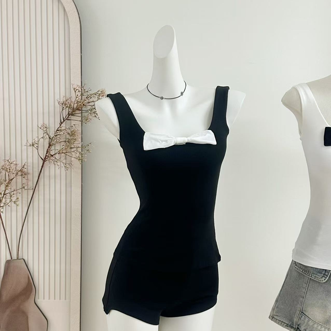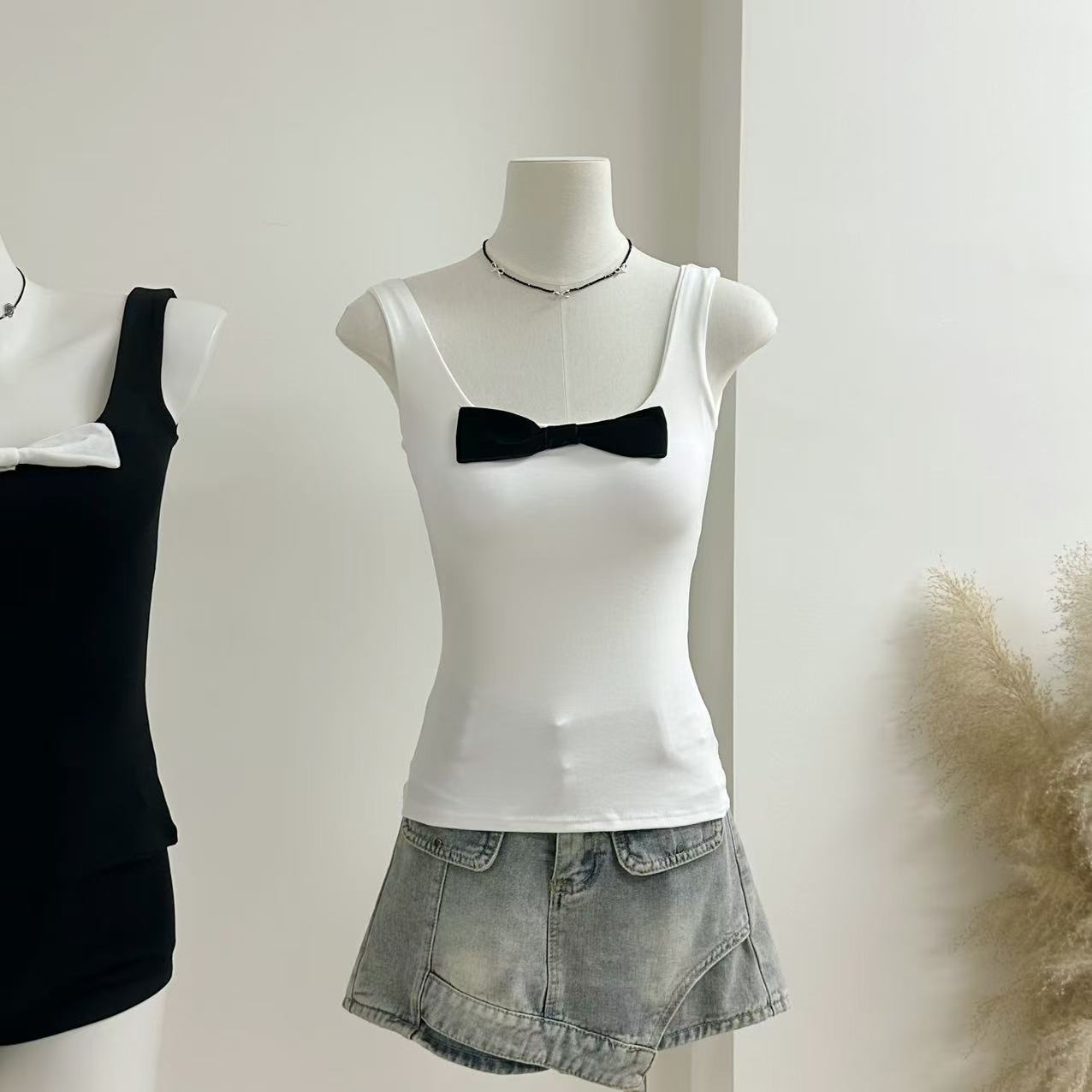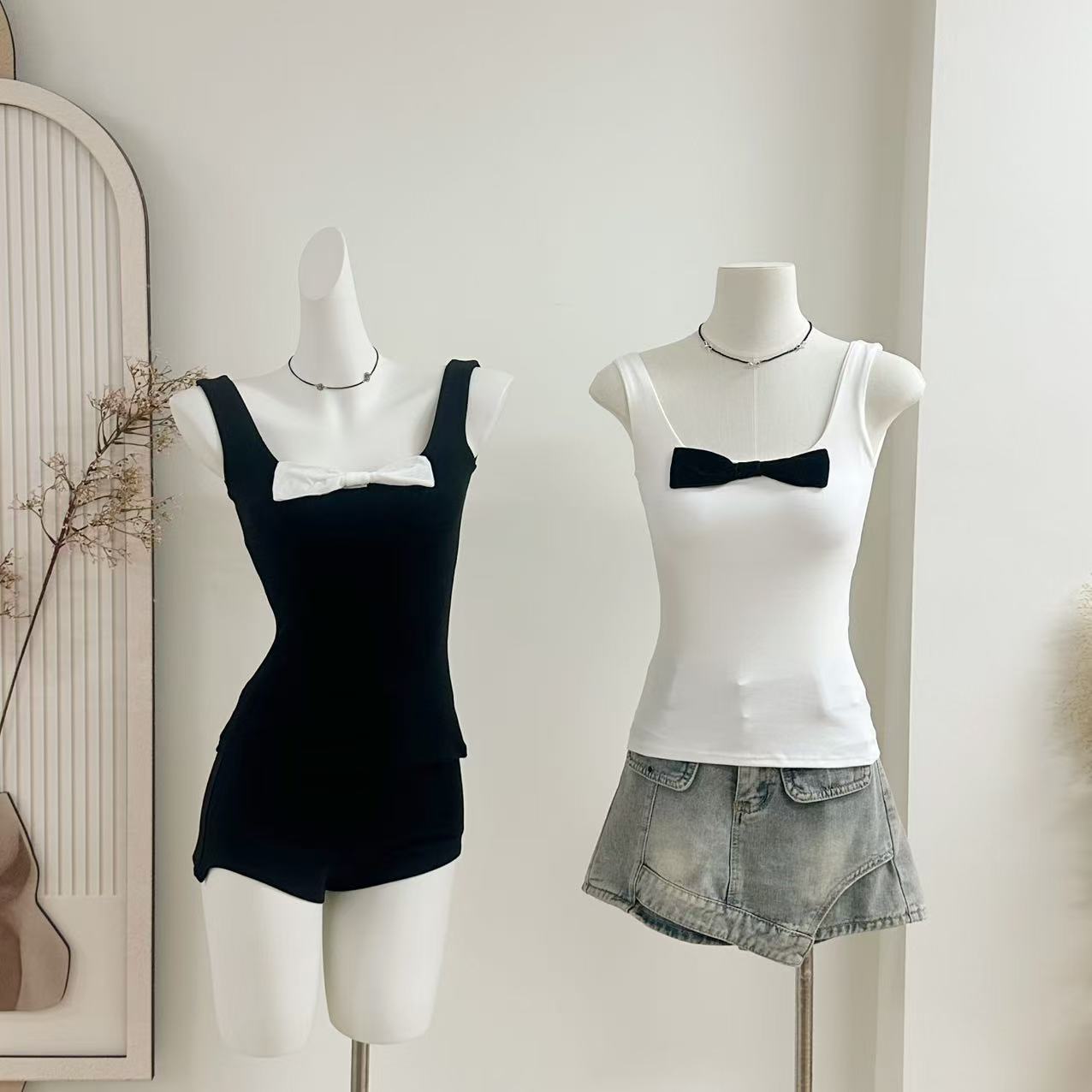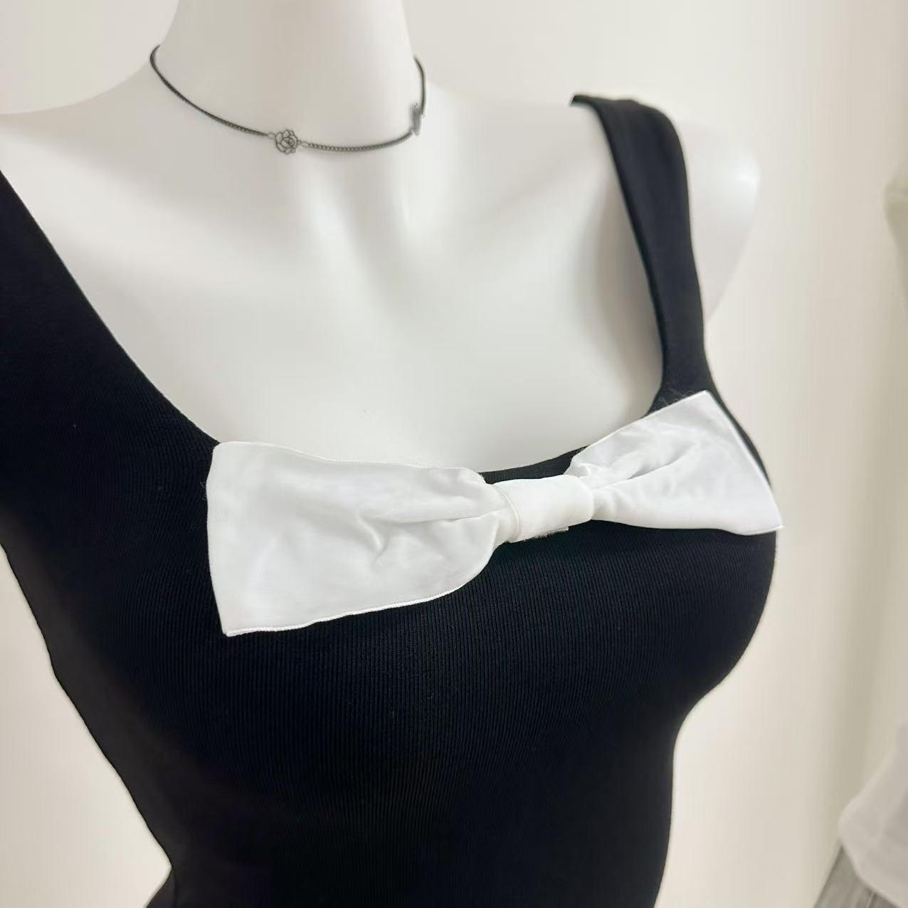 Bankelili Cocoa 6.27/20:00 '나비 소녀' 여성용 신축성 슬림핏 리본 베스트 탑