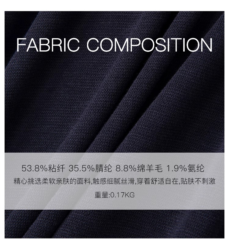 粘胶纤维(粘纤)/粘胶42.3%;棉26.5%;腈纶26.3%;氨纶/莱卡4.9%
