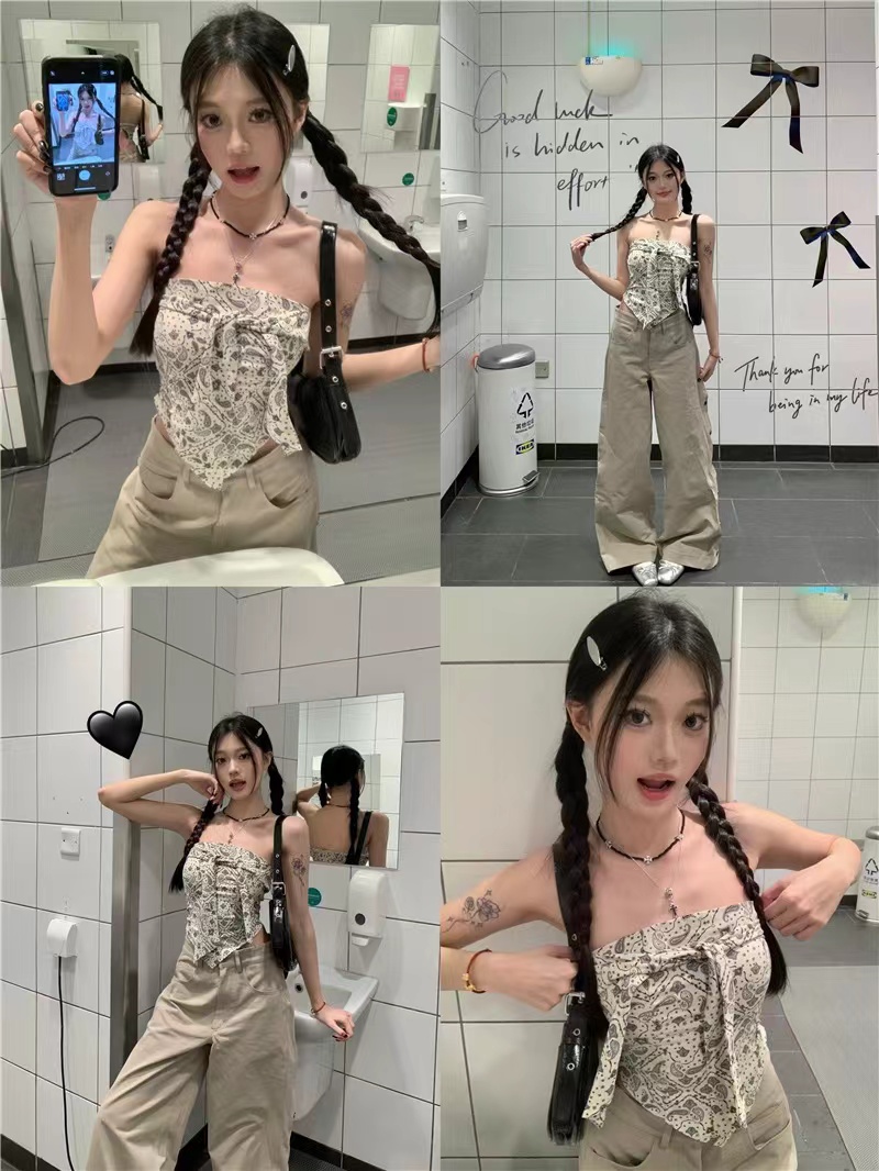 实拍实价 夏季复古法式性感显瘦百搭设计感辣妹外穿抹胸