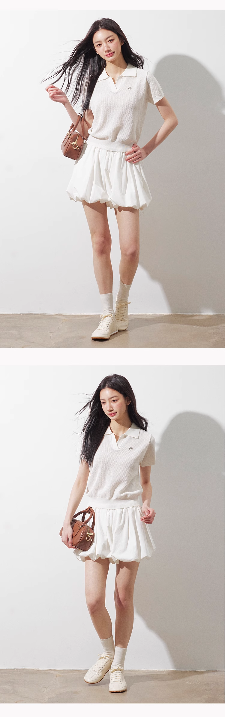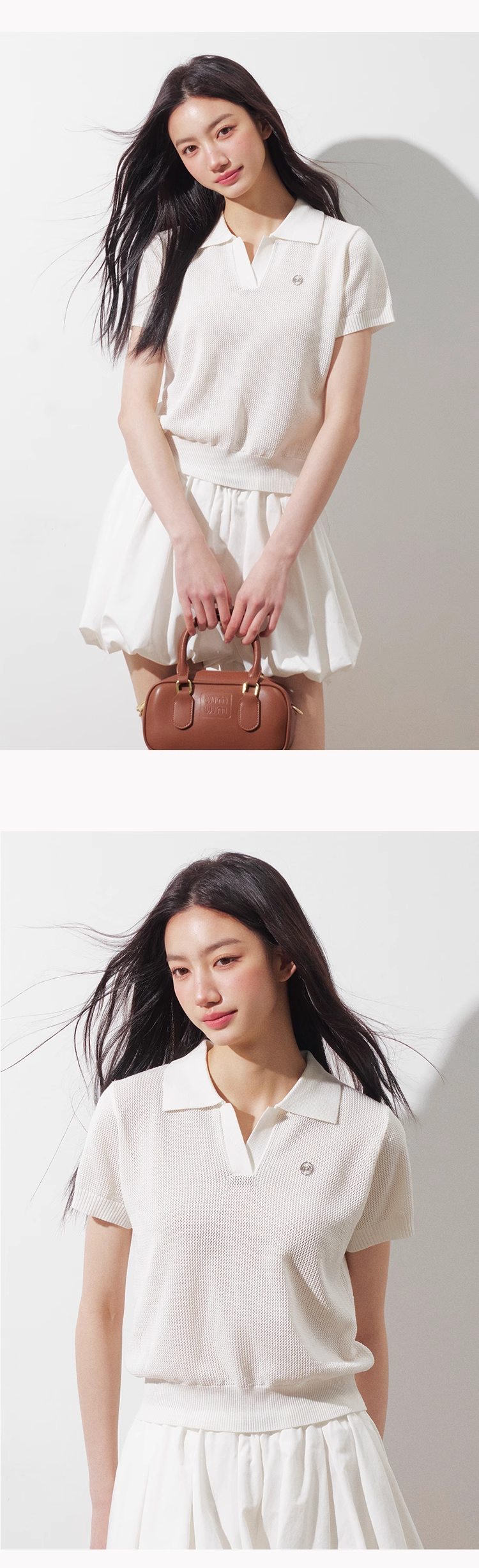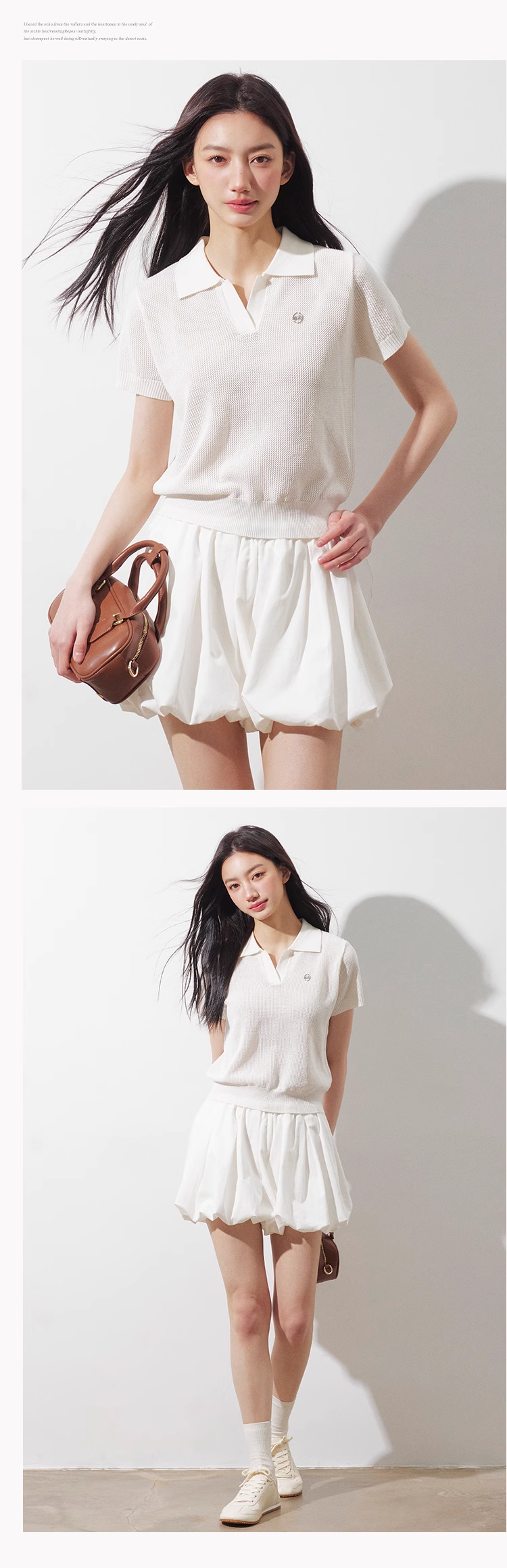RPB BRAND网眼透气显瘦纯色简约百搭翻领短袖针织衫女上衣打底衫