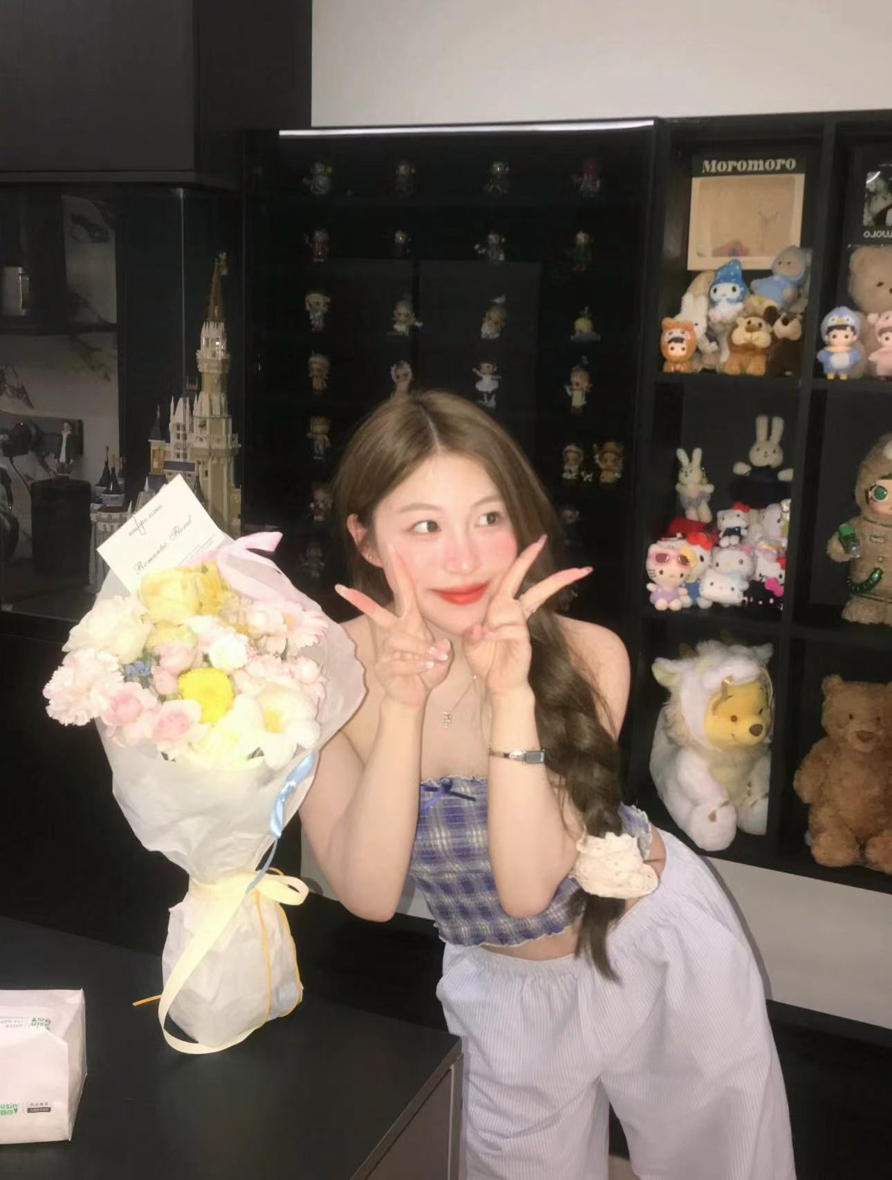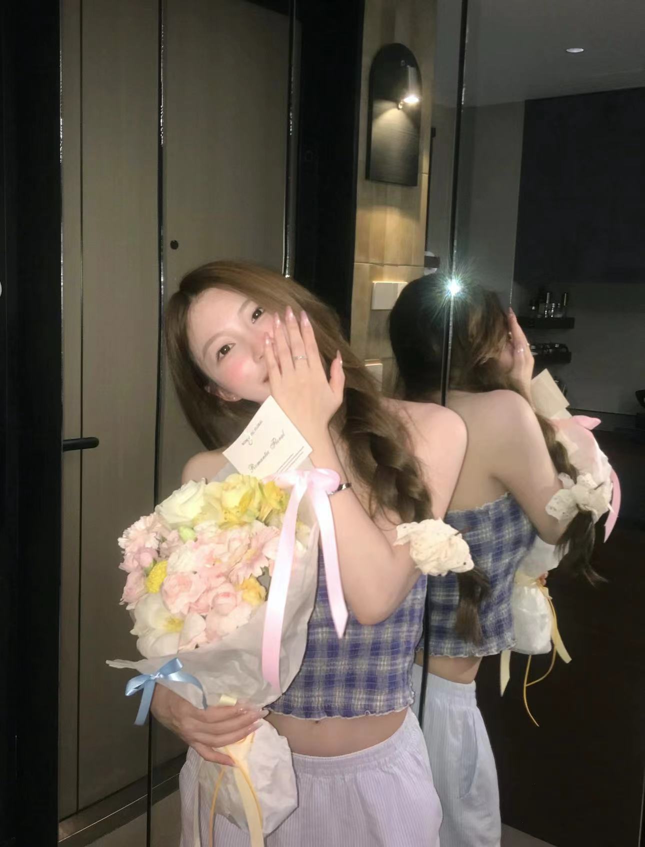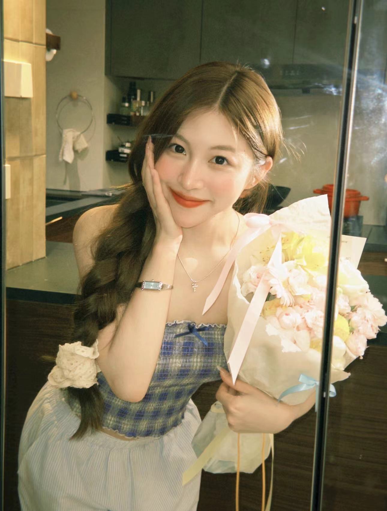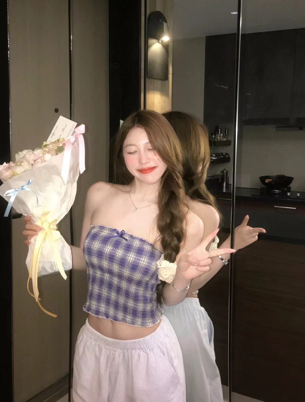 实拍实价 甜辣蓝色格子上衣可爱减龄蝴蝶结修身显瘦辣妹内搭抹胸