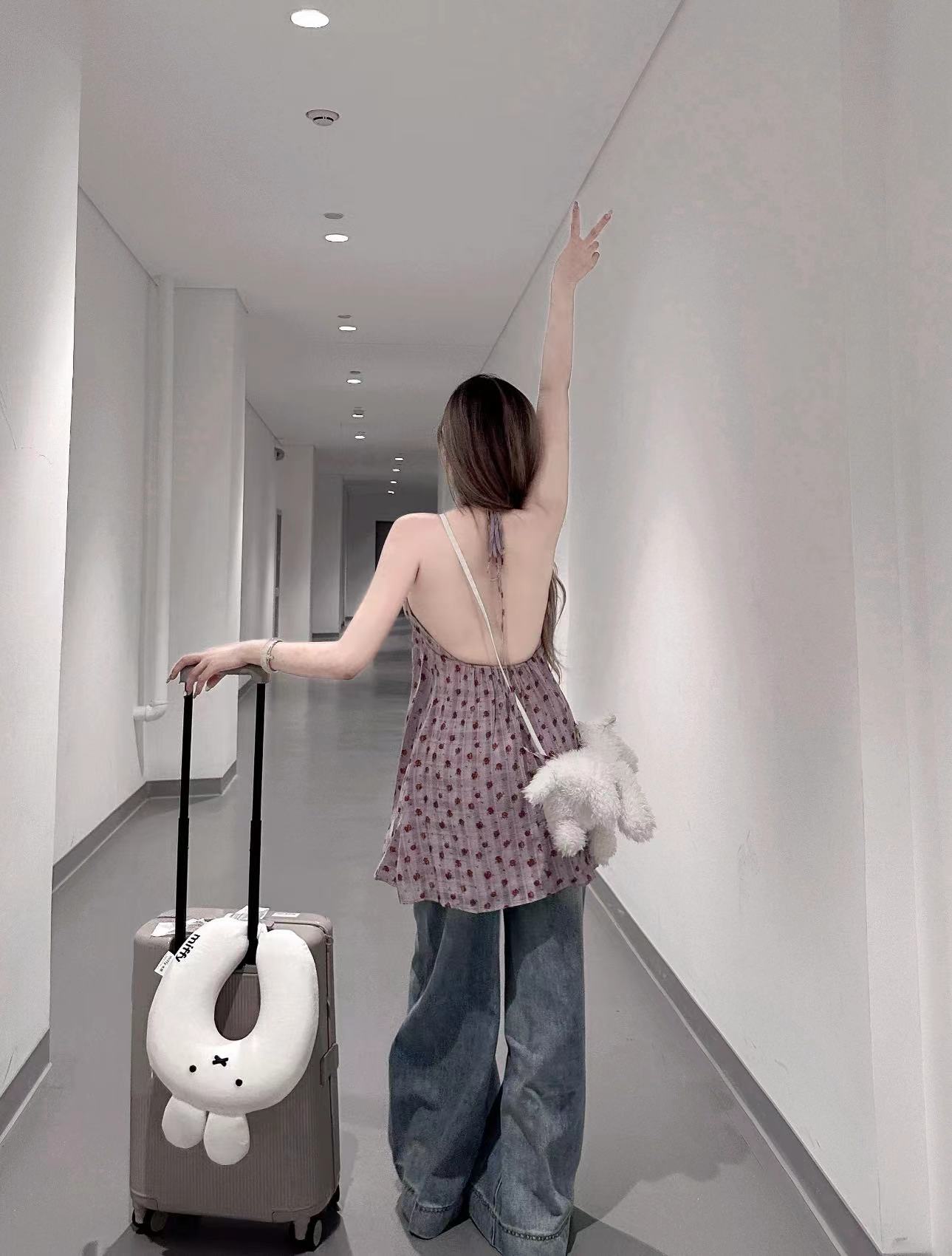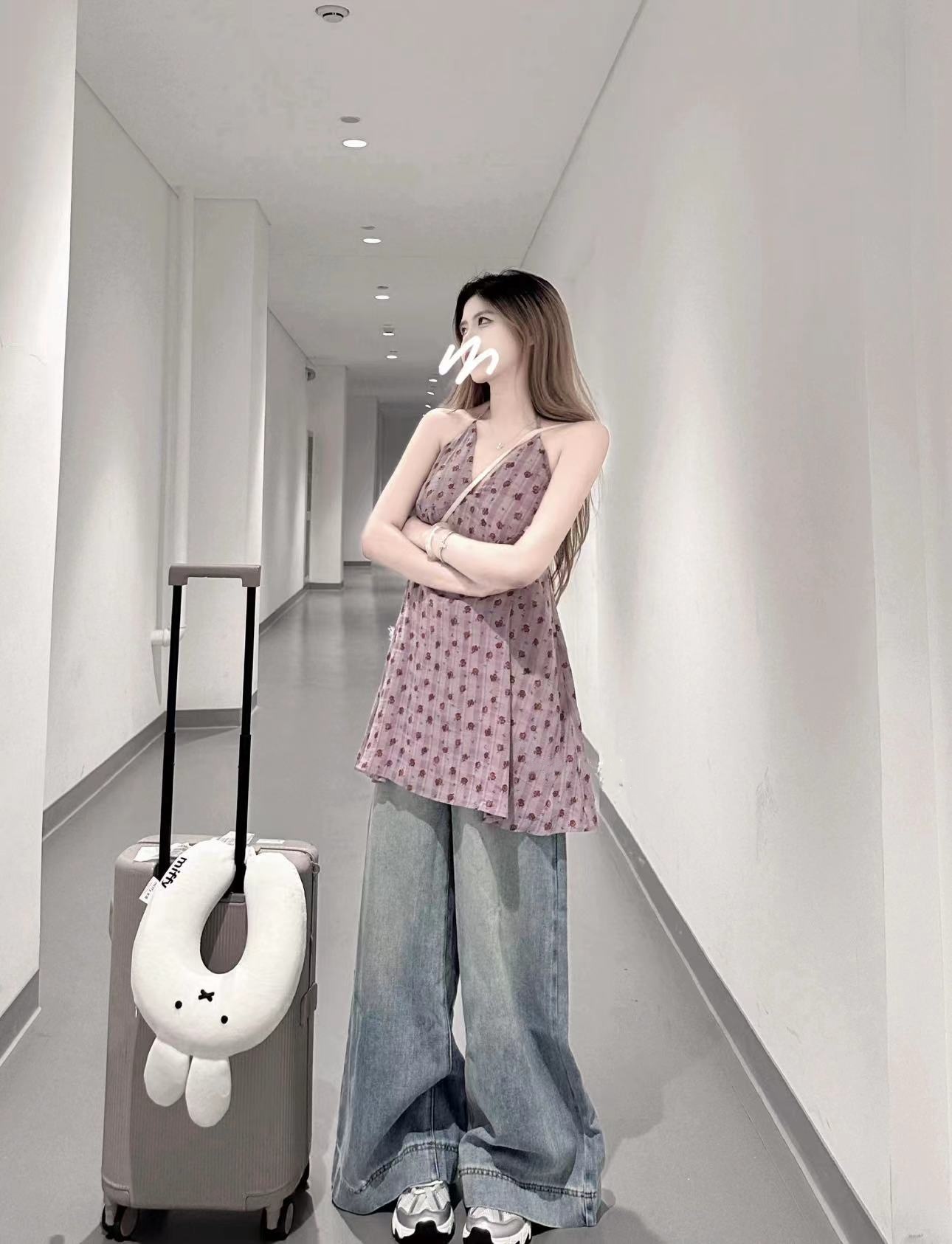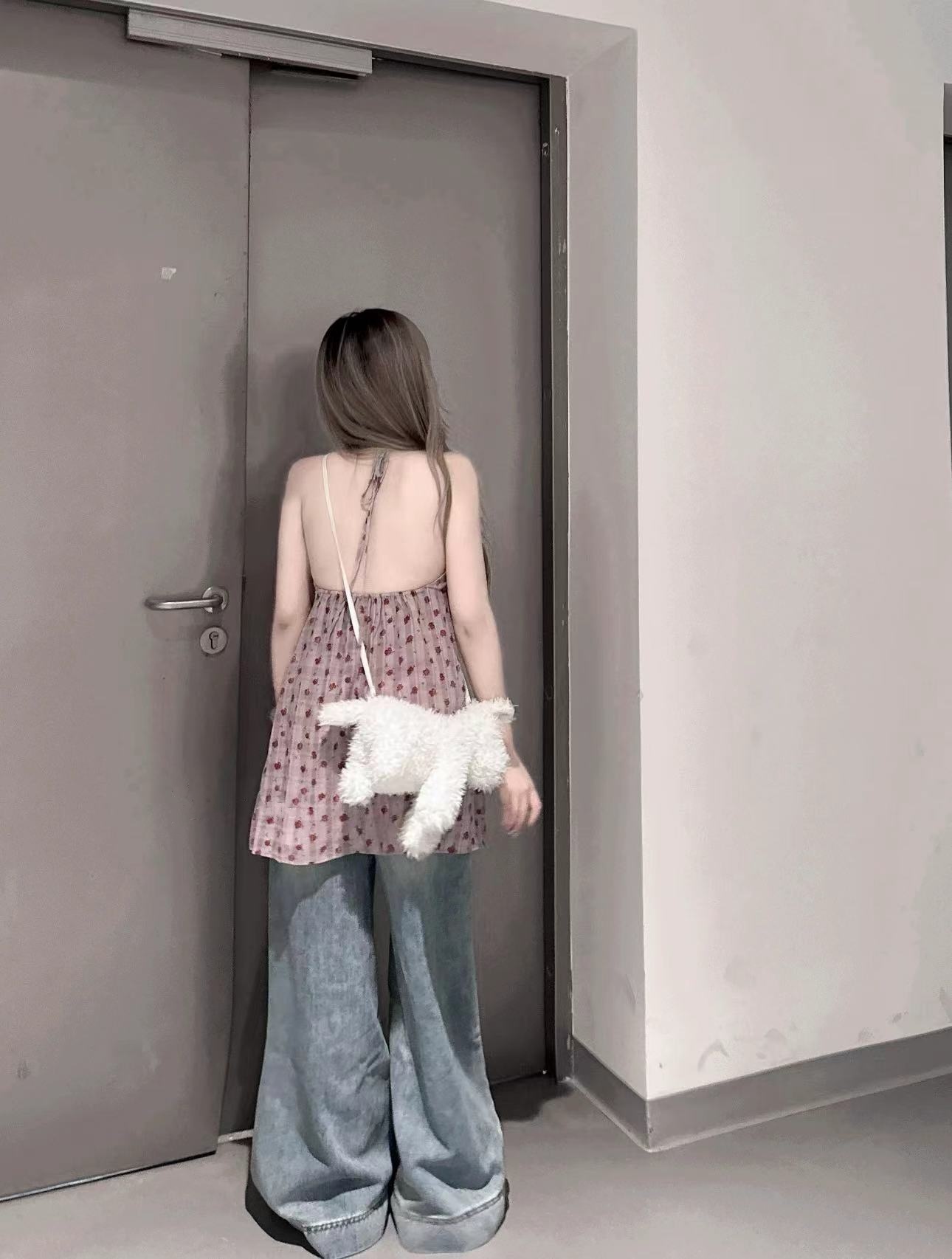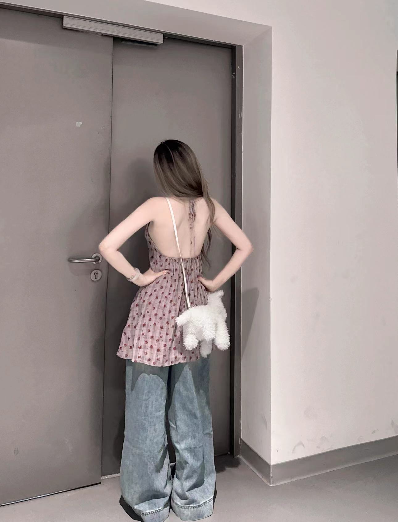 实拍实价 紫色碎花无袖背心上衣中长款连衣裙女