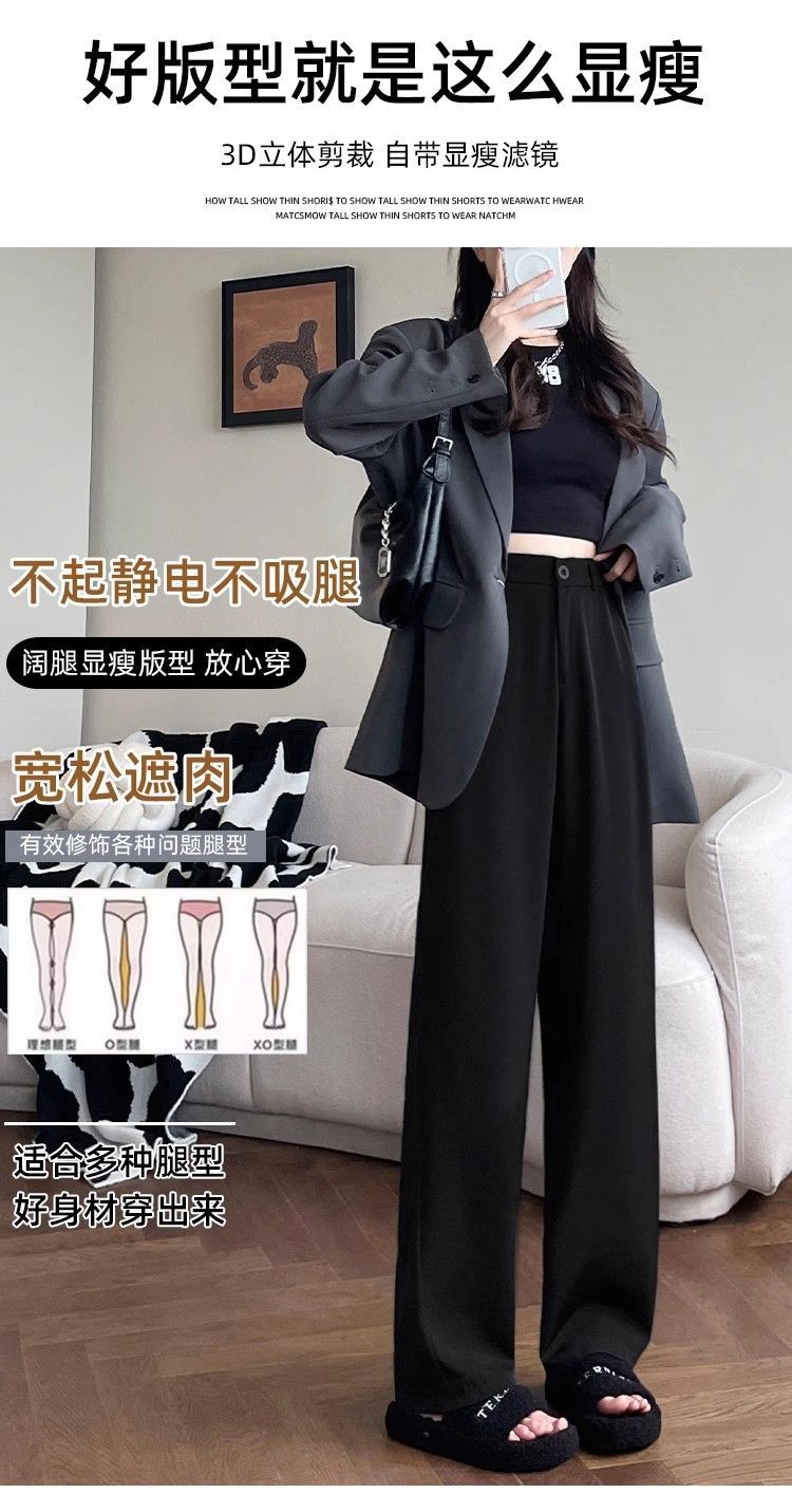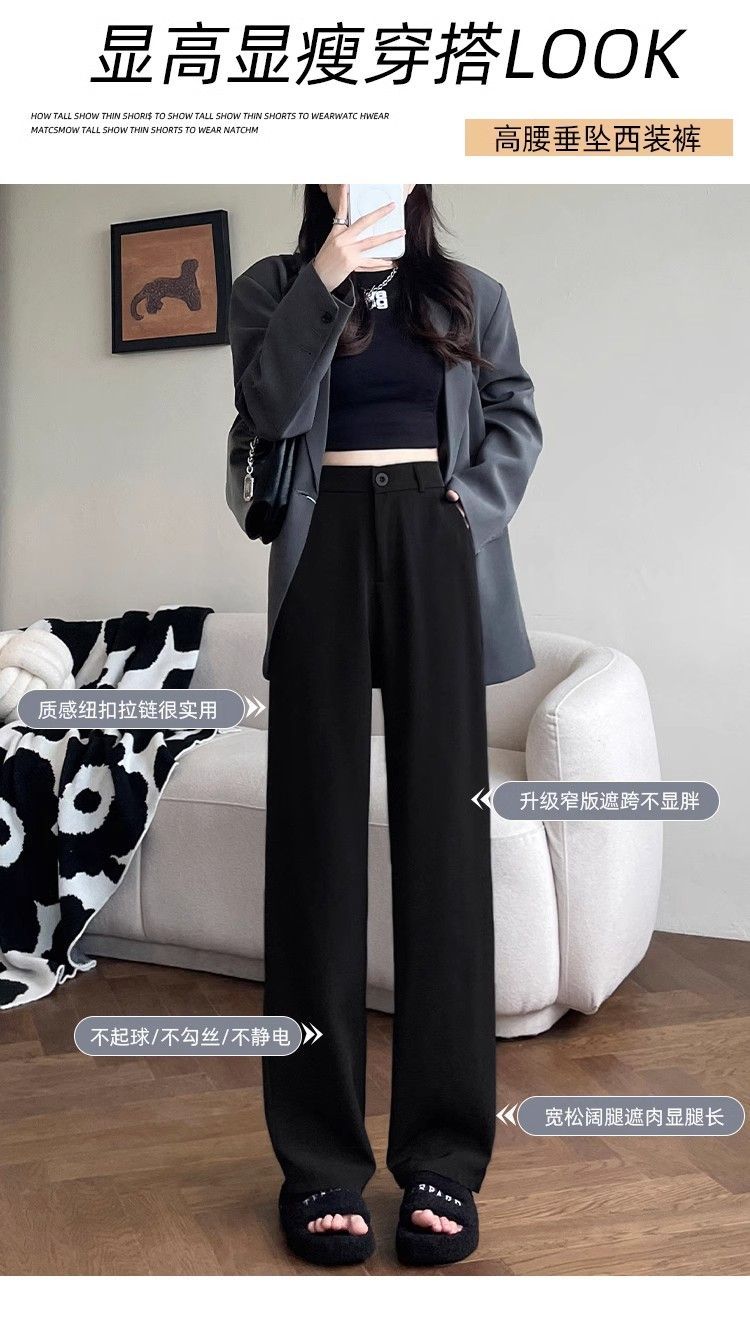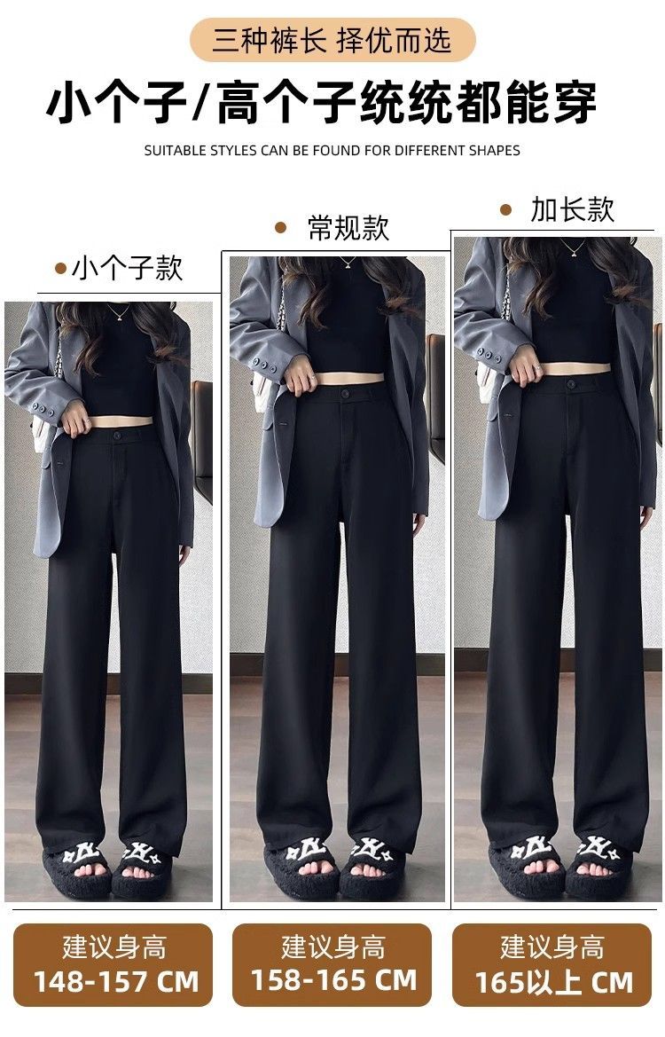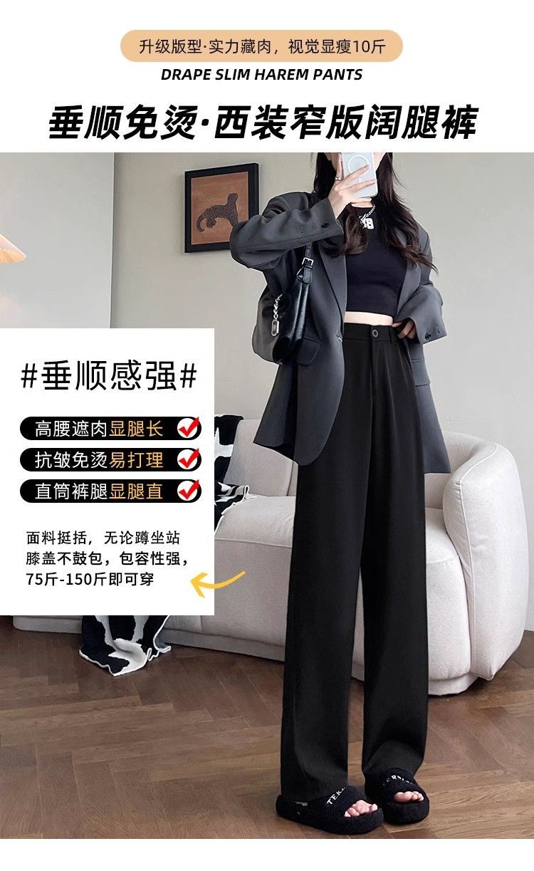 窄版阔腿裤女春夏款垂感2025新款黑色小个子直筒西装休闲裤子