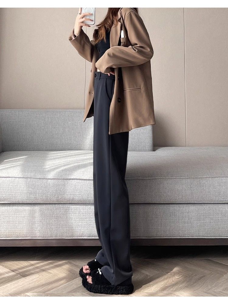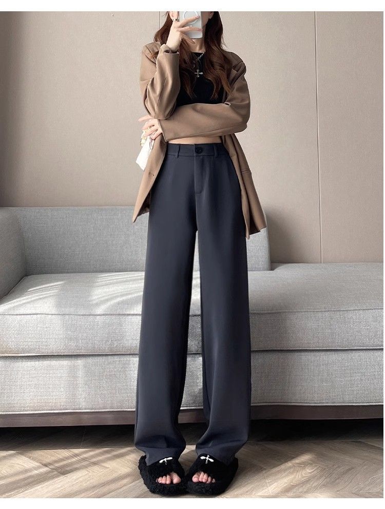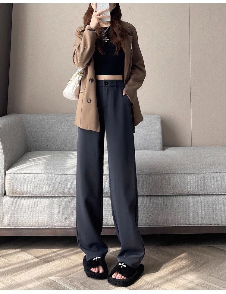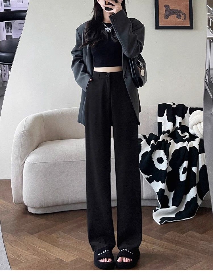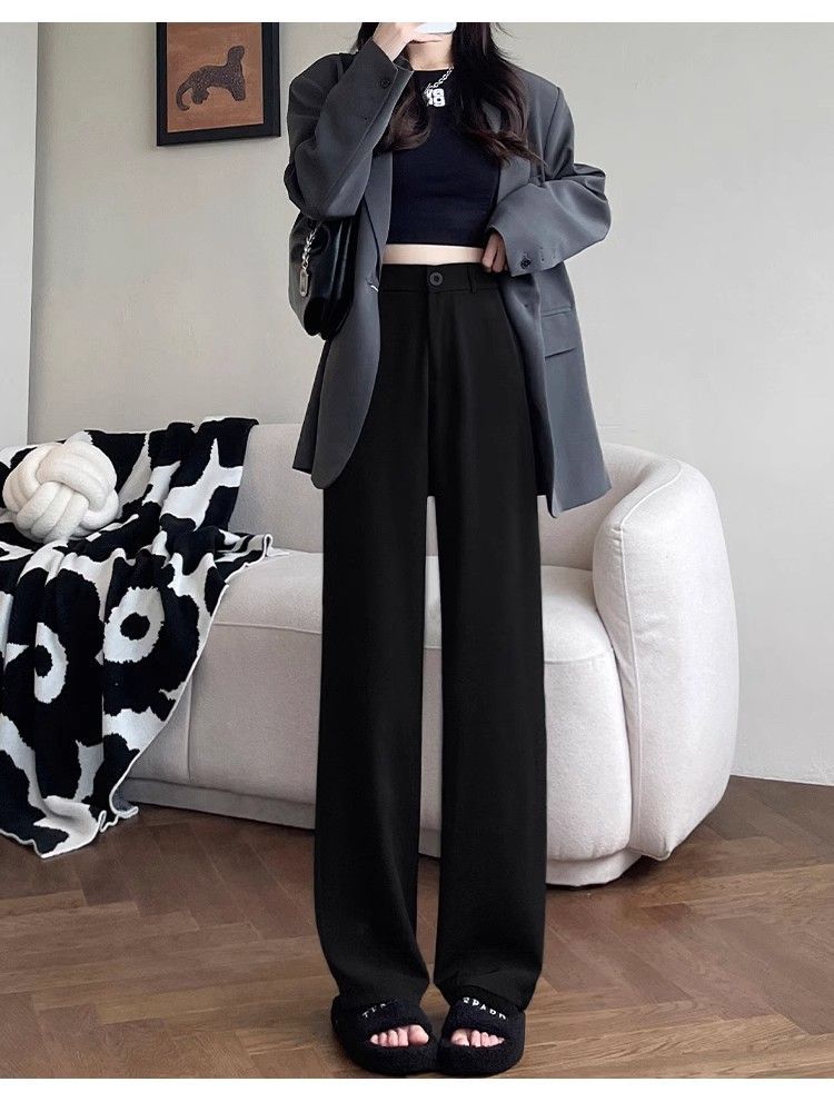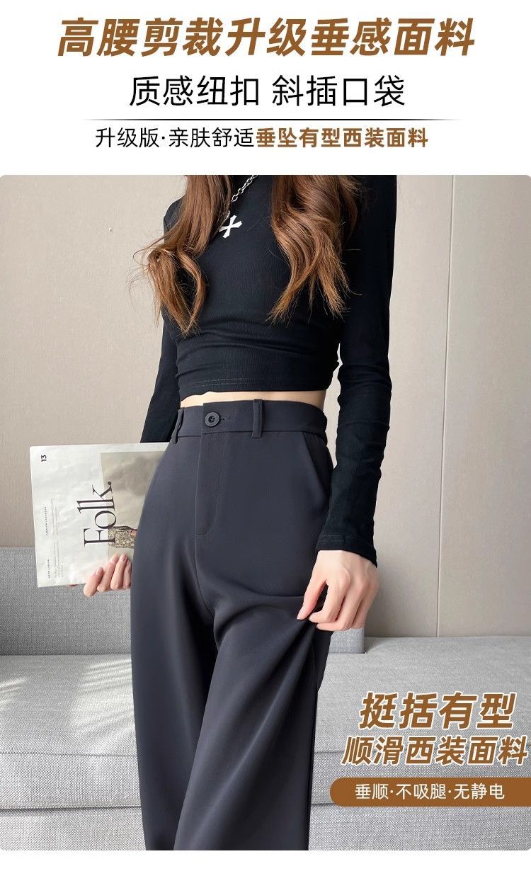 窄版阔腿裤女春夏款垂感2025新款黑色小个子直筒西装休闲裤子