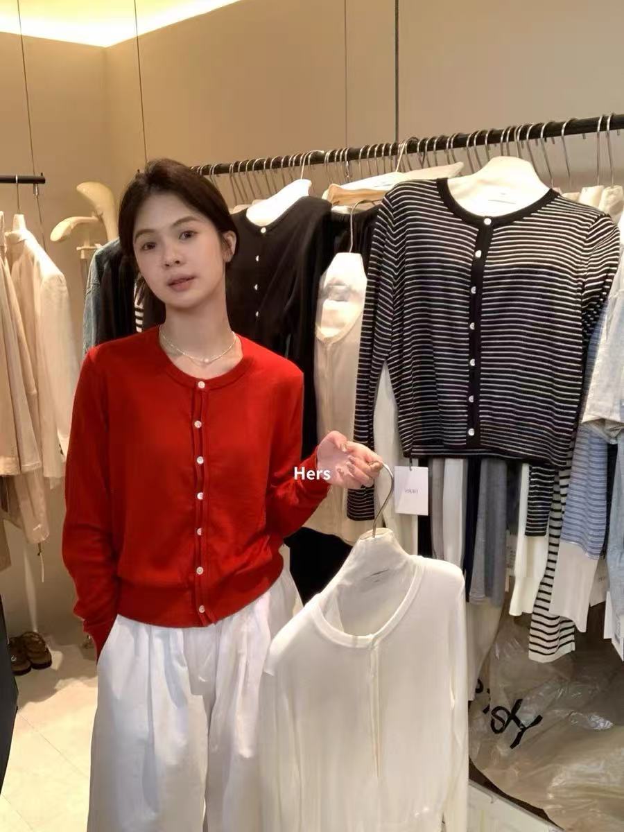 简约日常百搭圆领针织开衫女新款2025年早秋高级感休闲上衣
